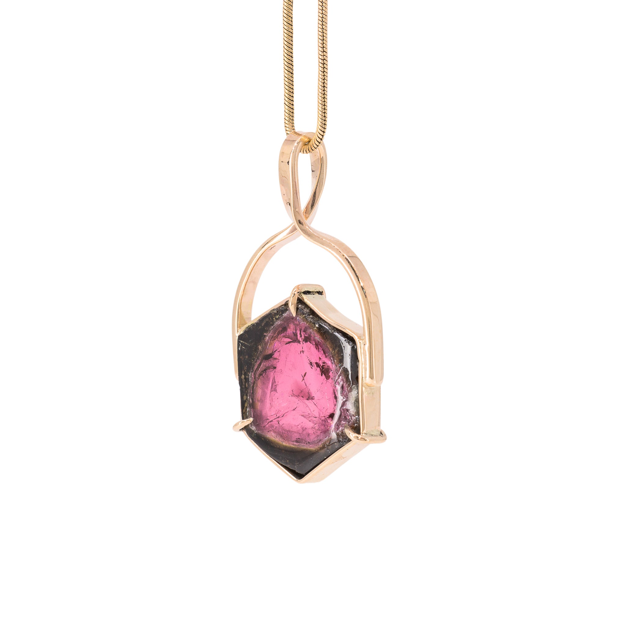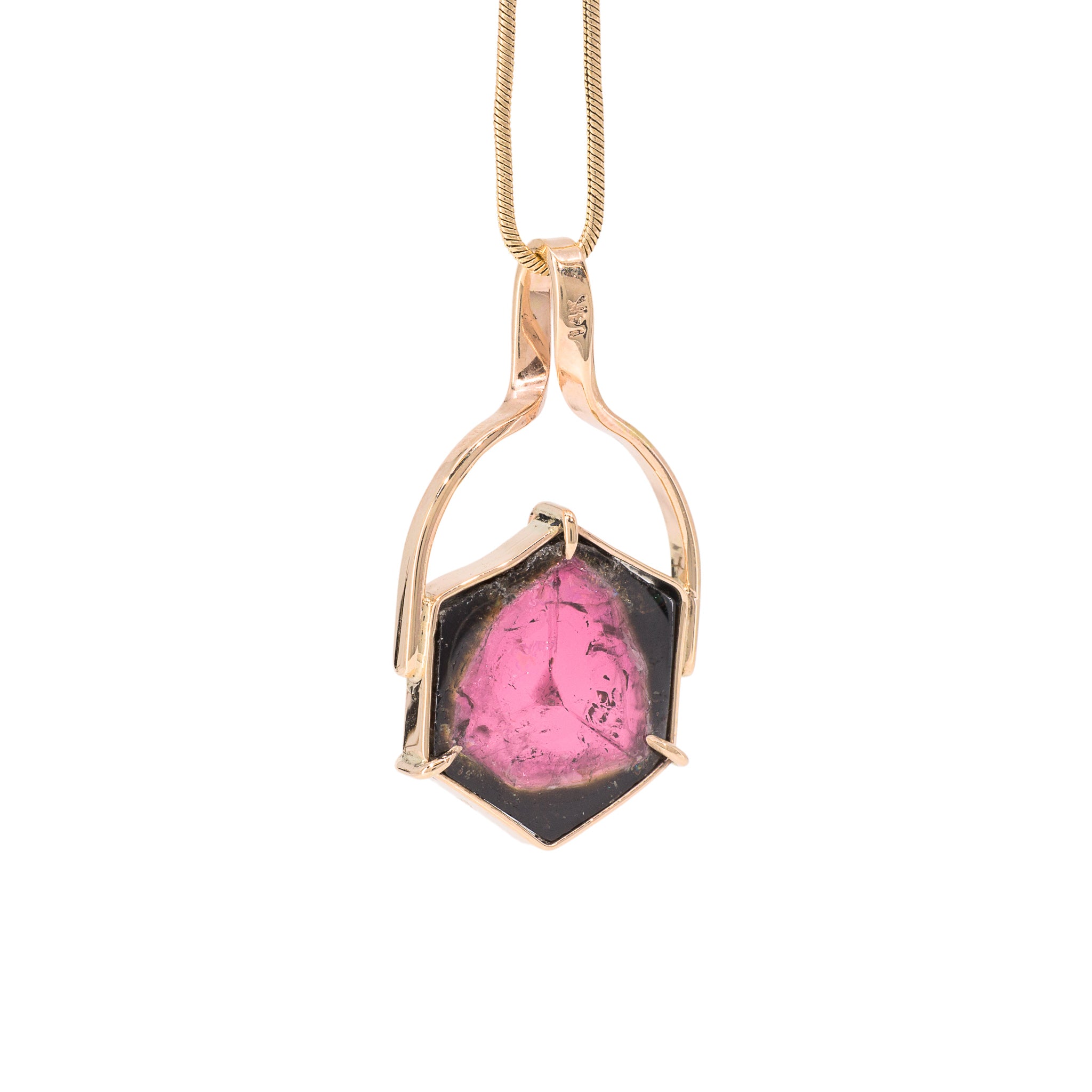 This handcrafted 14k gold pendant features a rare 24.79 carat Amethyst Trapiche slice, celebrated for its striking six-rayed star pattern and natural geometric beauty. Trapiche Amethyst is known for deep spiritual clarity, enhanced intuition, and emotional centering which makes this pendant a powerful statement piece for both style and metaphysical connection. The open gold framework highlights the stone’s natural symmetry and allows light to illuminate the inner star, bringing forward its vivid violet hues. This piece is ideal for collectors who appreciate uncommon formations and high vibration gemstones that support meditation, balance, and inner wisdom.