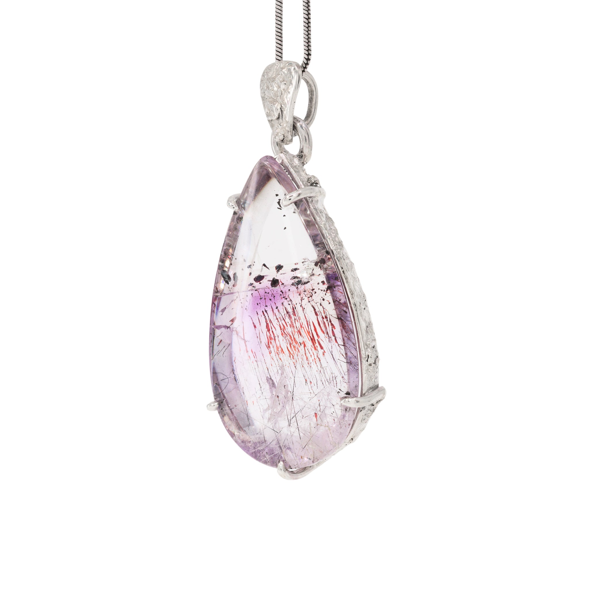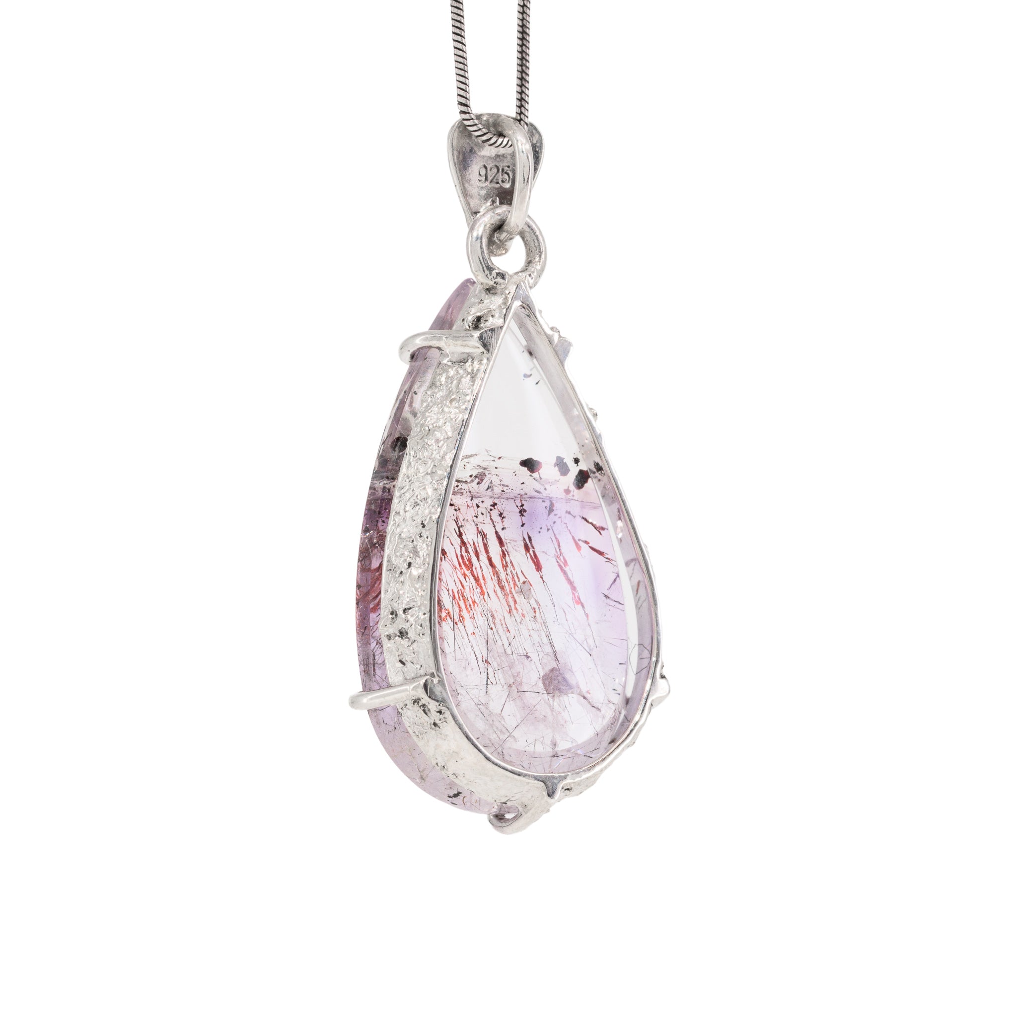 This vibrant amethyst crystal has been faceted into a charming little gemstone with great color and internal brilliance. The ring itself features a simple but ruggedly beautiful textured band with an open back setting to allow light to shine through the stone.