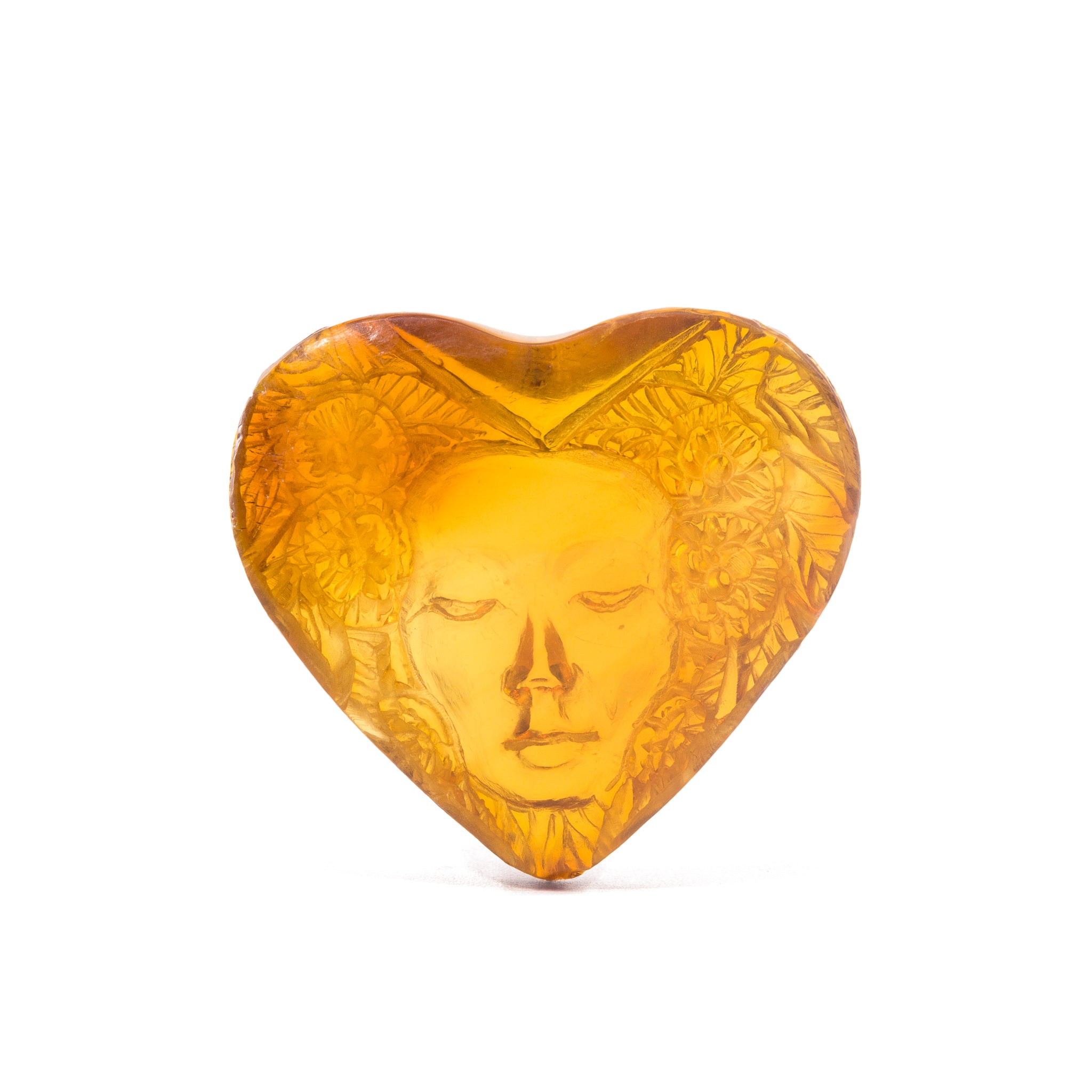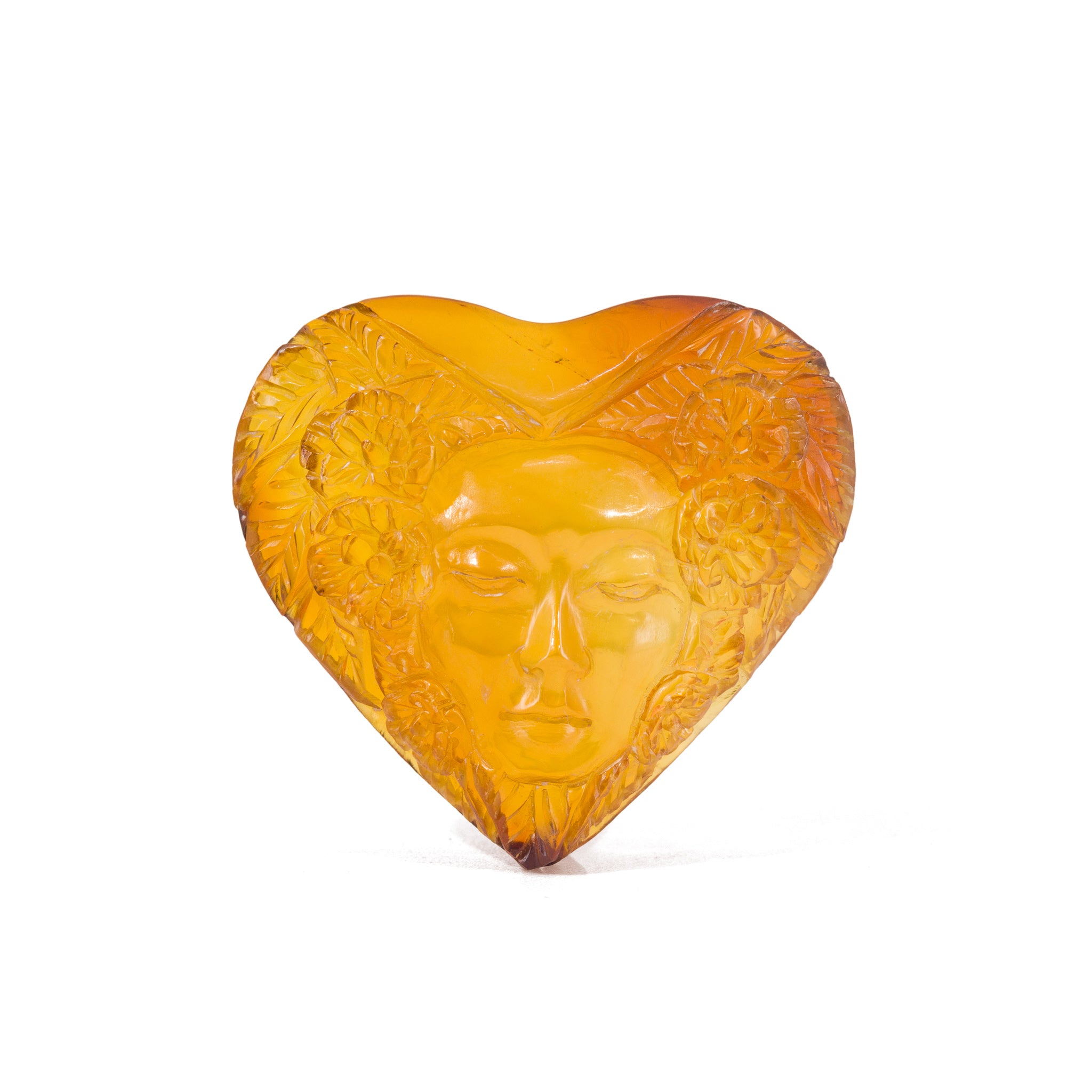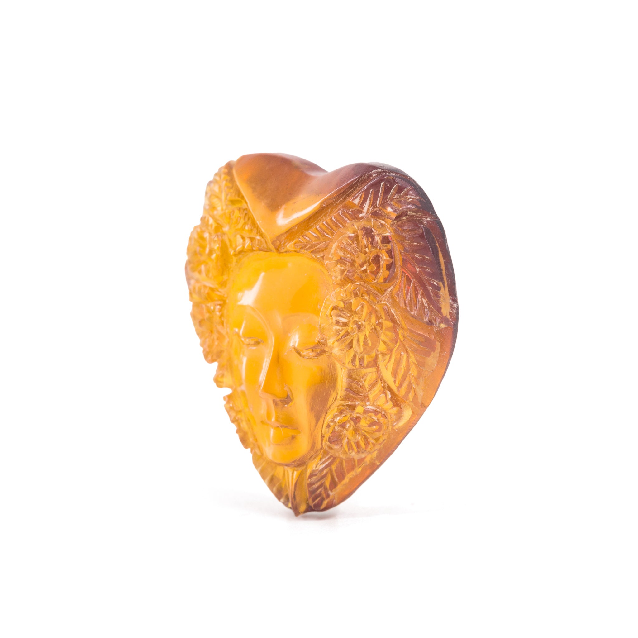 Amber Face in Floral Heart 22.18 Carat Natural Gemstone Carving