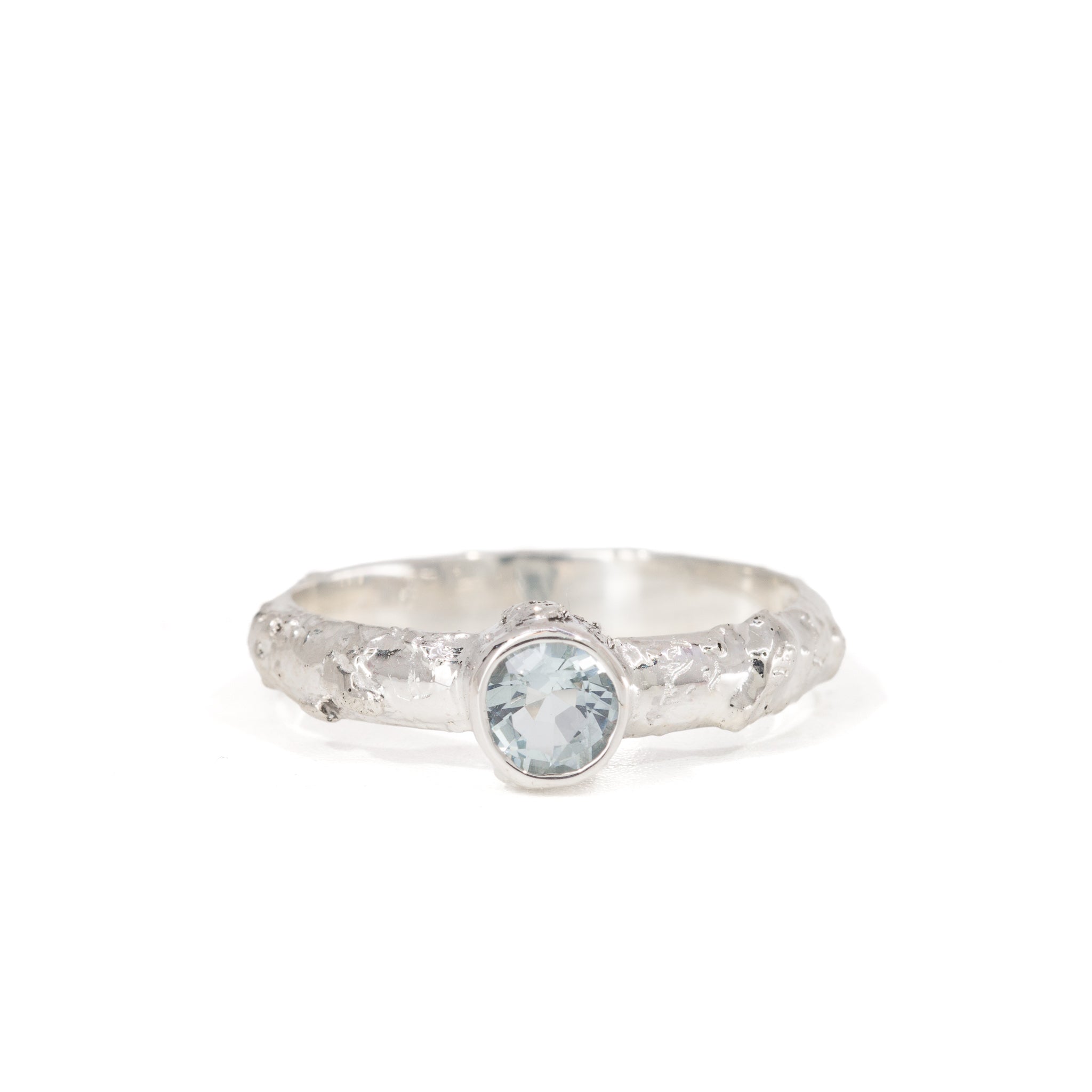 Aquamarine 0.38 Carat Sterling Silver Handcrafted Gemstone Stacker Ring