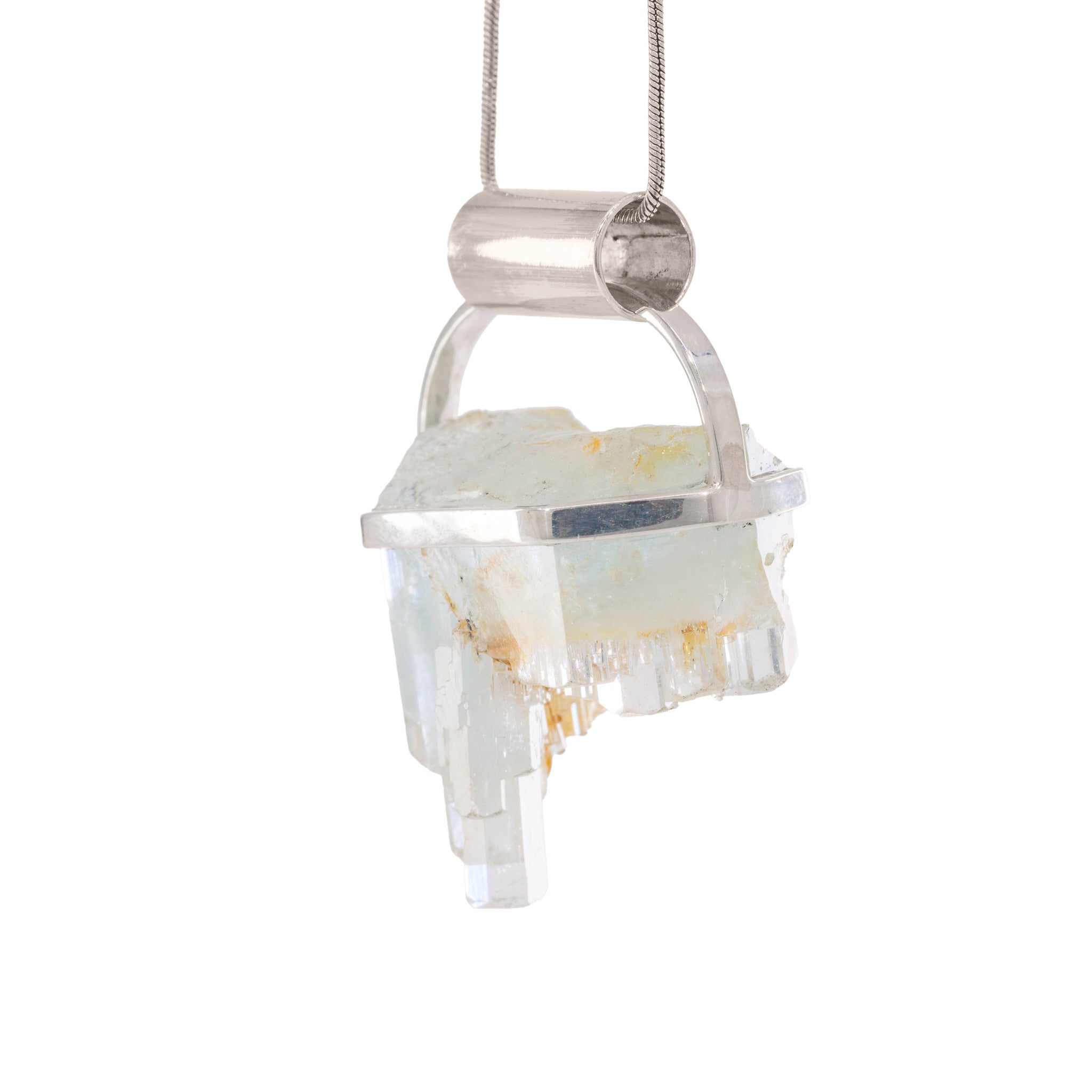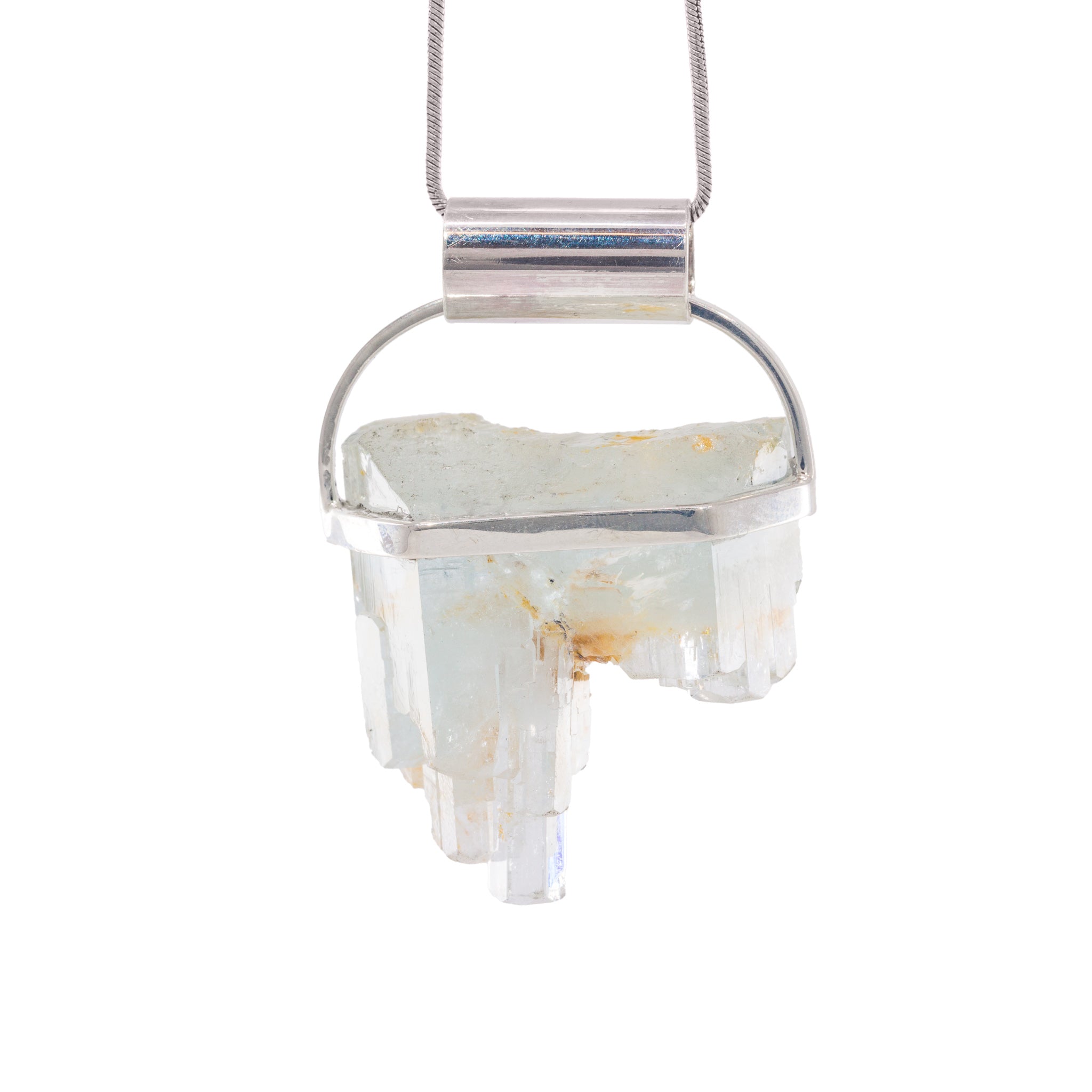 Aquamarine 72.17 Carat Sterling Silver Handcrafted Natural Crystal Pendant