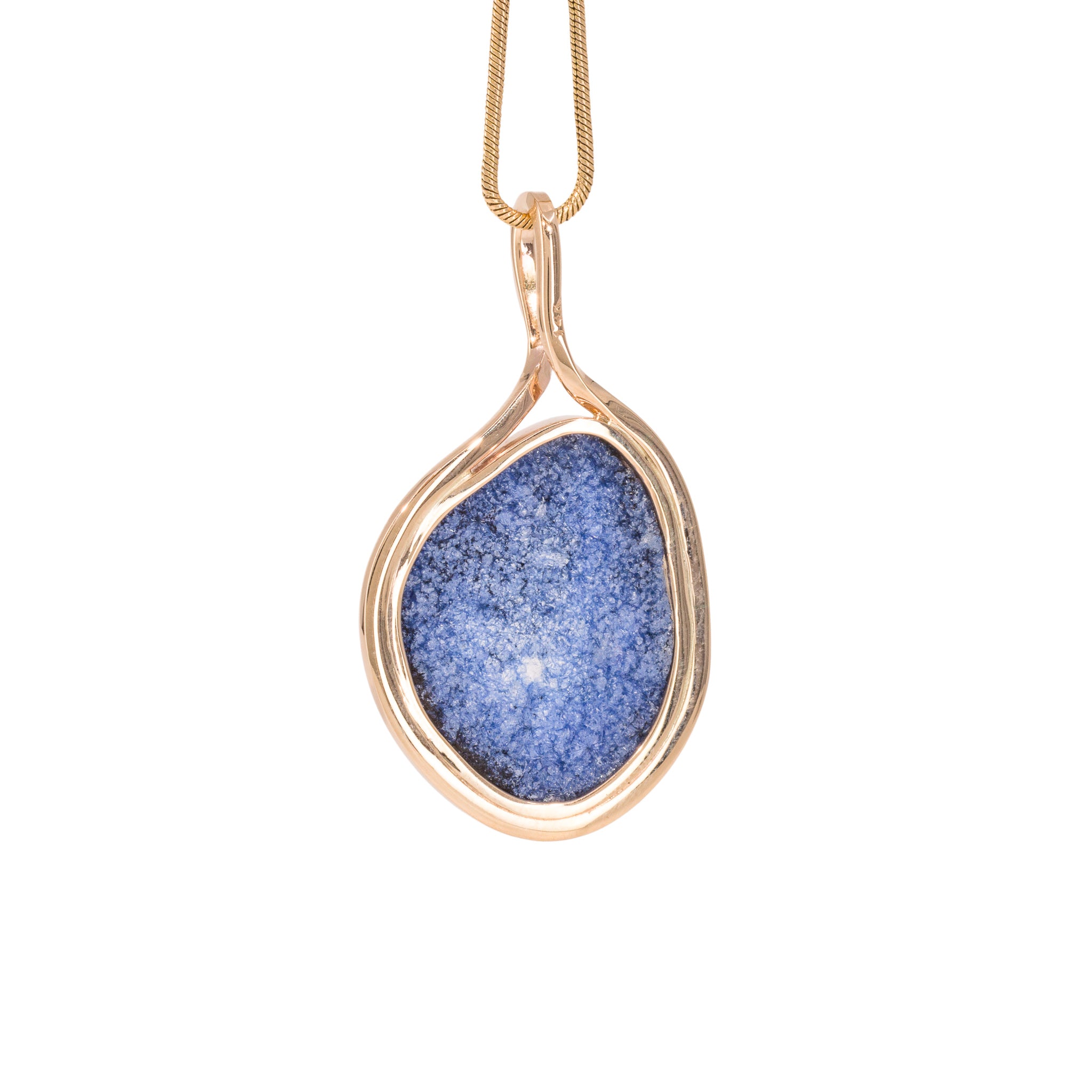 Dumortierite in Quartz 30.86 Carat 14k Handcrafted Gem Cabochon Pendant
