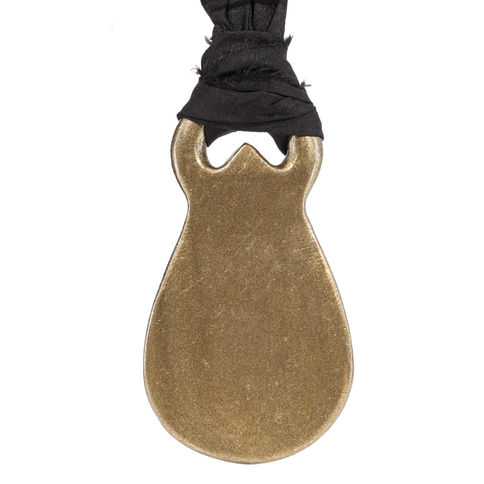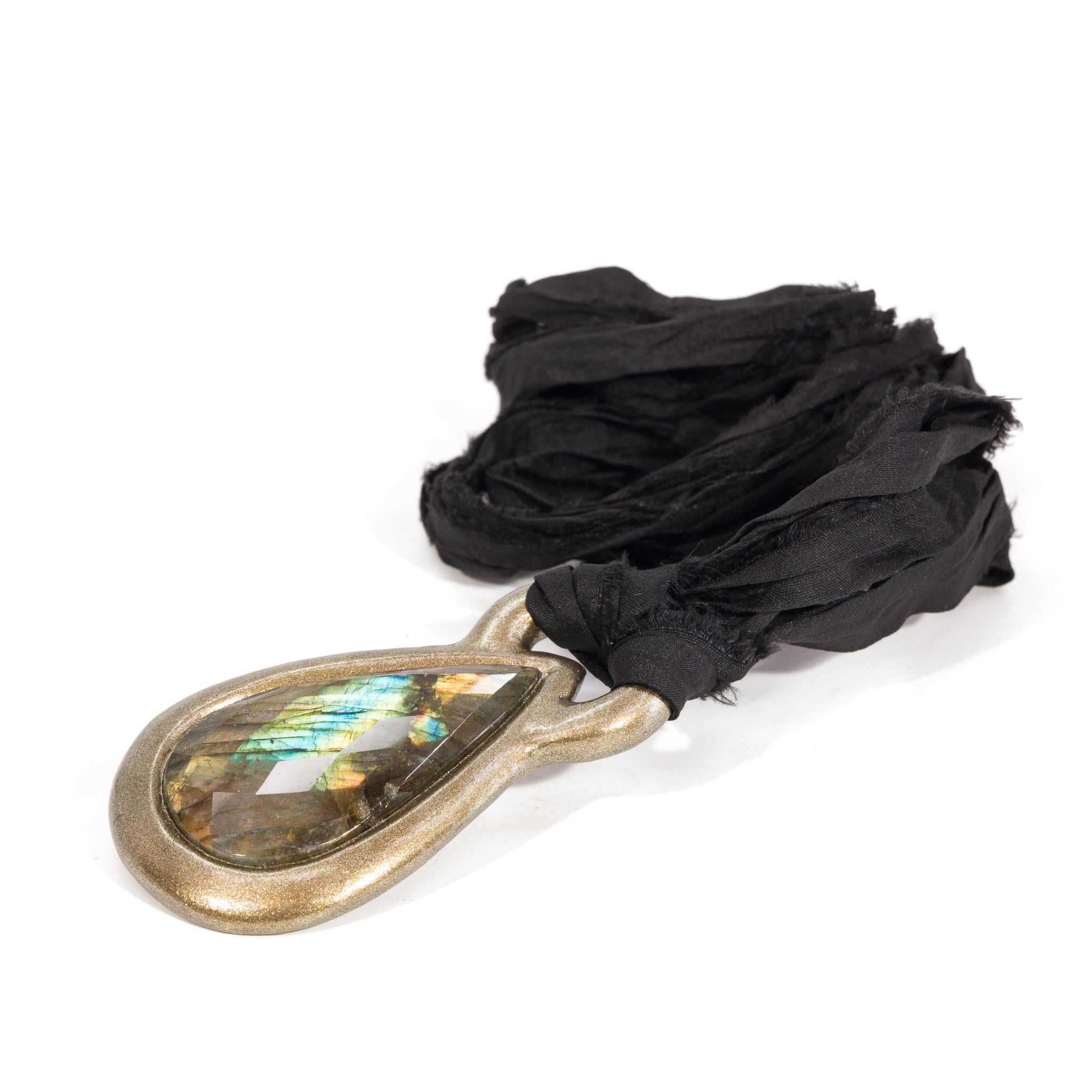 Talisman is strung on an adjustable ~42" strand of upcycled black silk.