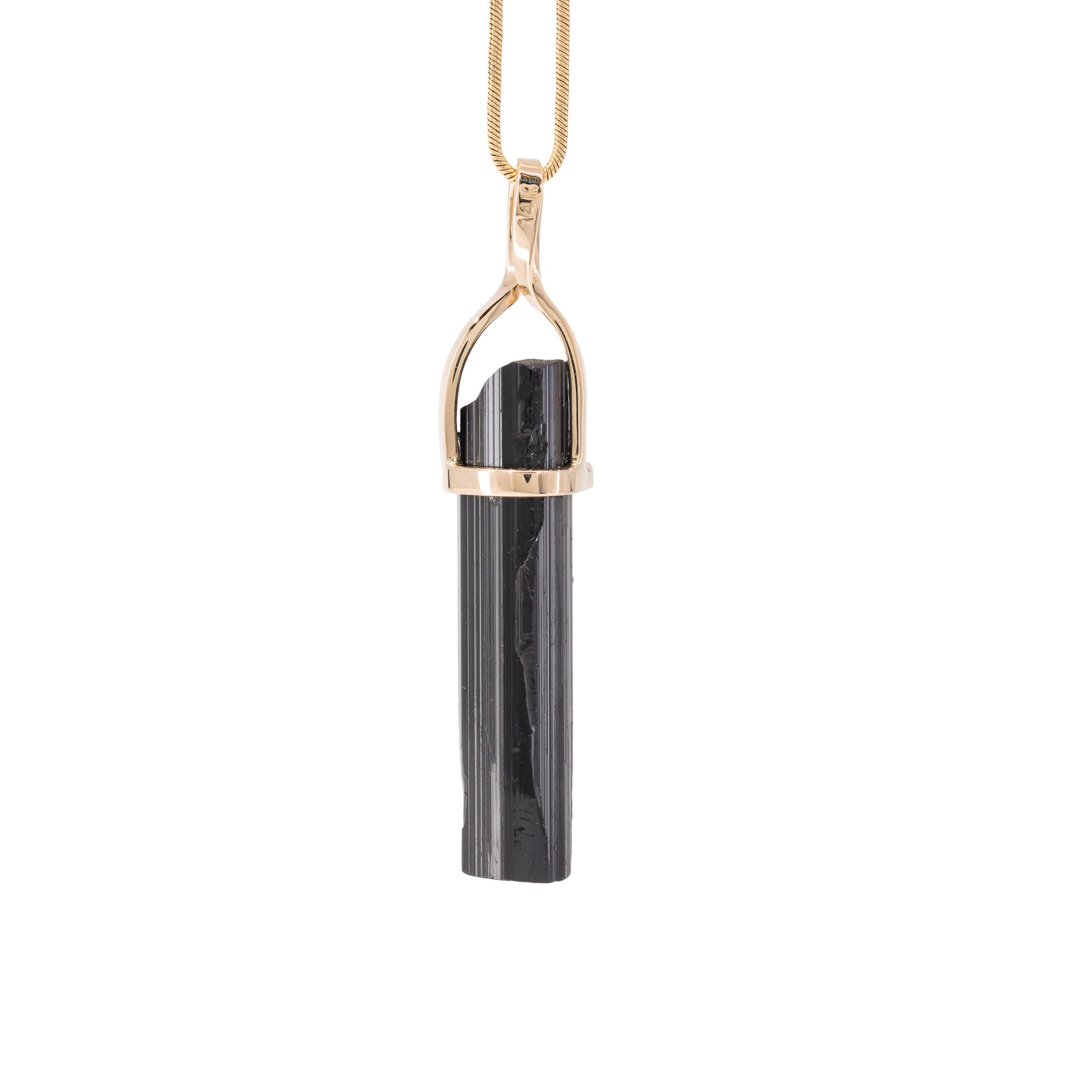 Black Tourmaline Pendant | 26.41 Carat Natural Crystal in Handcrafted 14k Gold