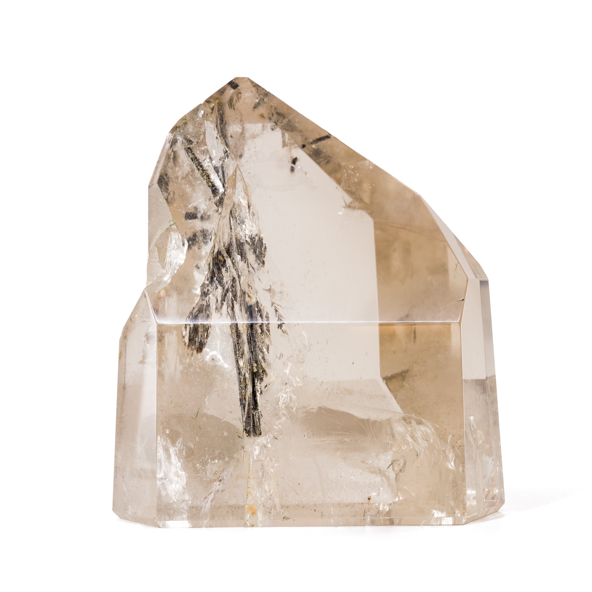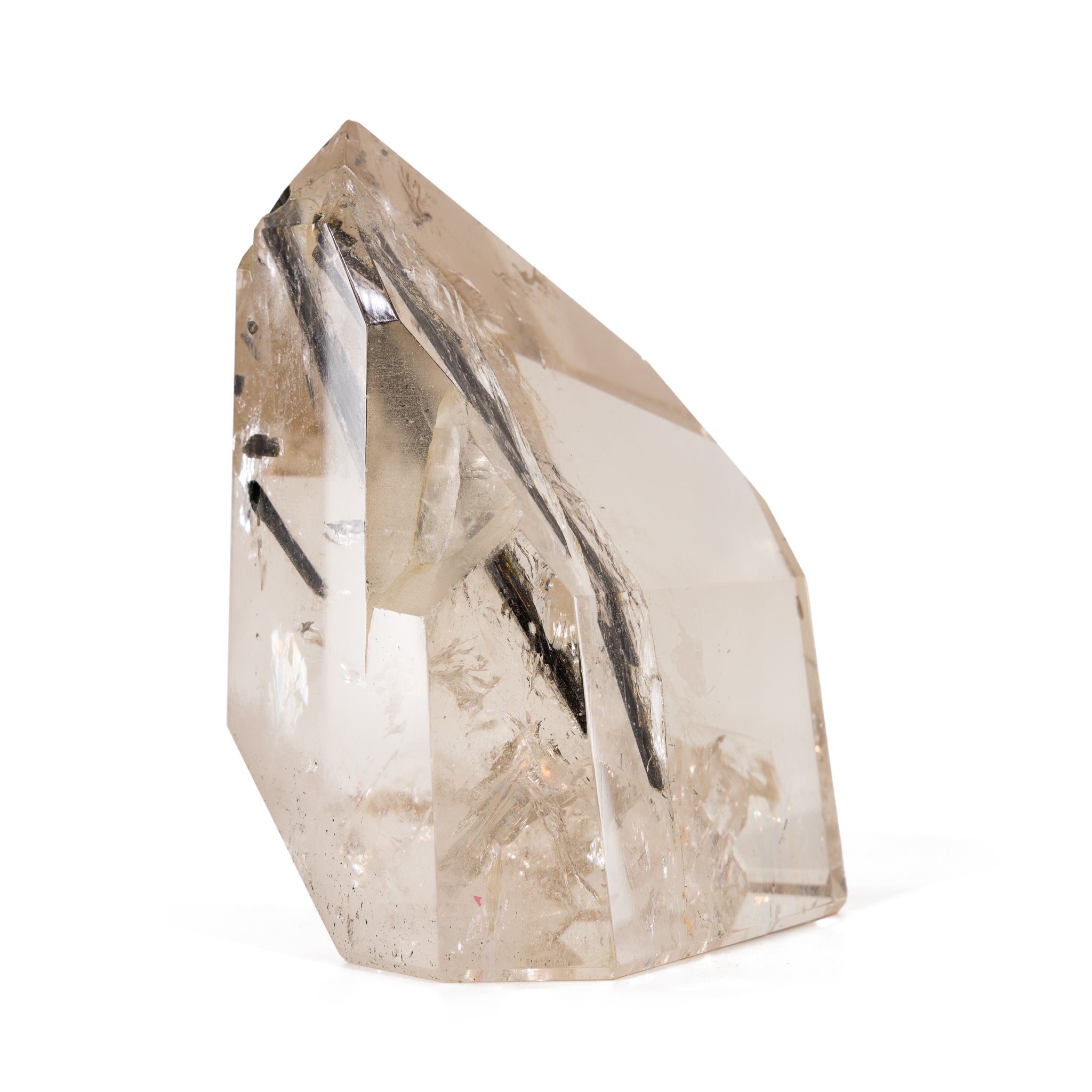 Black Tourmaline in Quartz 5.5 Inch 2.2lb Partial Polished Crystal - Brazil