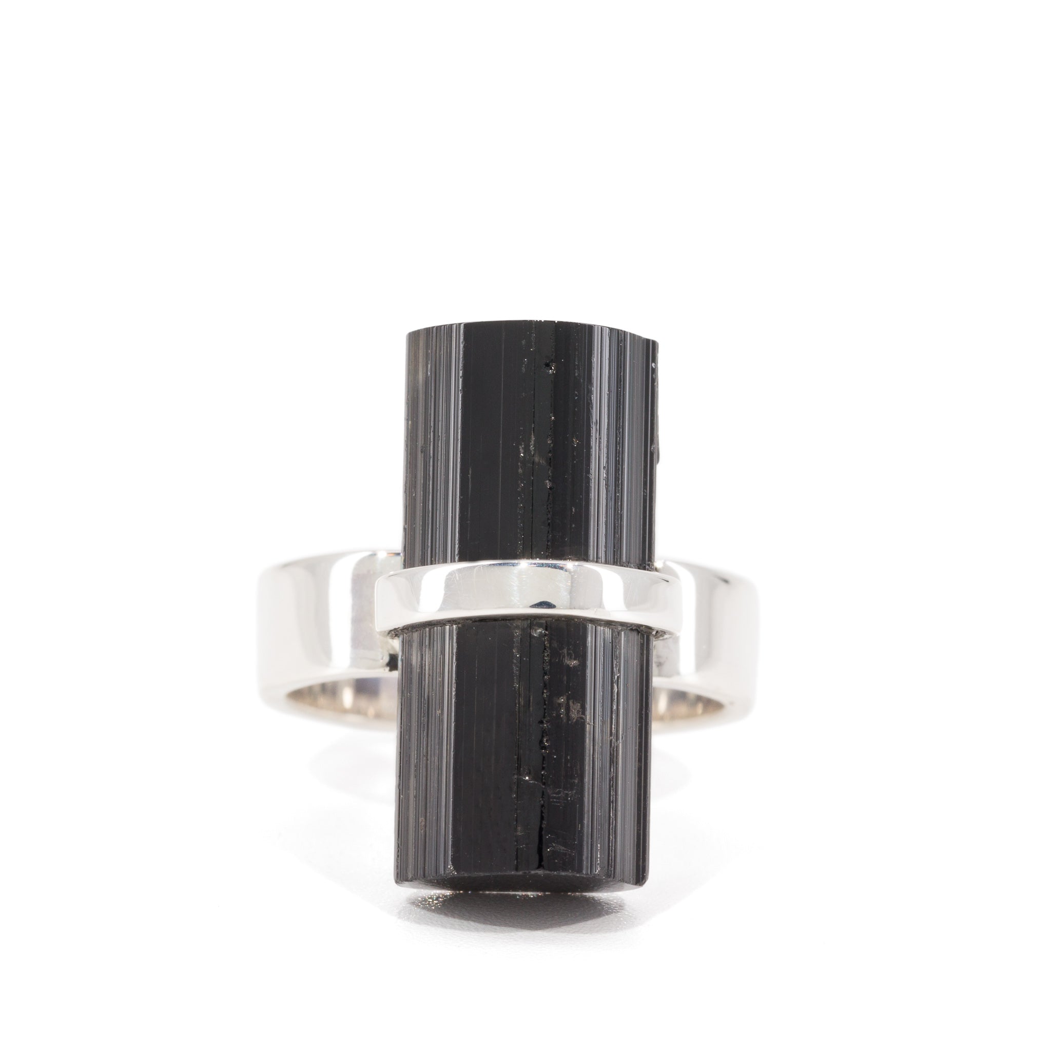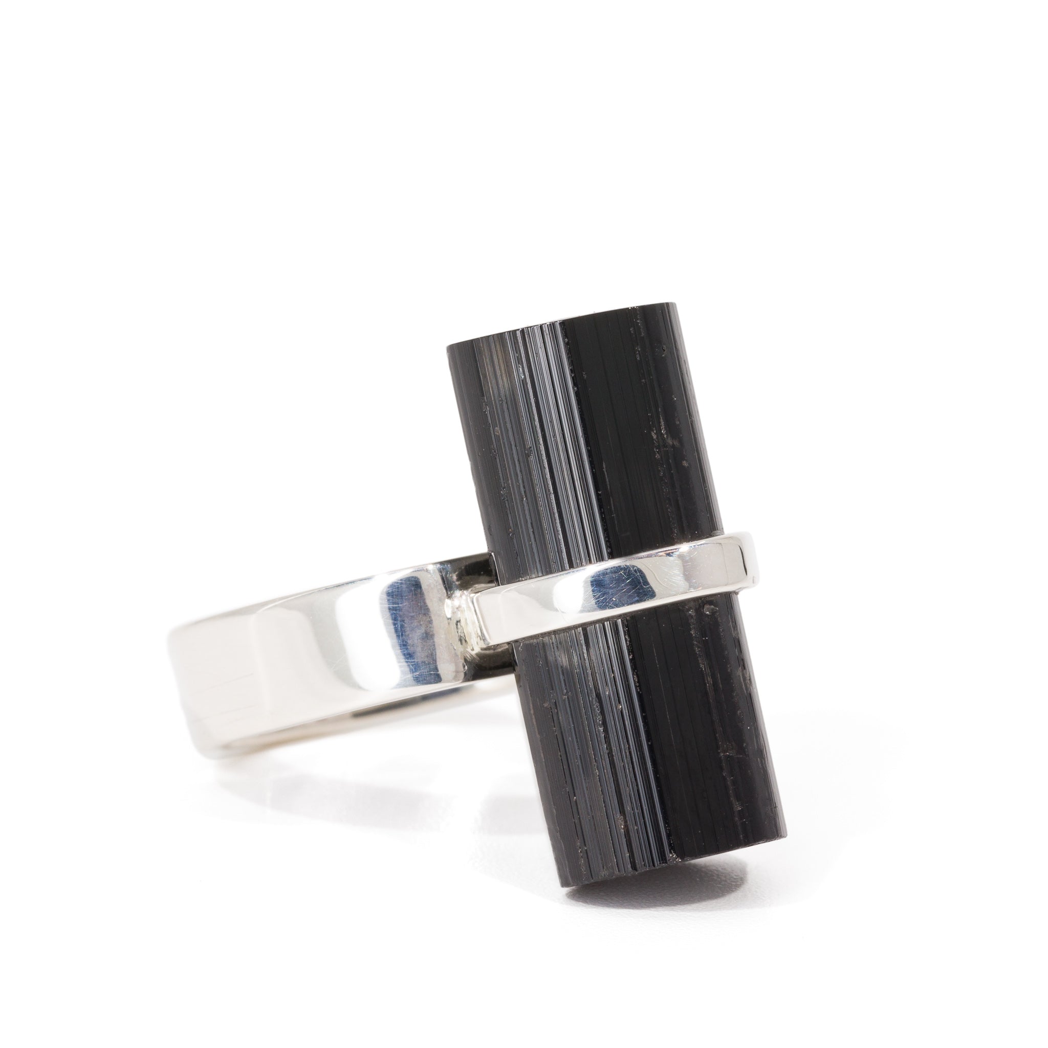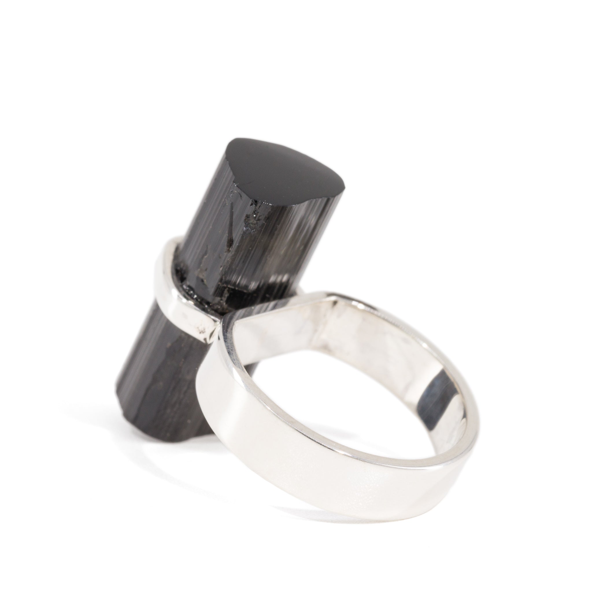 Black Tourmaline 20.93 Carat Sterling Silver Handcrafted Natural Crystal Ring