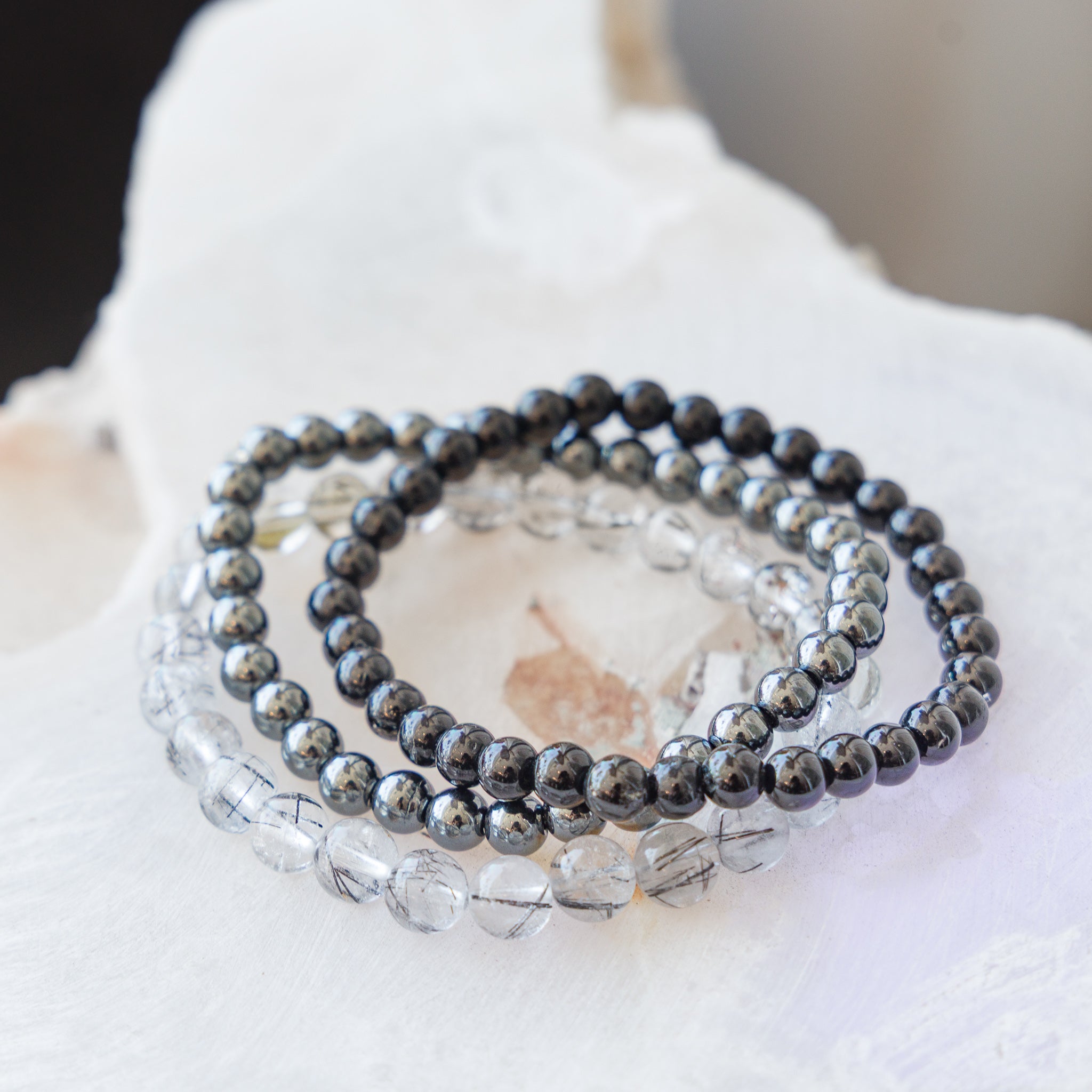 Hematite 6mm Beaded Bracelet
