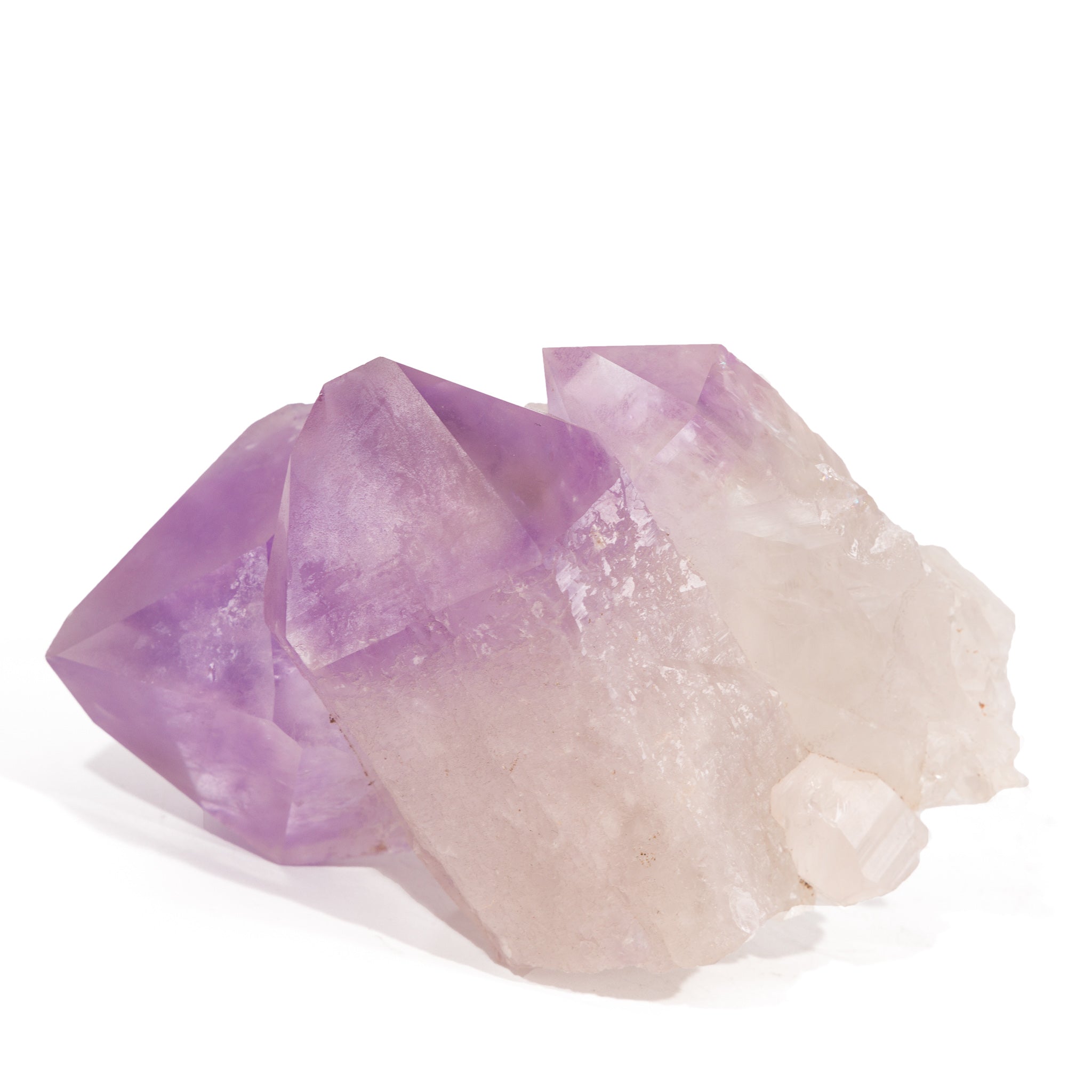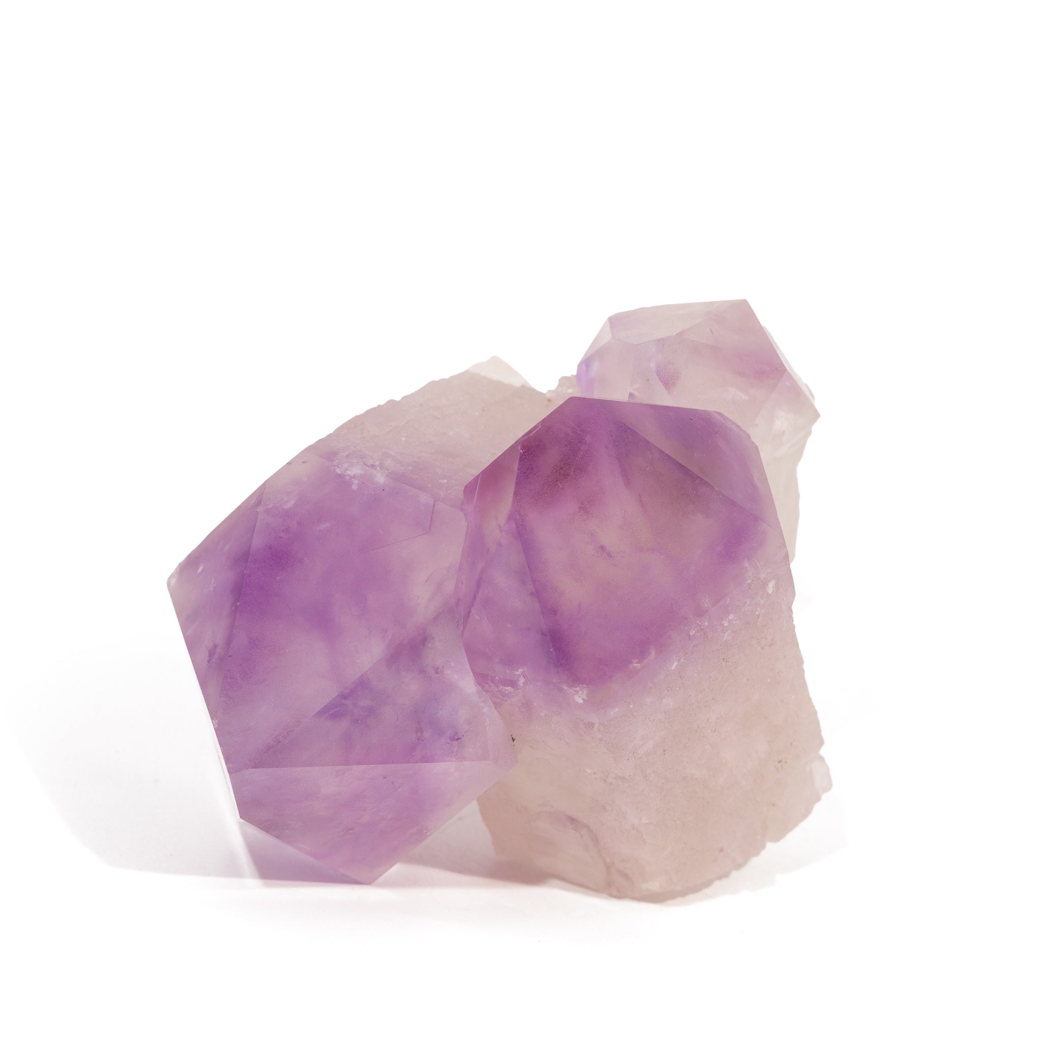 This trio of crystals has a lovely soft violet purple color with a frozen, domino-like stacked formation making it a beautiful piece from every angle! A great example of a sought after amethyst variety!