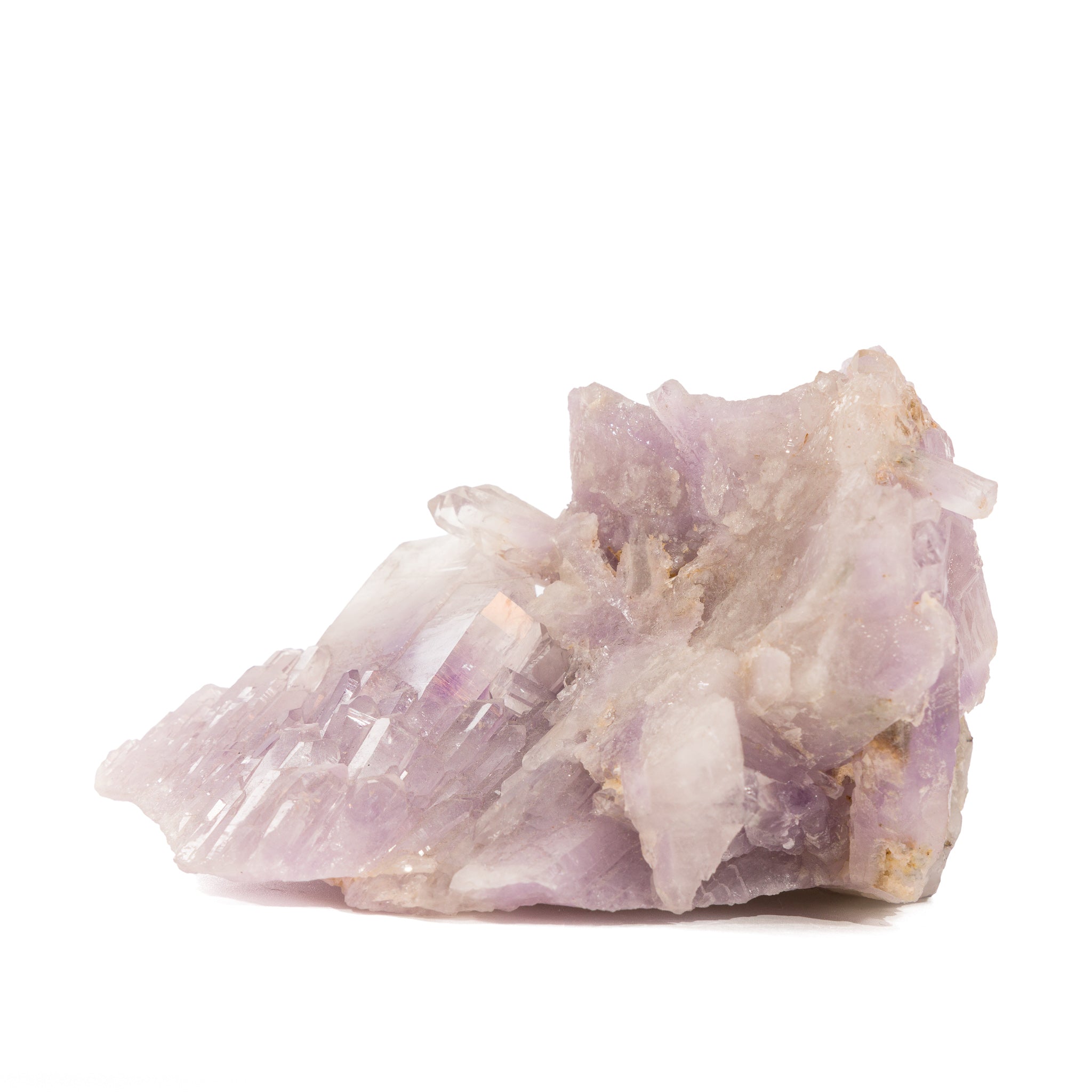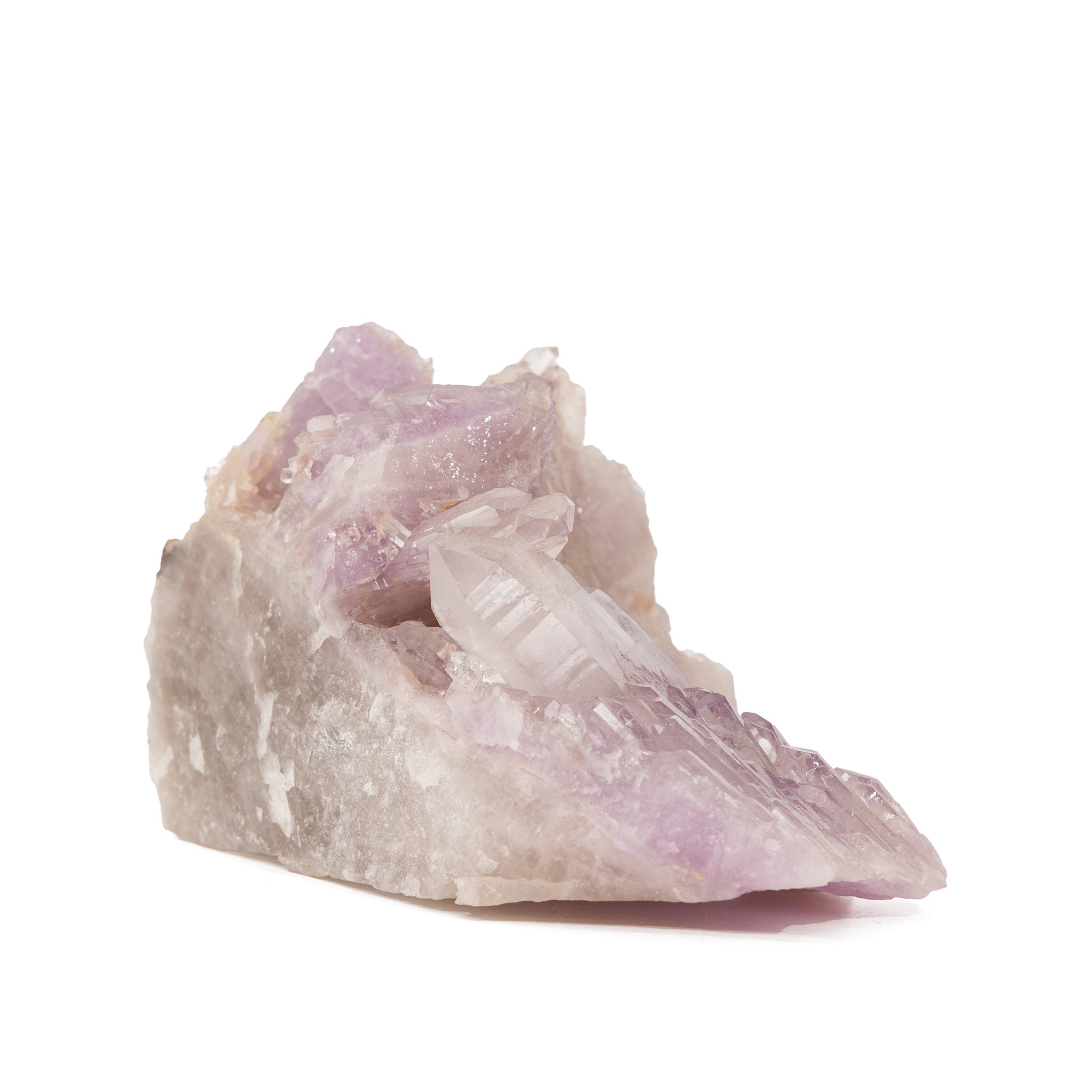 This Cathedral Amethyst crystal (5.9 inches wide, 1.02 kg) features a striking formation with layered growth patterns that resemble the spires of a cathedral. Its light lavender hue and intricate structure highlight the beauty of Brazilian Amethyst, making it a collectible piece for display, meditation, or energy work.
