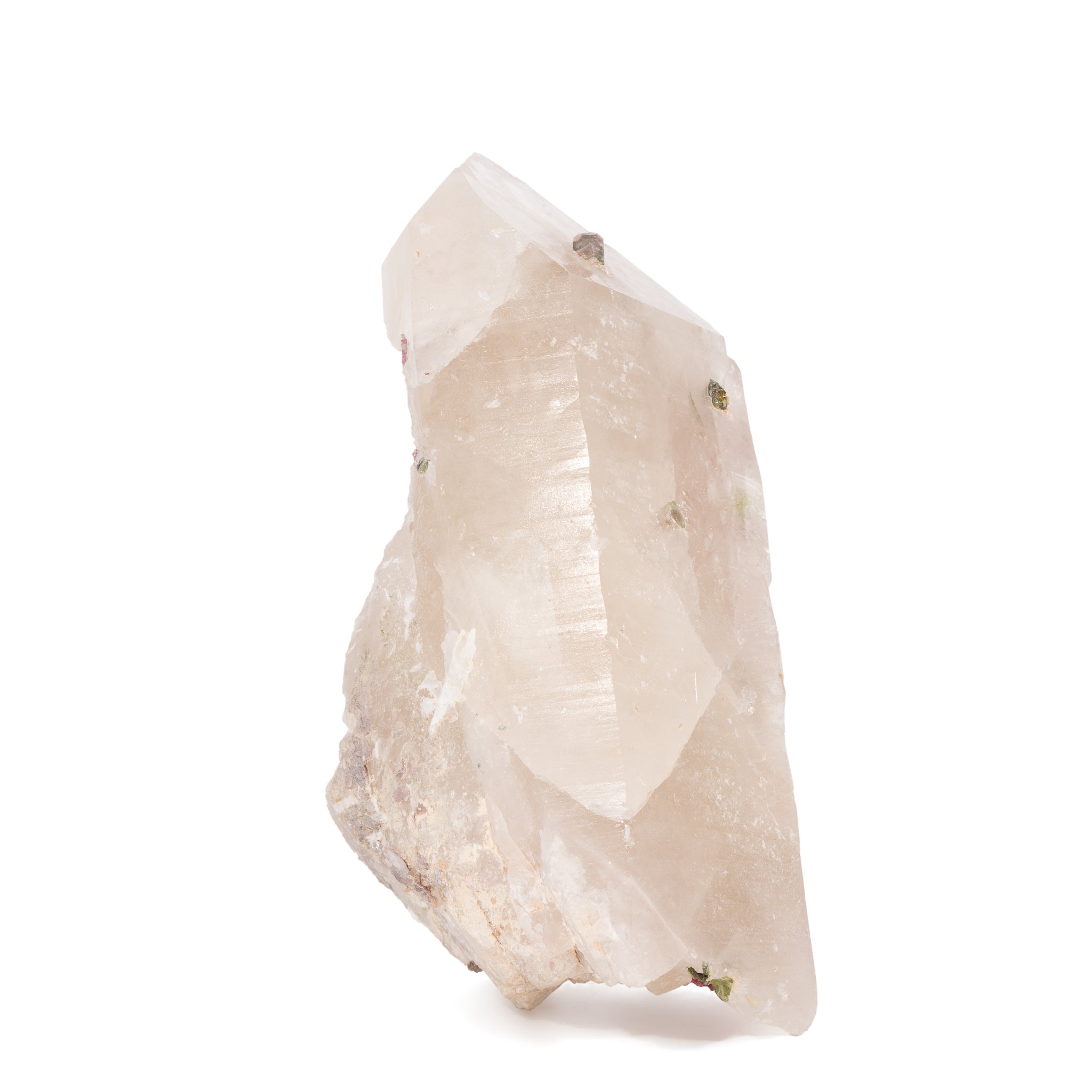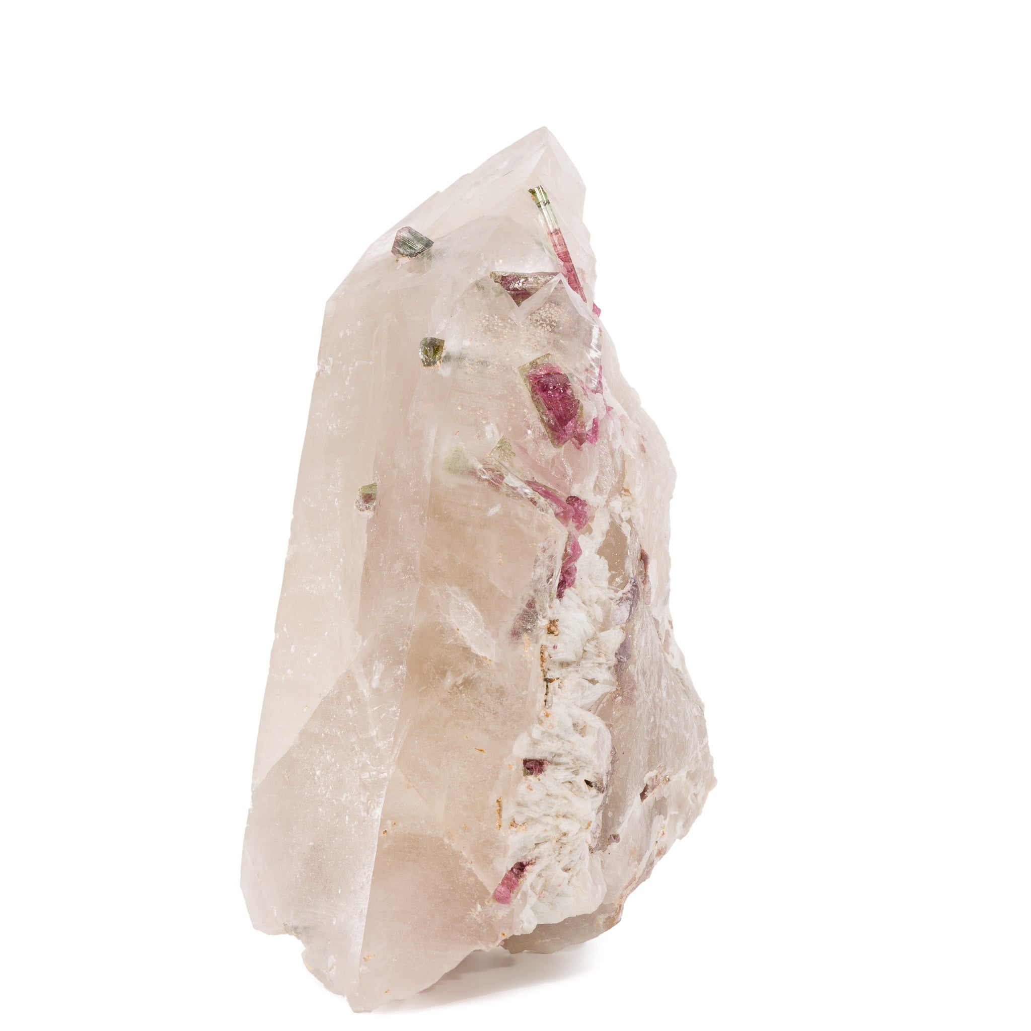 This single large quartz point features exceptionally gemmy watermelon tourmaline inclusions running through it, and a gorgeous overall luster to the quartz body. A stunning piece for a collection or the home!