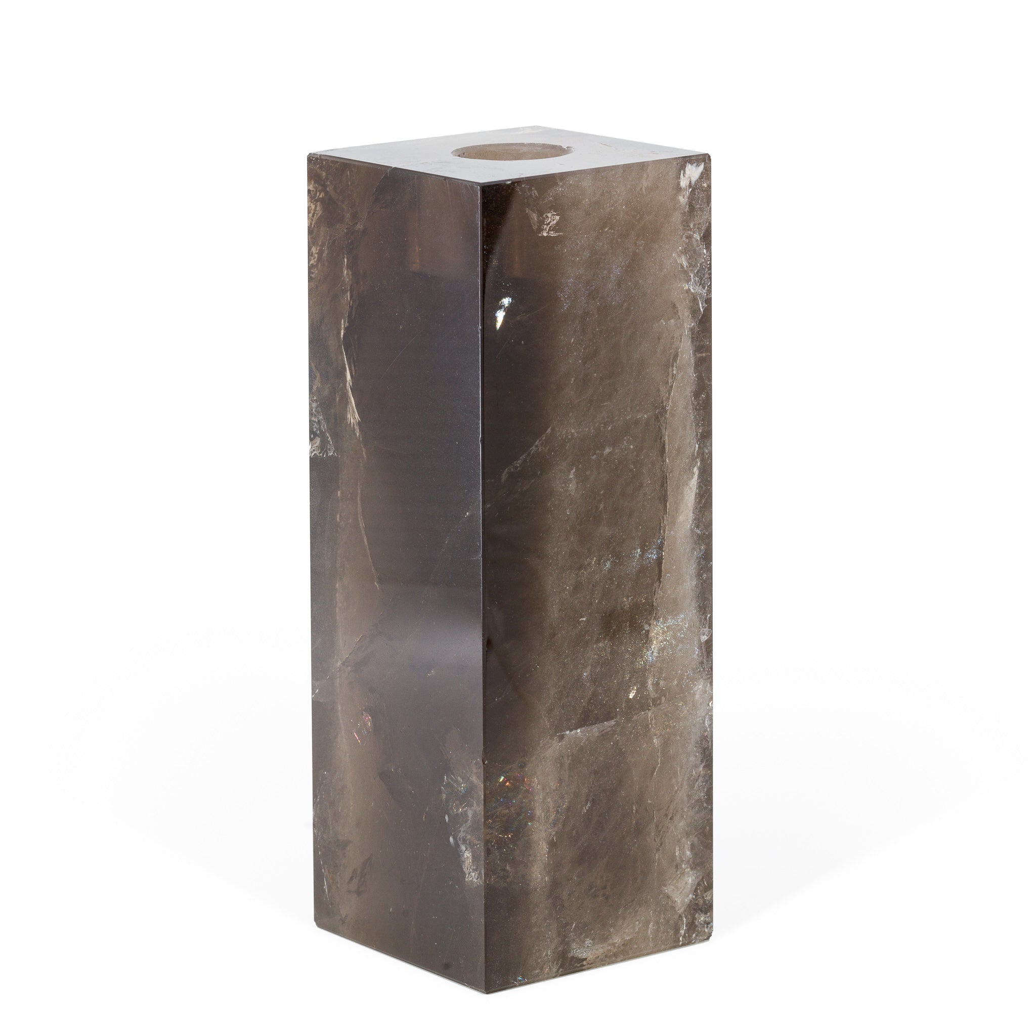 Smoky Quartz 5.5 Inch 2.6lb Carved Crystal Candle Holder - Brazil