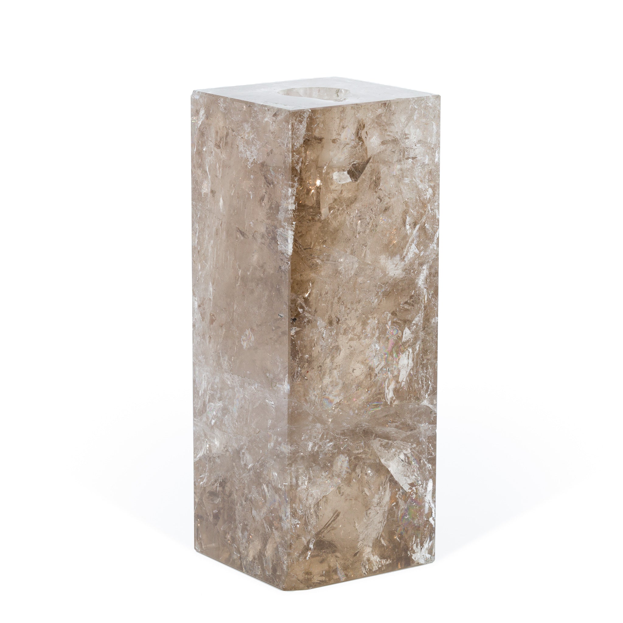 Smoky Quartz 5.5 Inch 2.75lb Carved Crystal Candle Holder - Brazil
