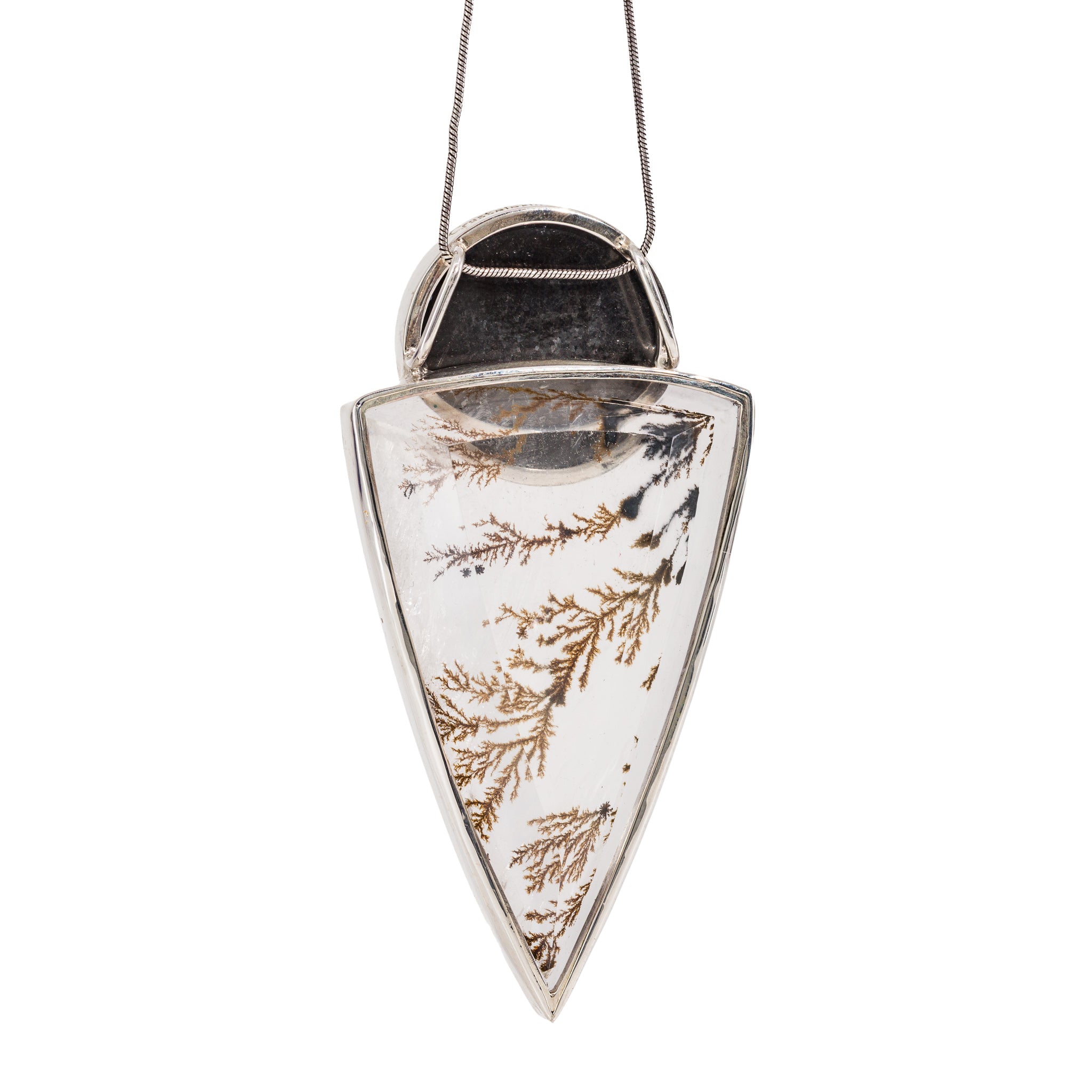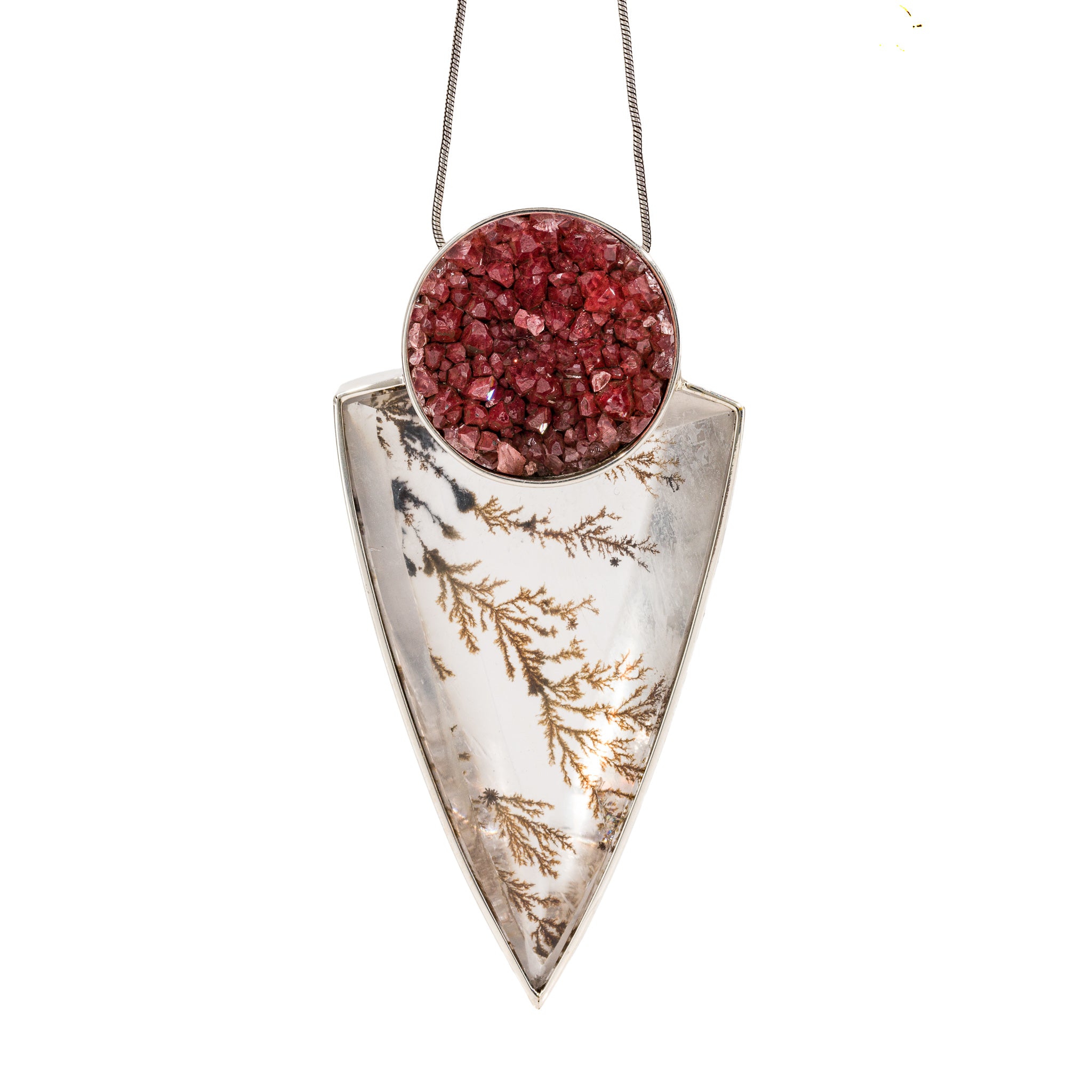 Rhodochrosite & Dendritic Quartz Sterling Silver Handcrafted Pendant