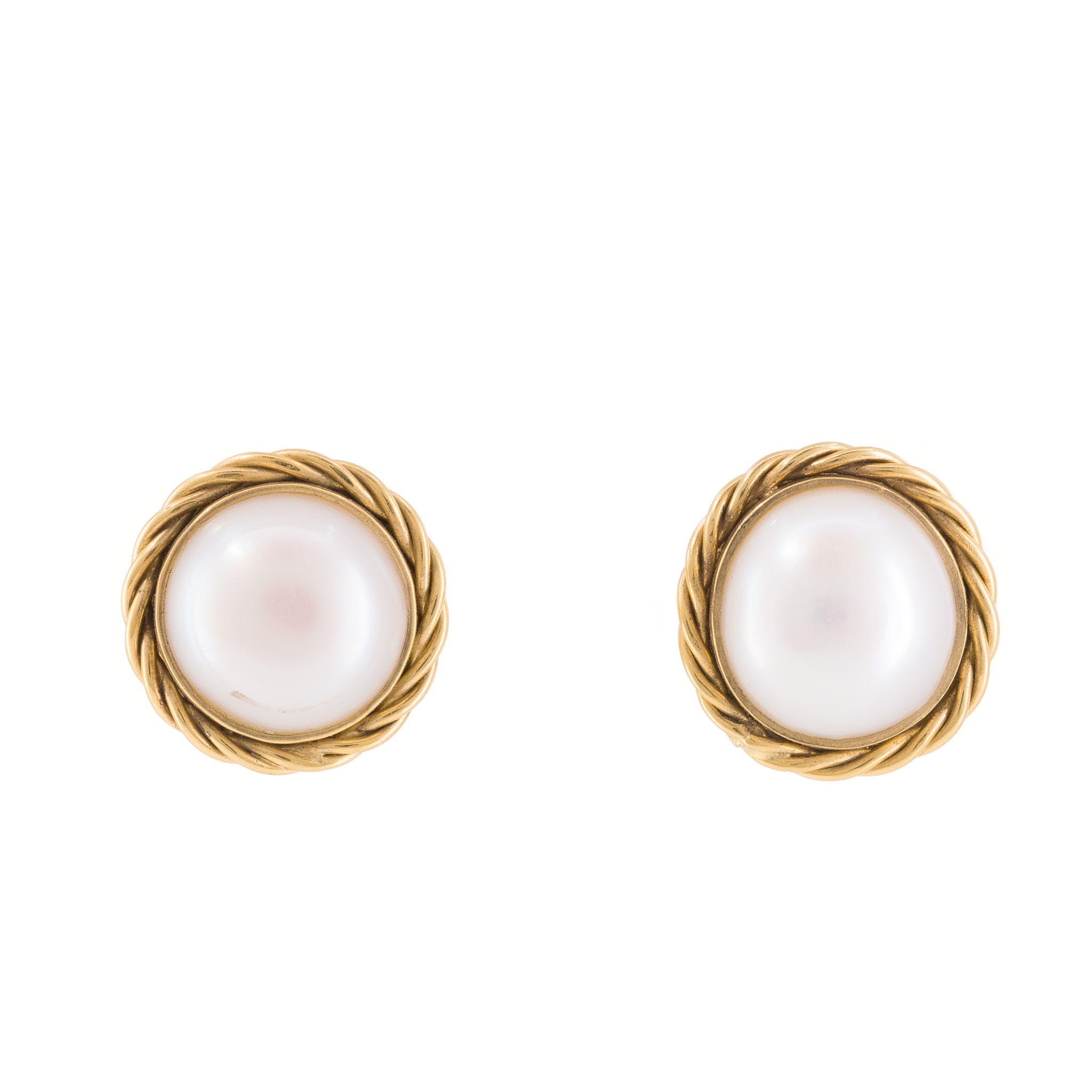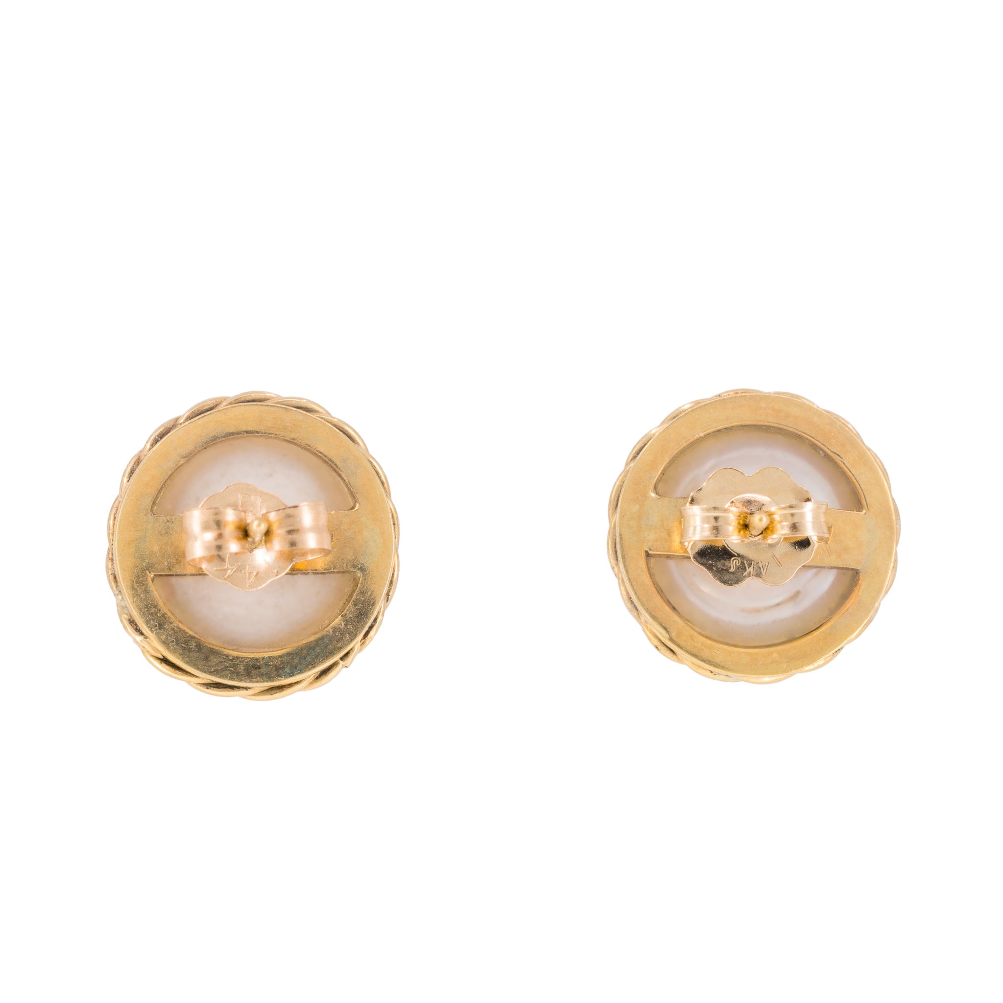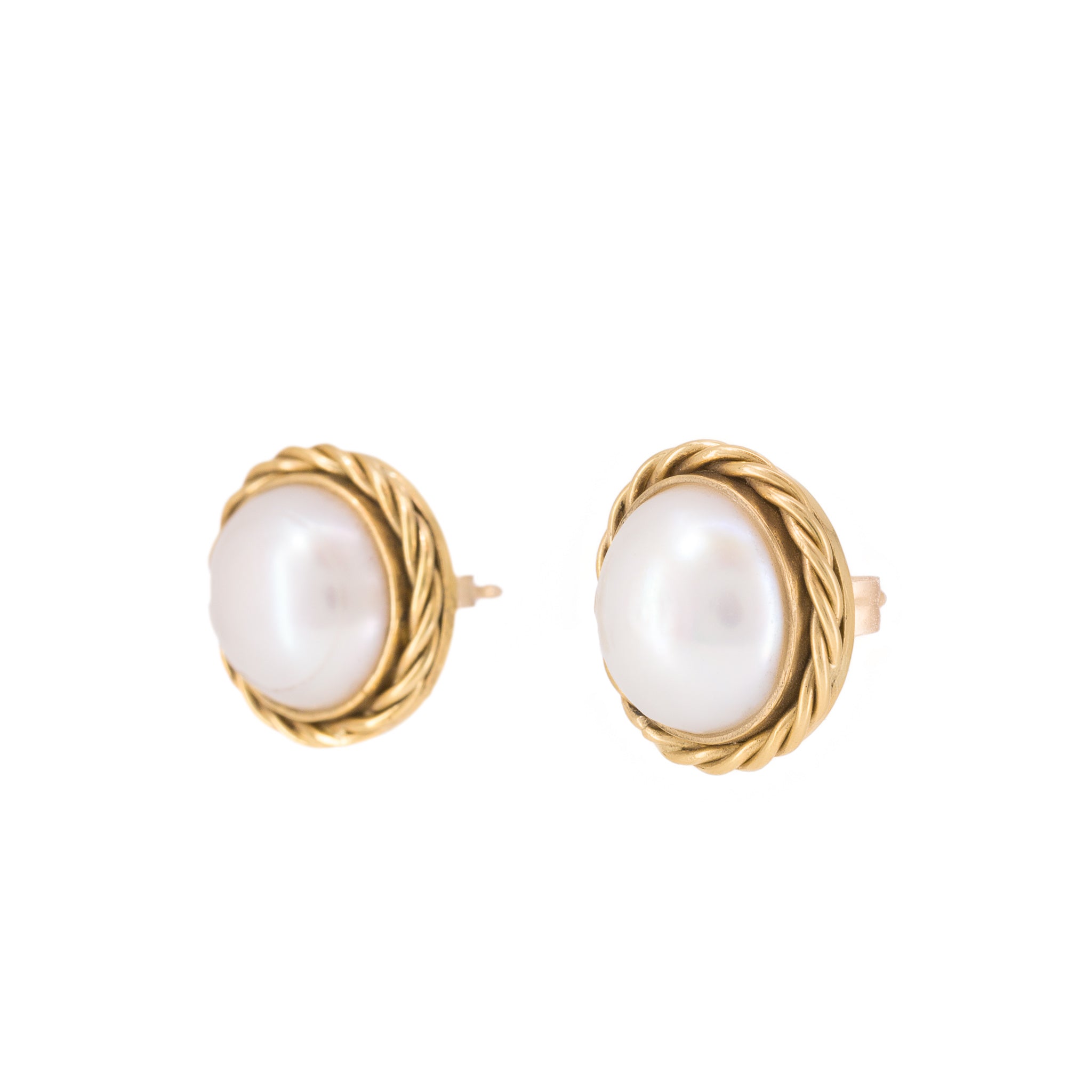 Natural Mabe Pearl 18k Handcrafted Twisted Bezel Earrings