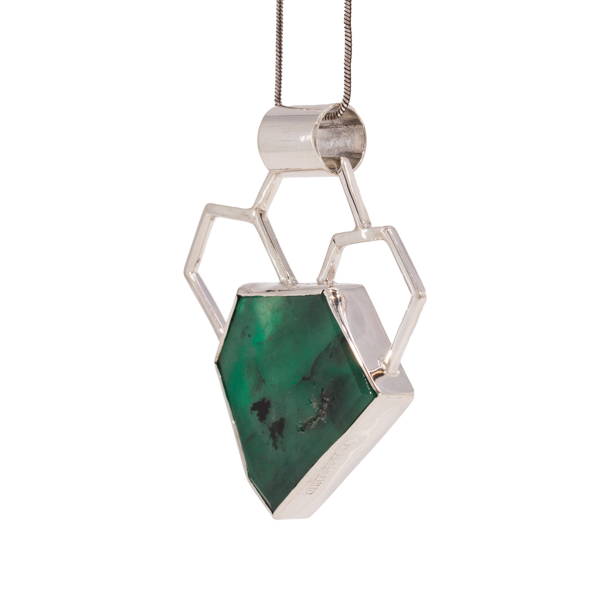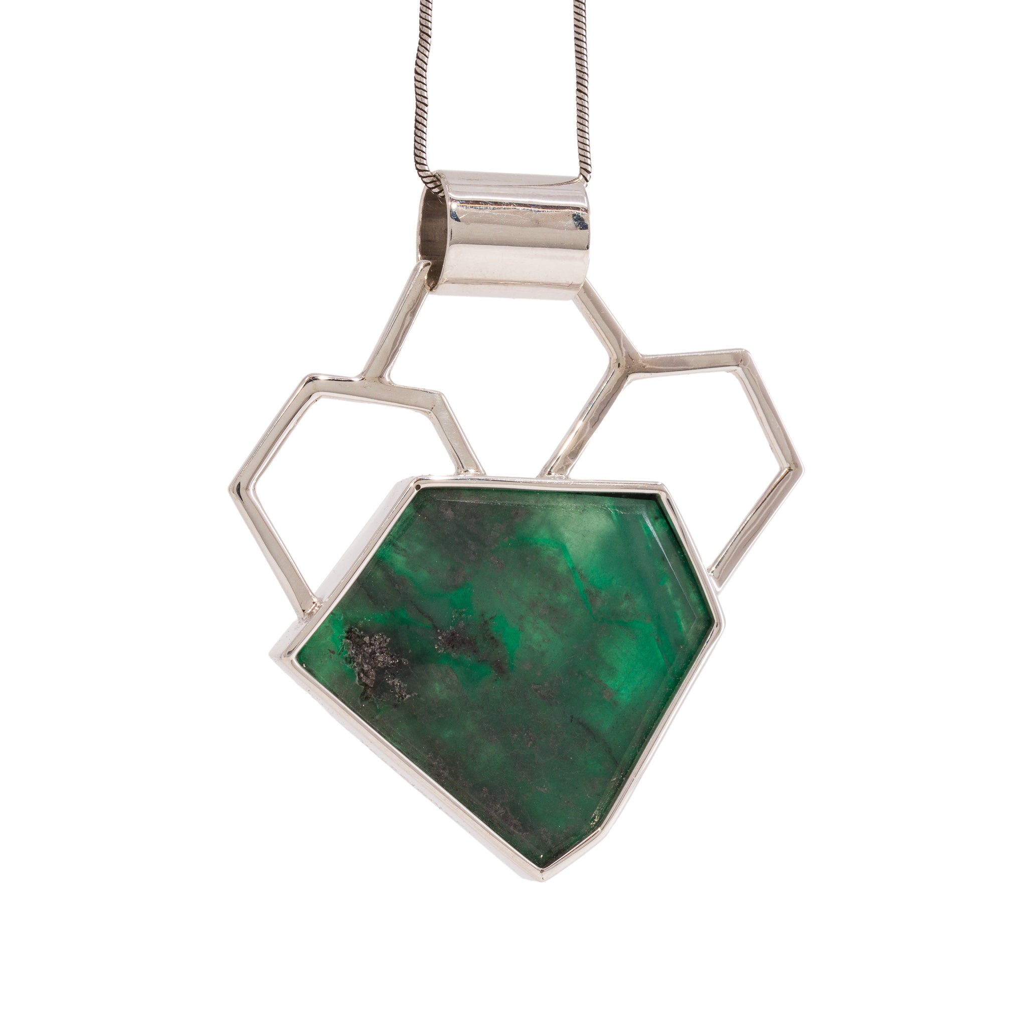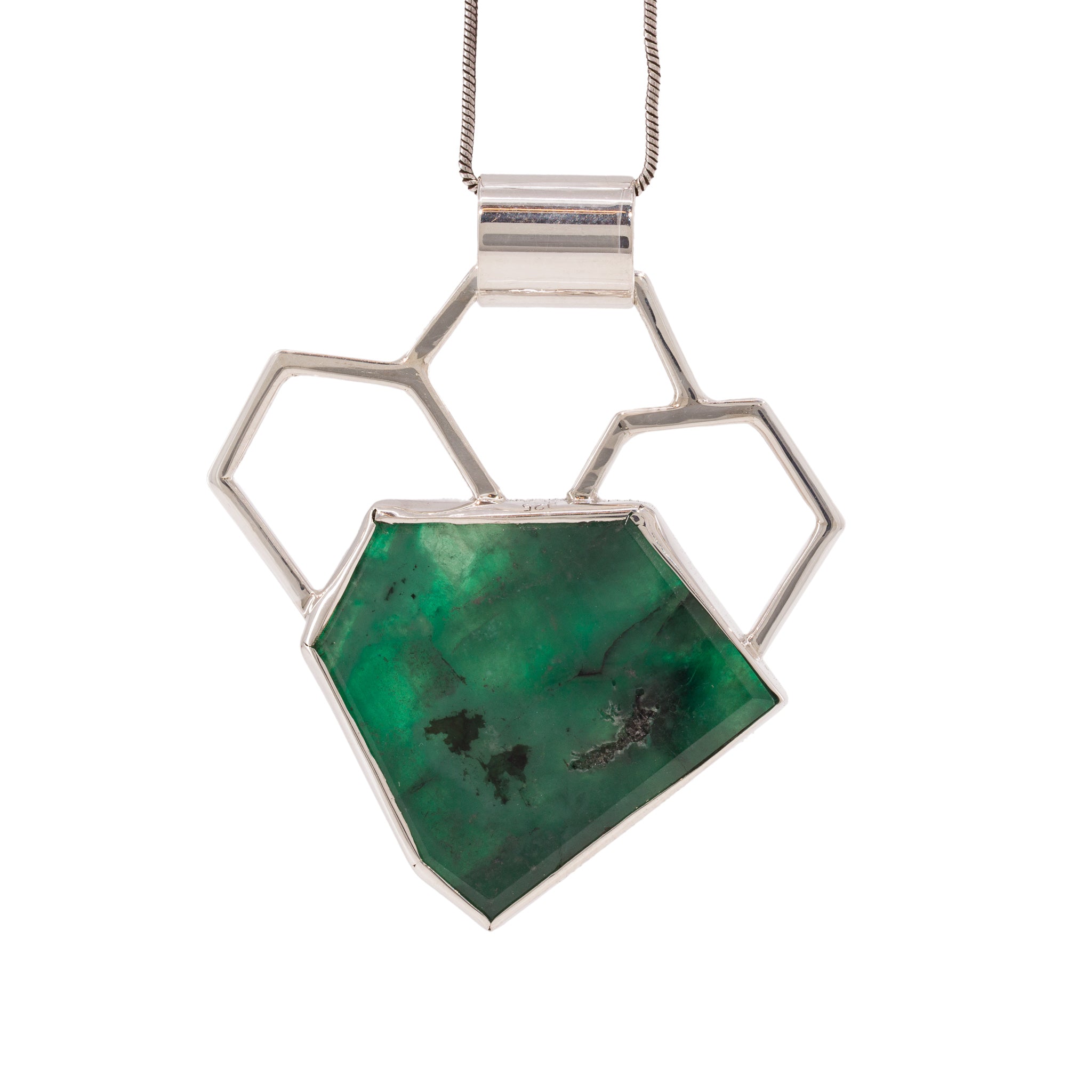 Emerald Slice 21.98 Carat Sterling Silver Handcrafted Gemstone Pendant