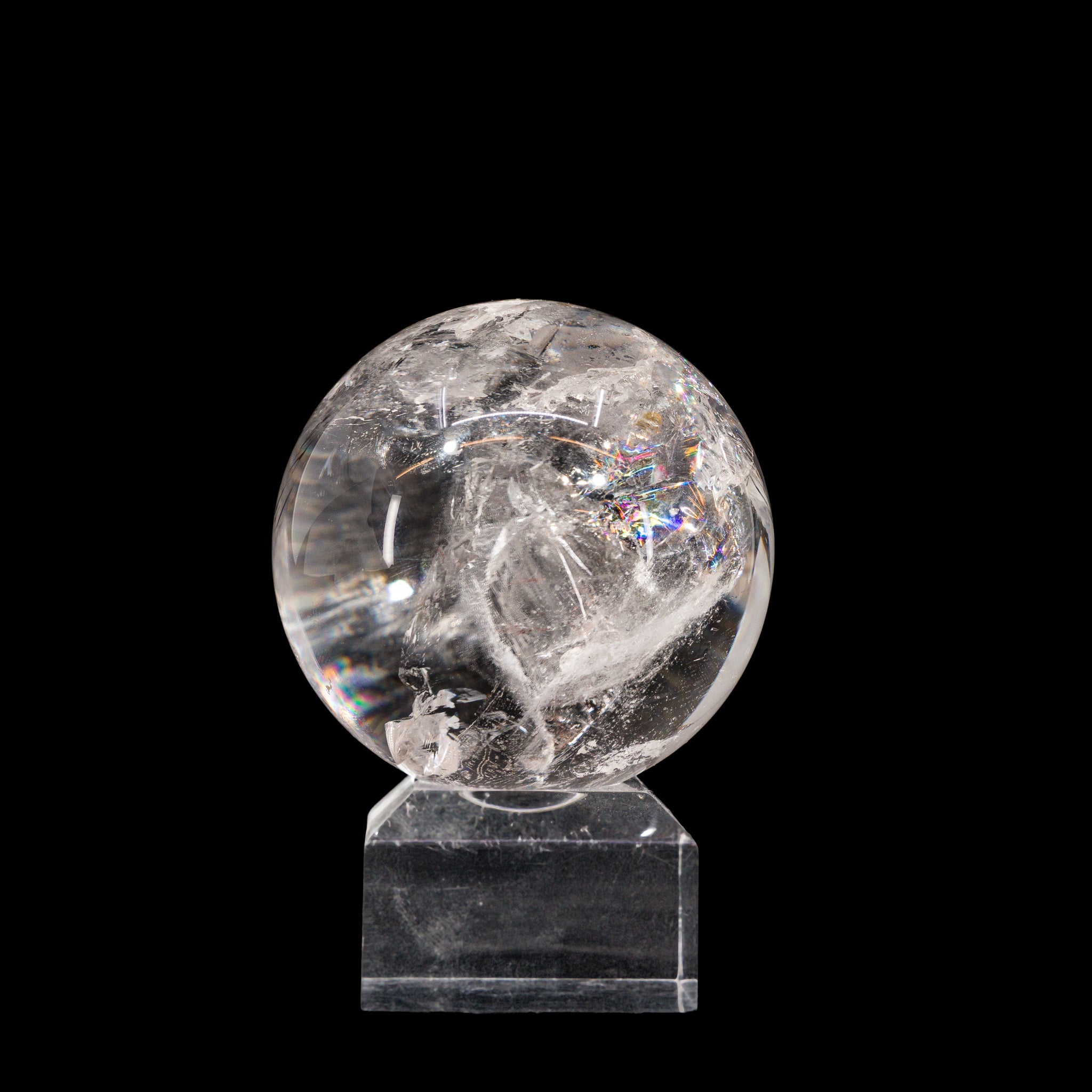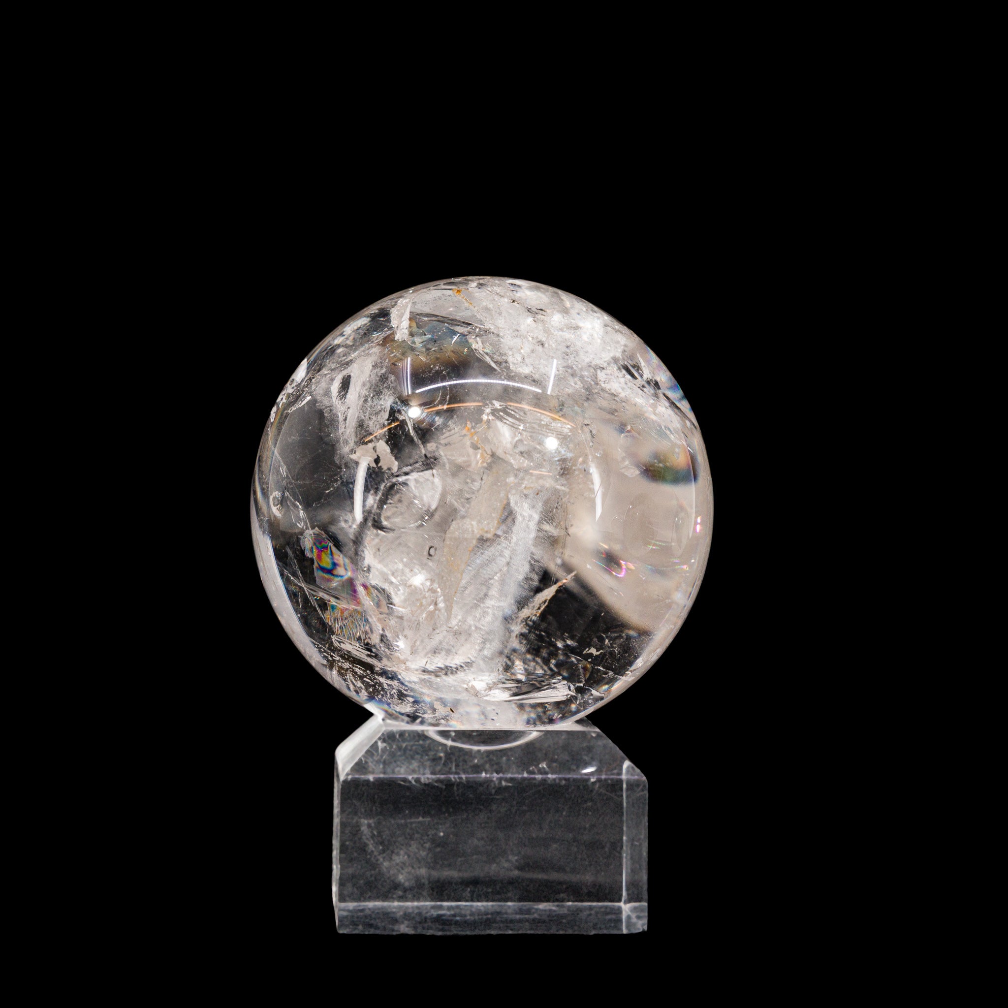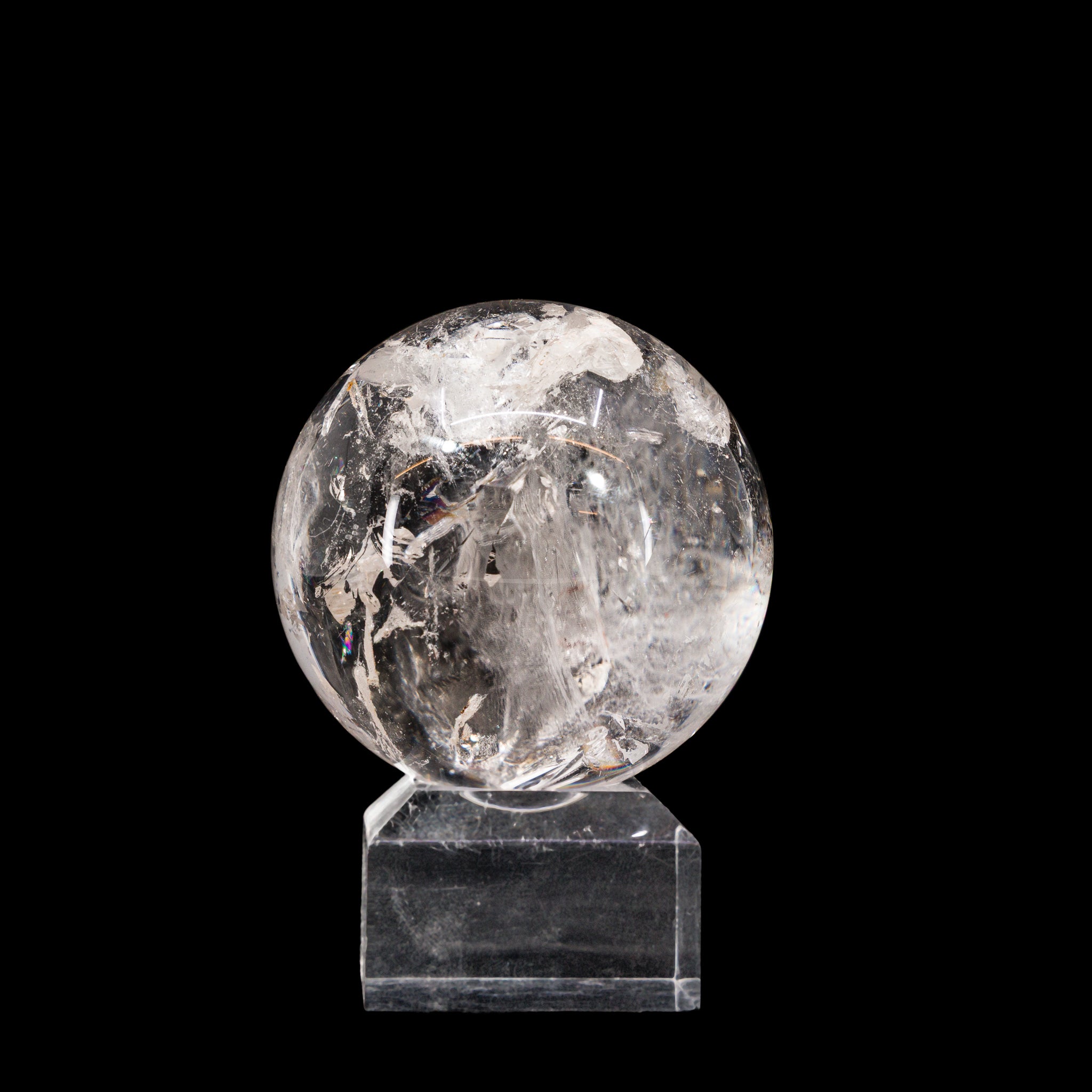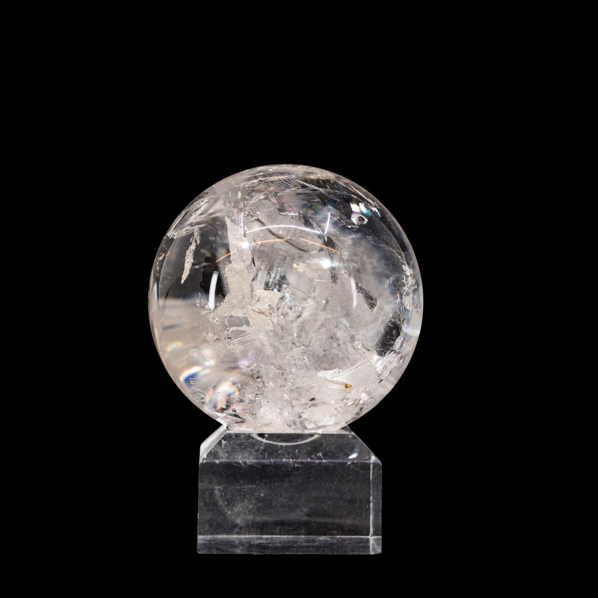 This unique Quartz Enhydro sphere weighs 261.7 grams and measures 2.3 inches in diameter. Enhydros are special Quartz formations containing ancient water bubbles, making them rare and highly prized among collectors. Polished into a smooth sphere, this piece is not only beautiful but also carries the profound energy of preserved elemental water, amplifying its spiritual and energetic significance.
