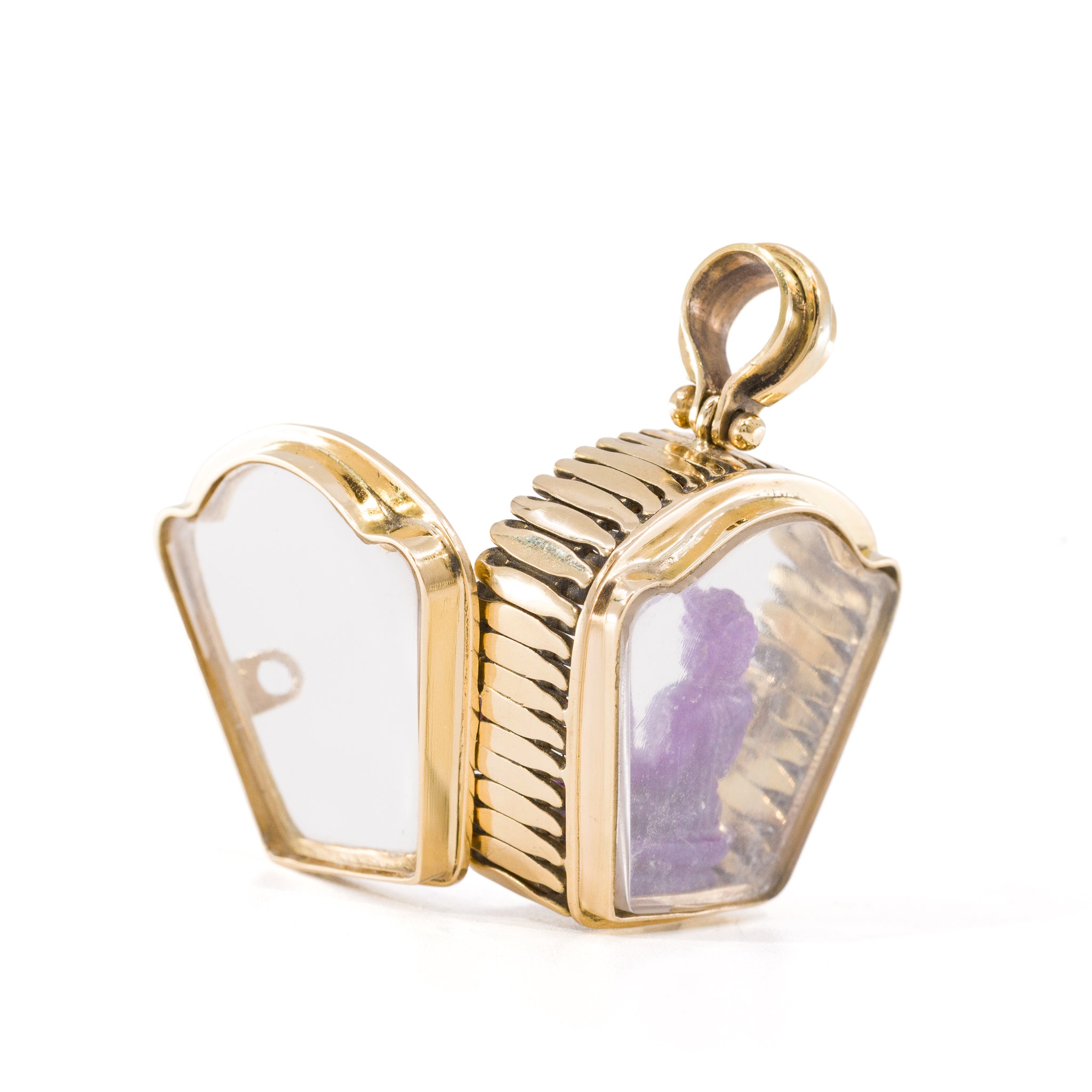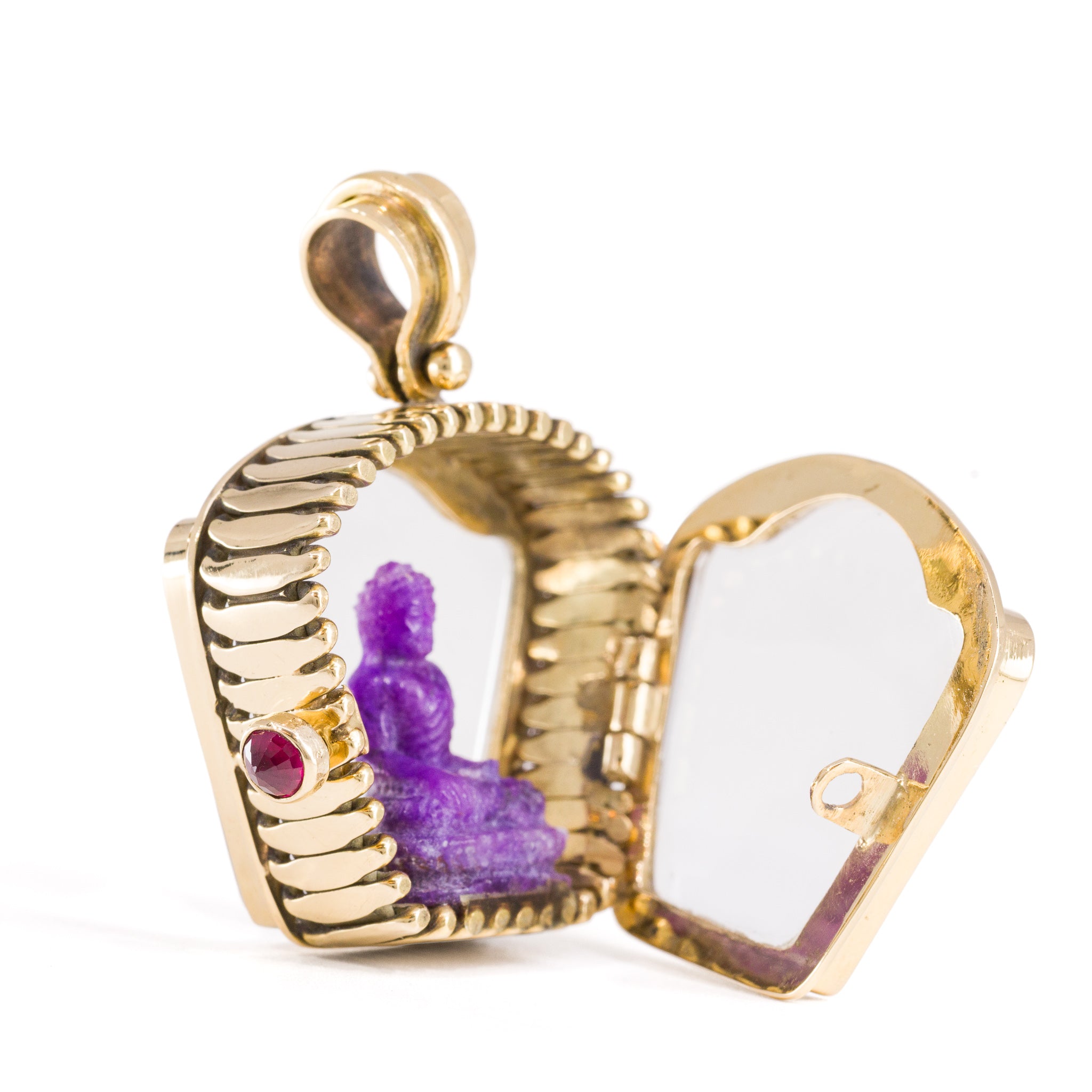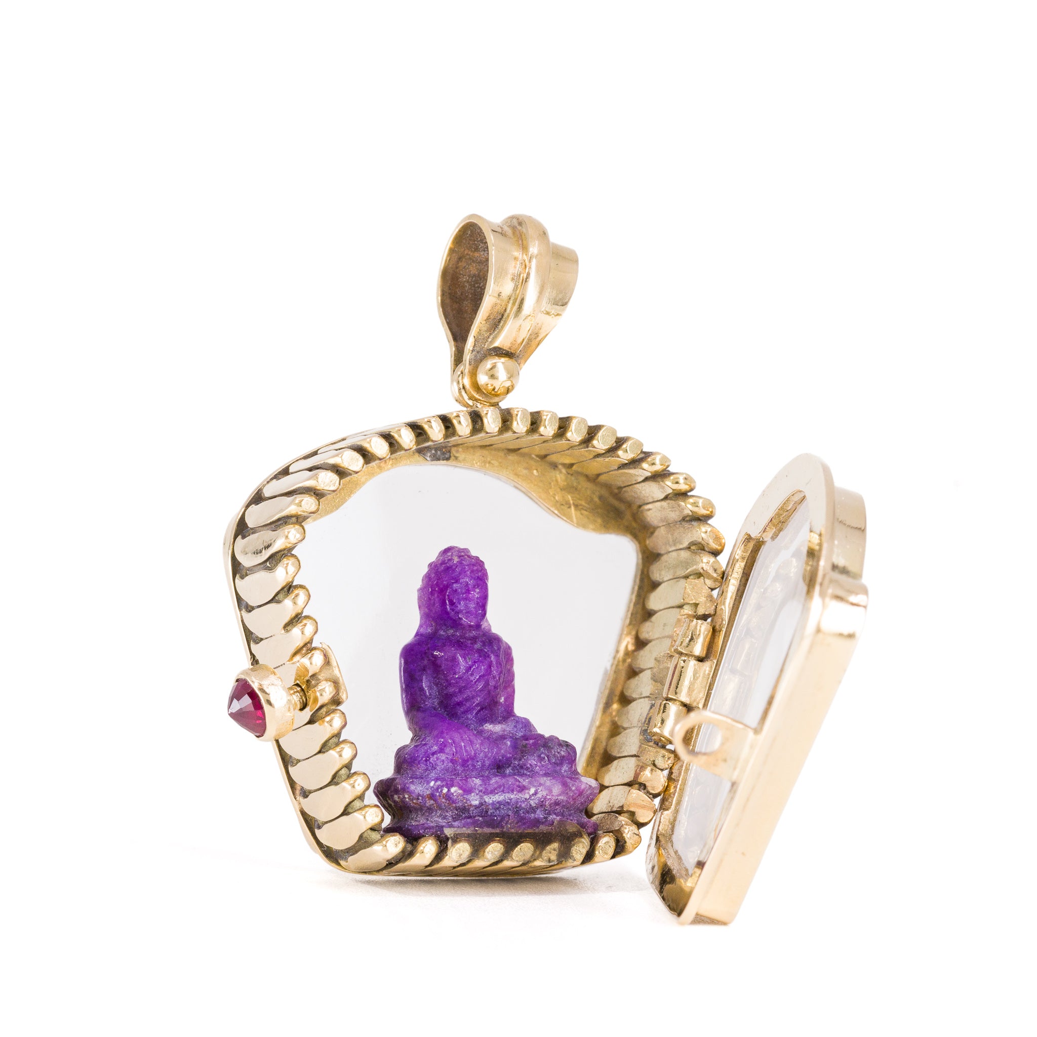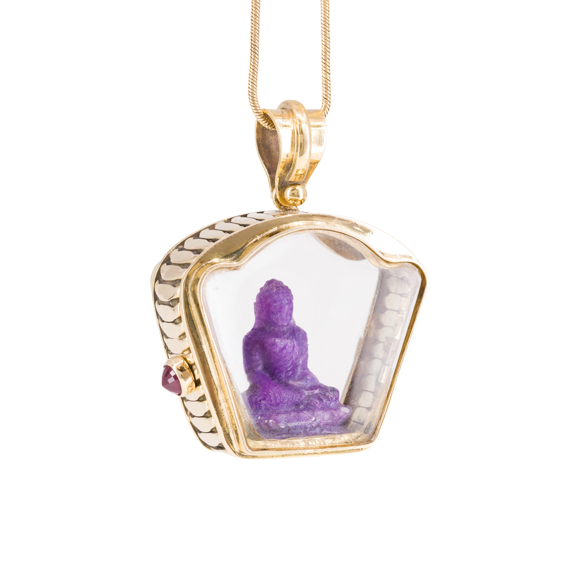 Sugilite Buddha Carving & Ruby 18K Handcrafted Hinged Altar Pendant