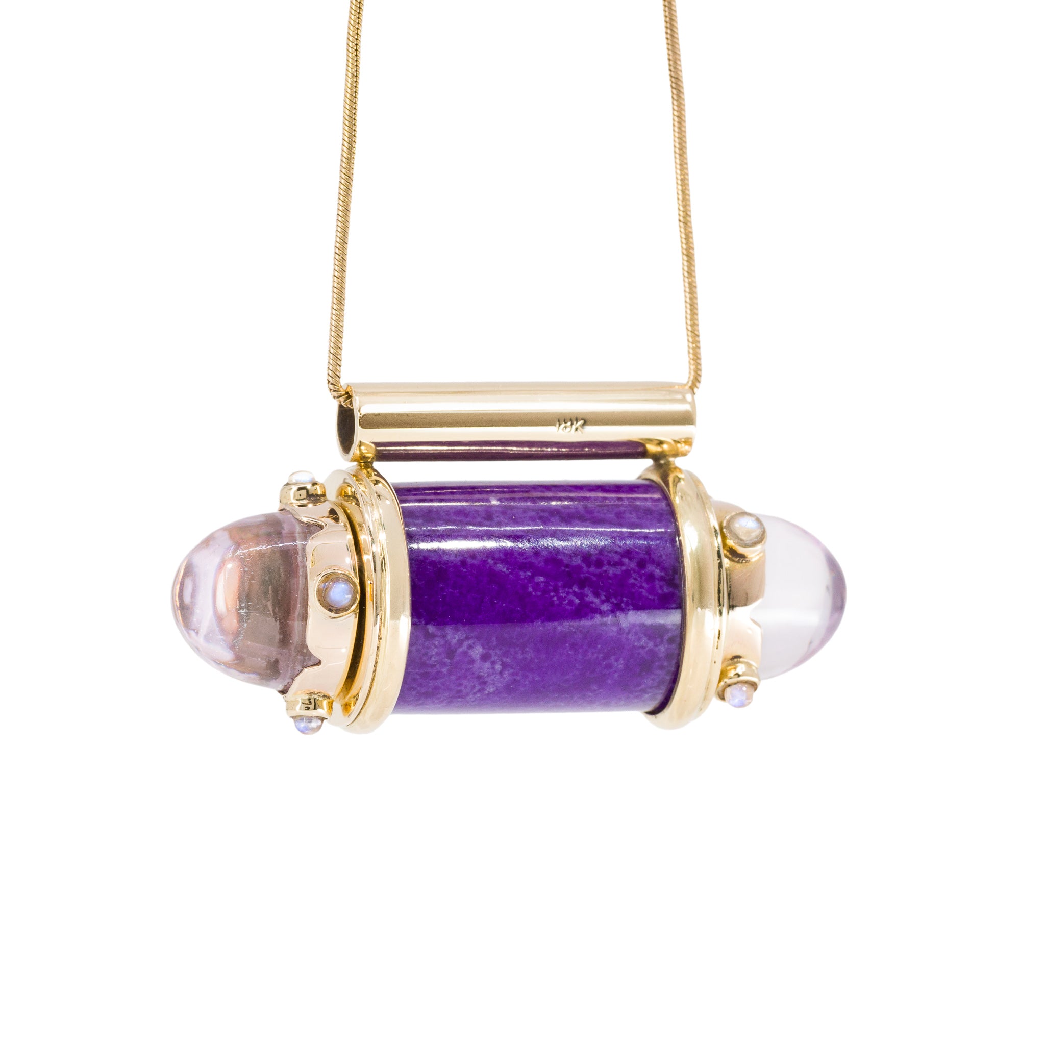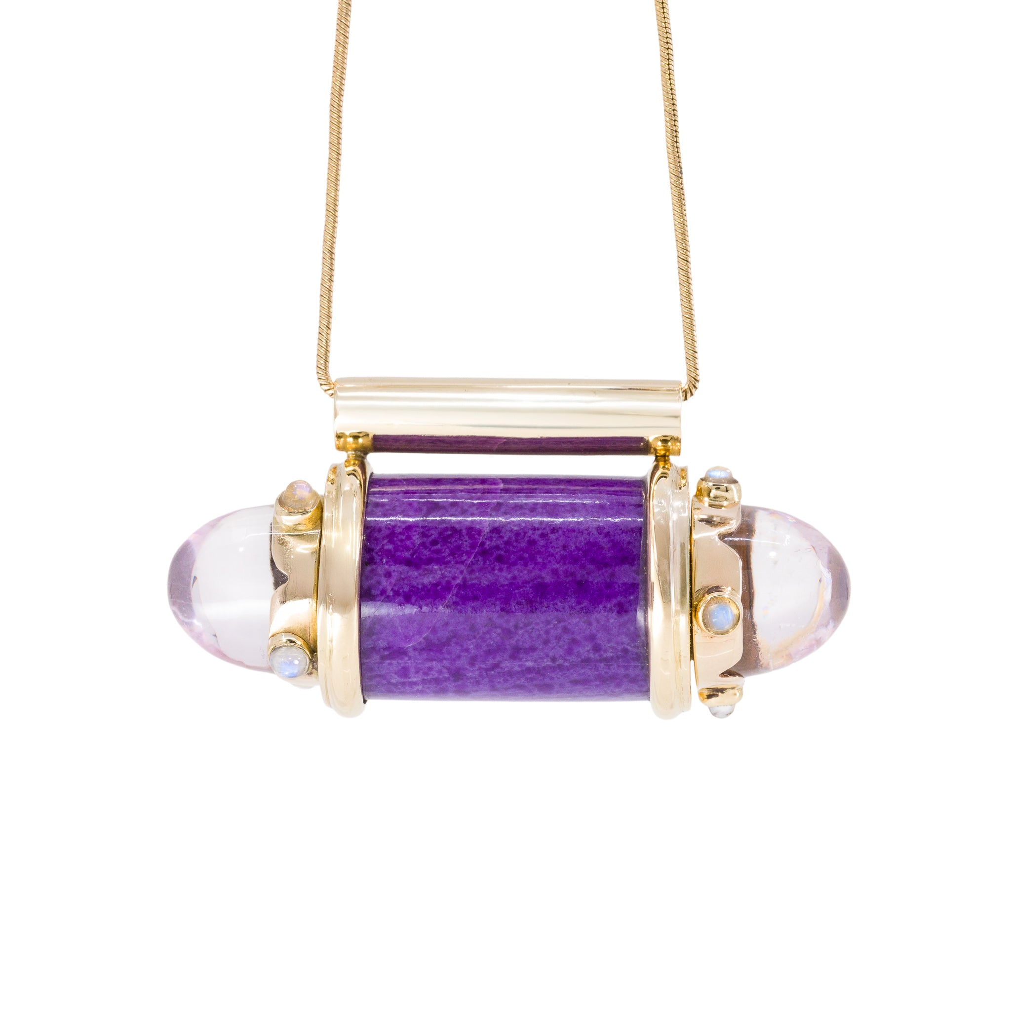 Sugilite, Kunzite & Moonstone 18K Handcrafted Gemstone Vessel Pendant