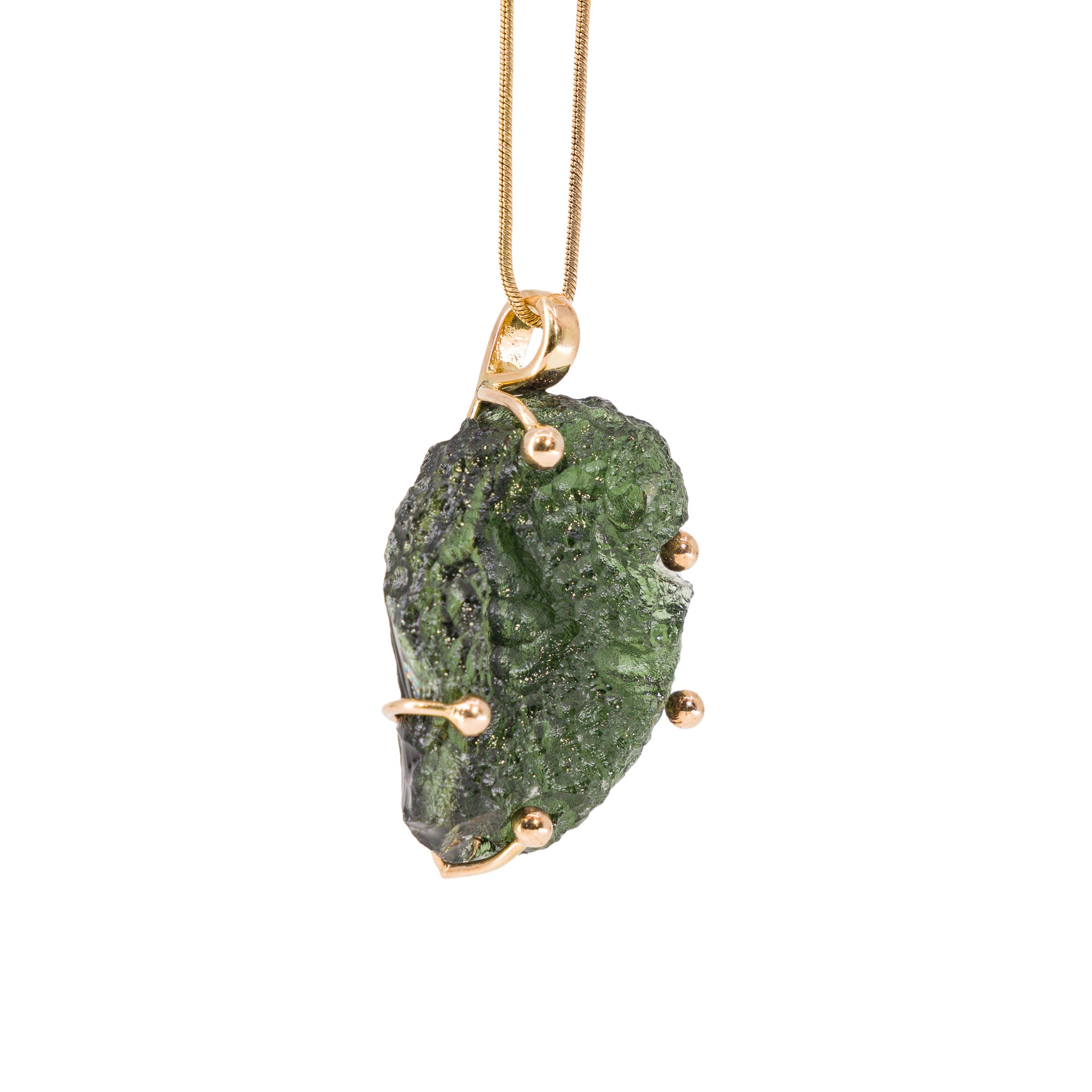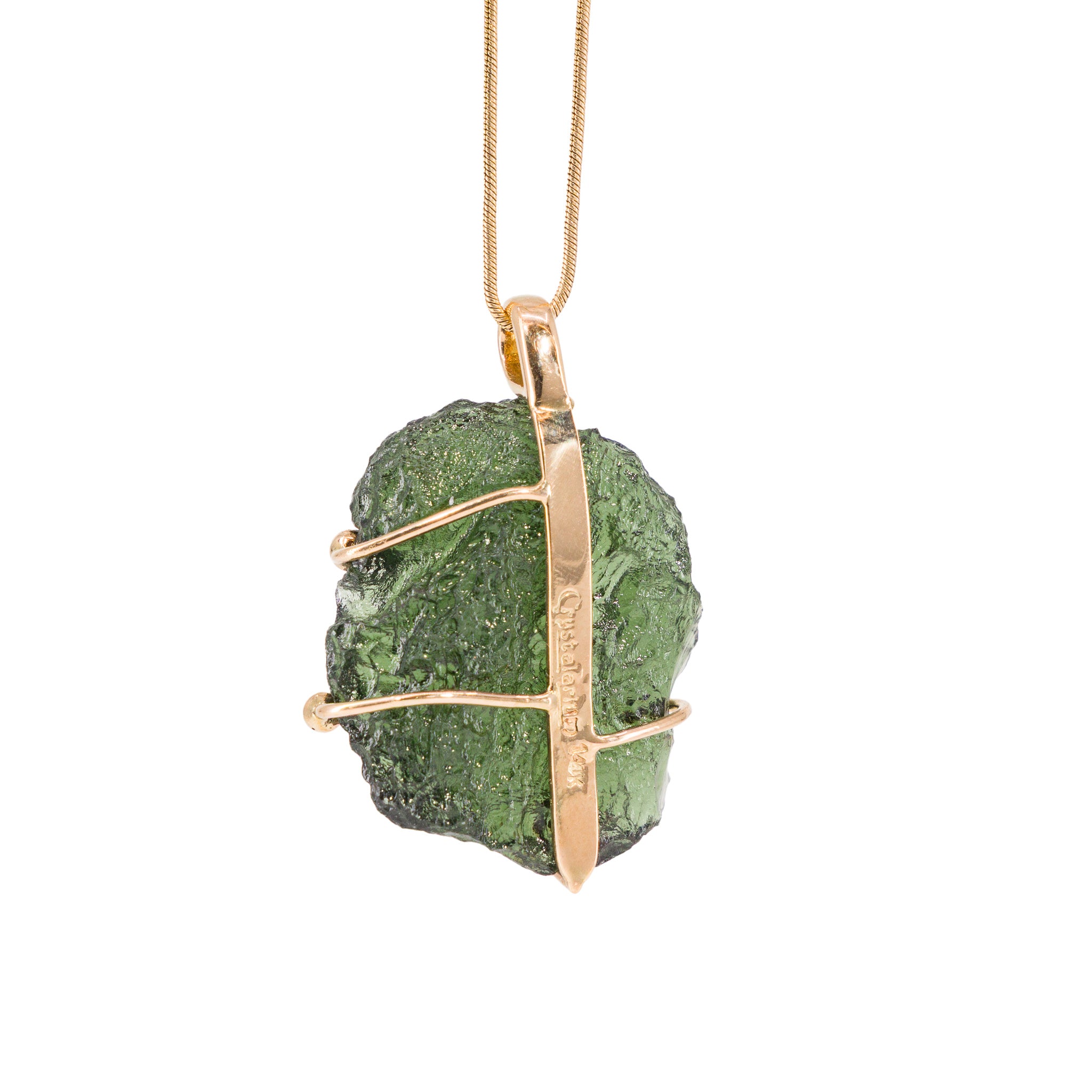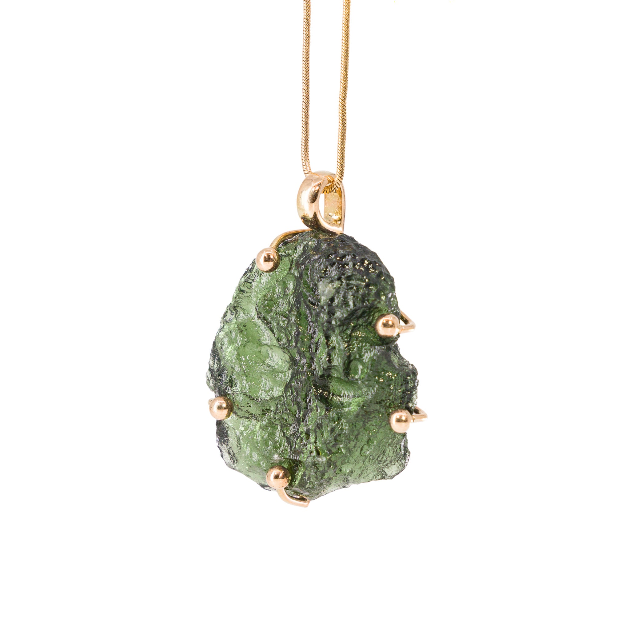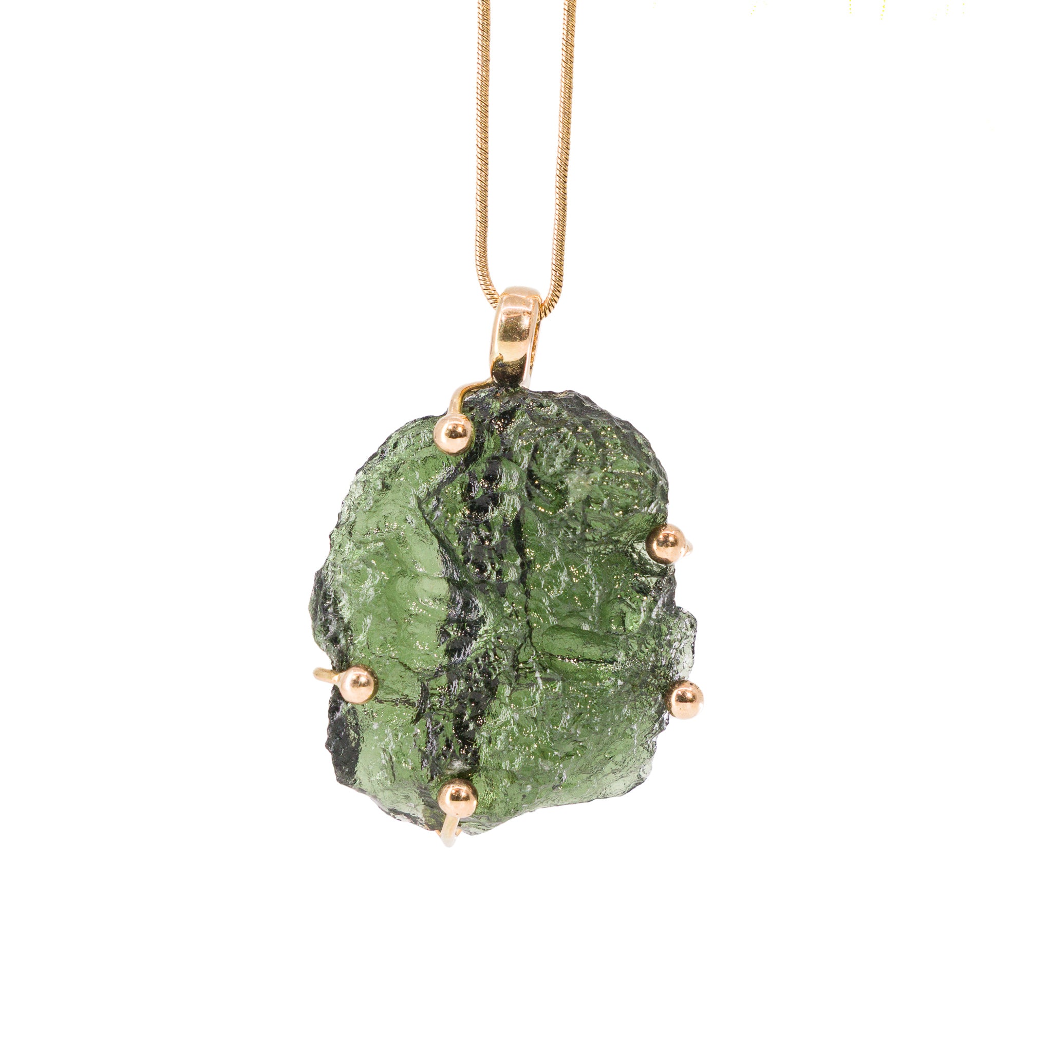 Moldavite 10.95 Gram 14k Handcrafted Natural Crystal Pendant