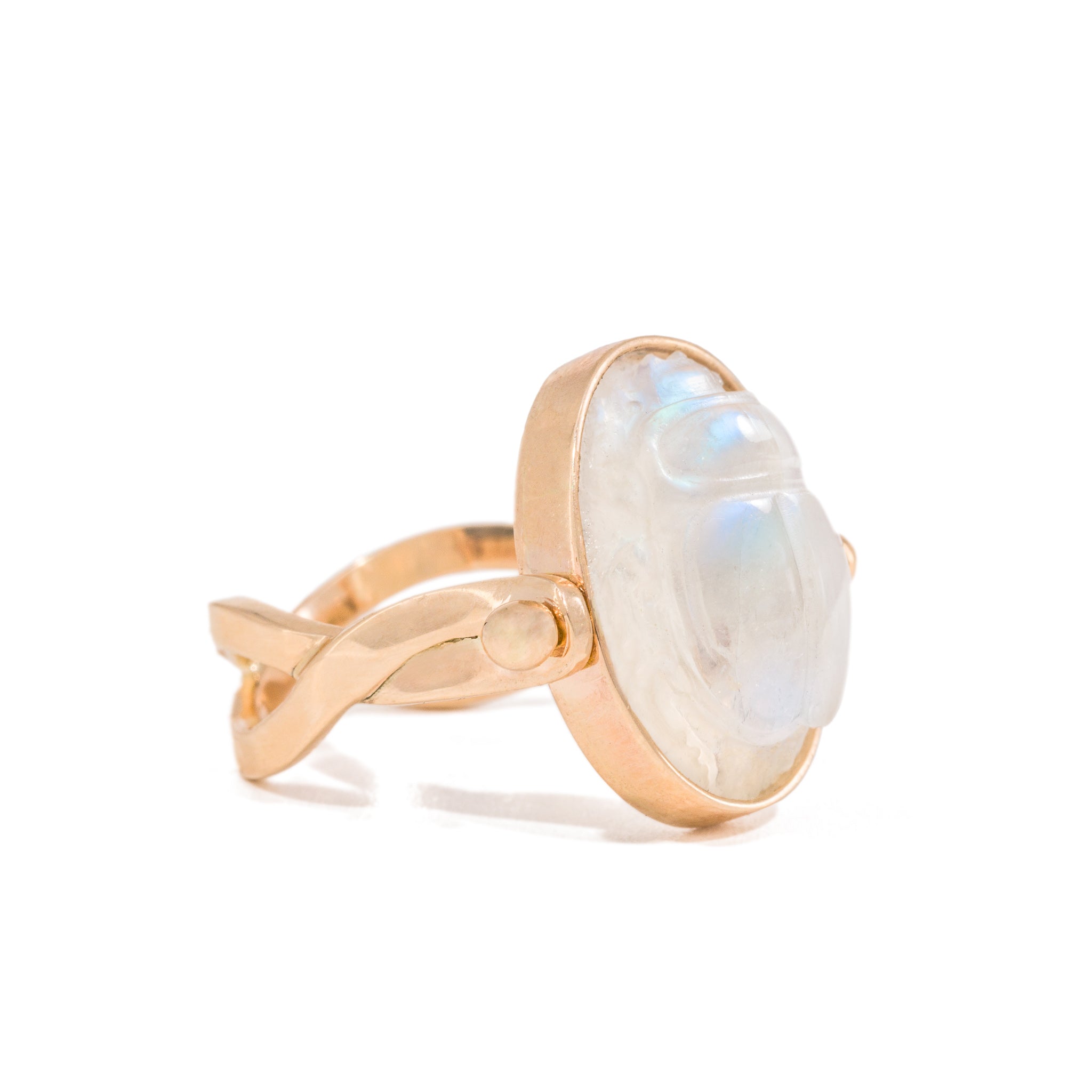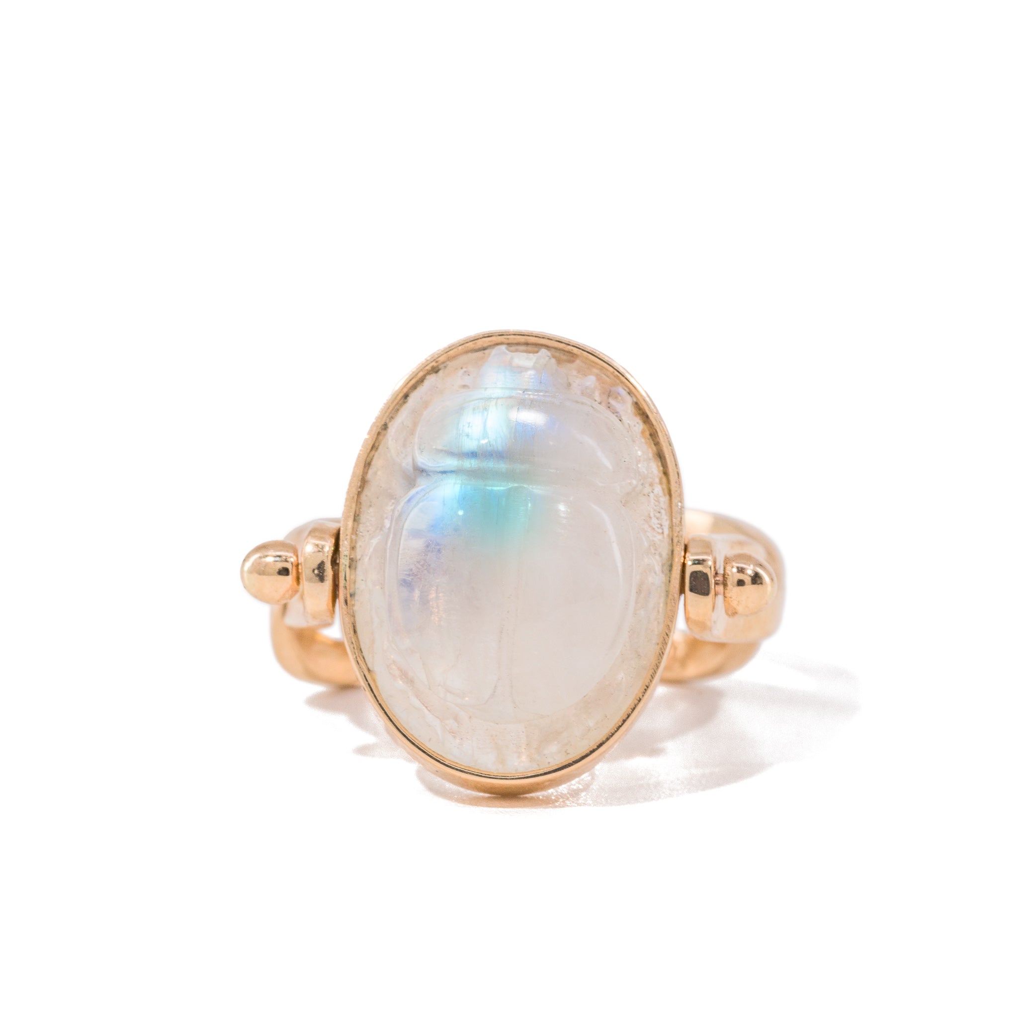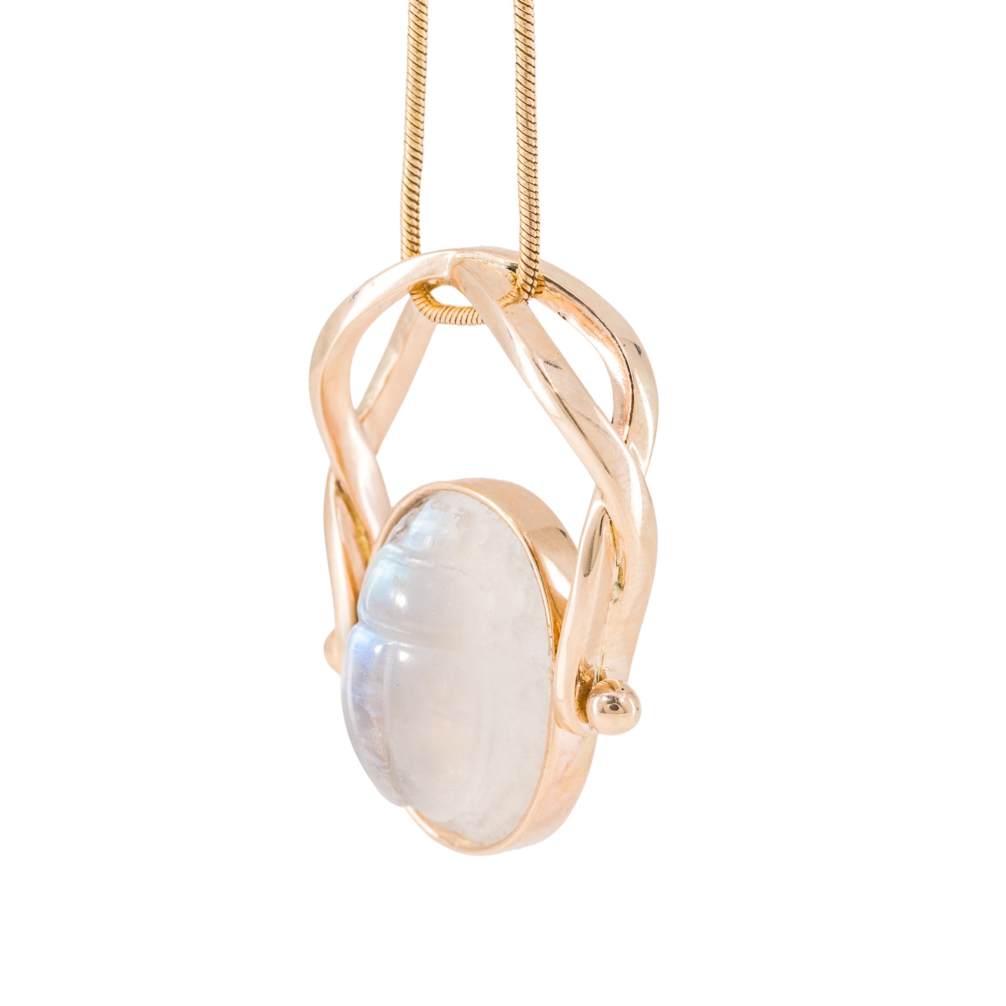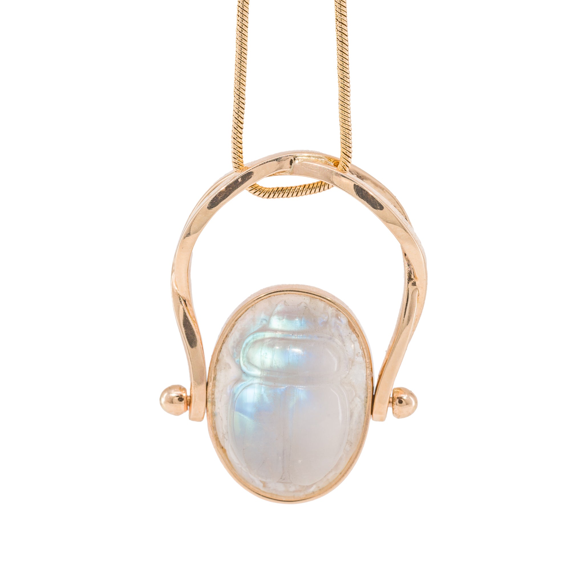 Moonstone Scarab 11.25 Carat 14k Handcrafted Gemstone Swivel Ring & Pendant