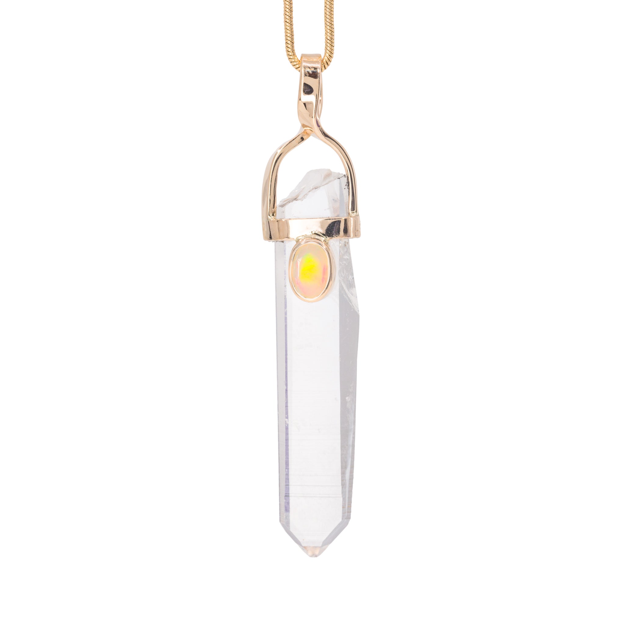 Quartz & Opal 14k Handcrafted Gemstone & Natural Crystal Pendant