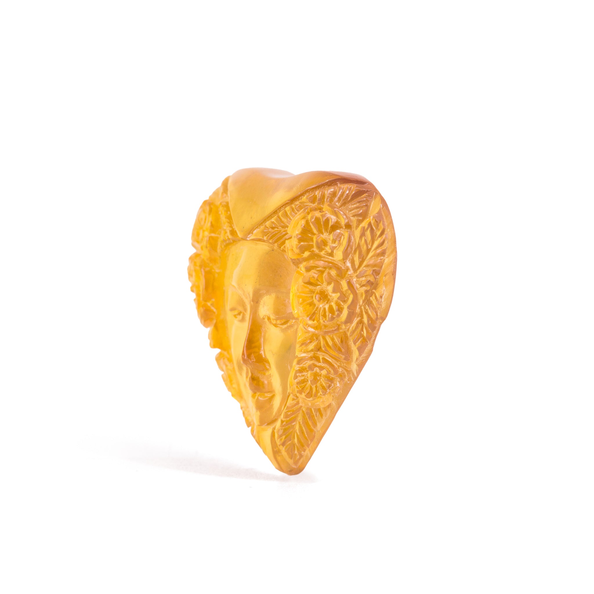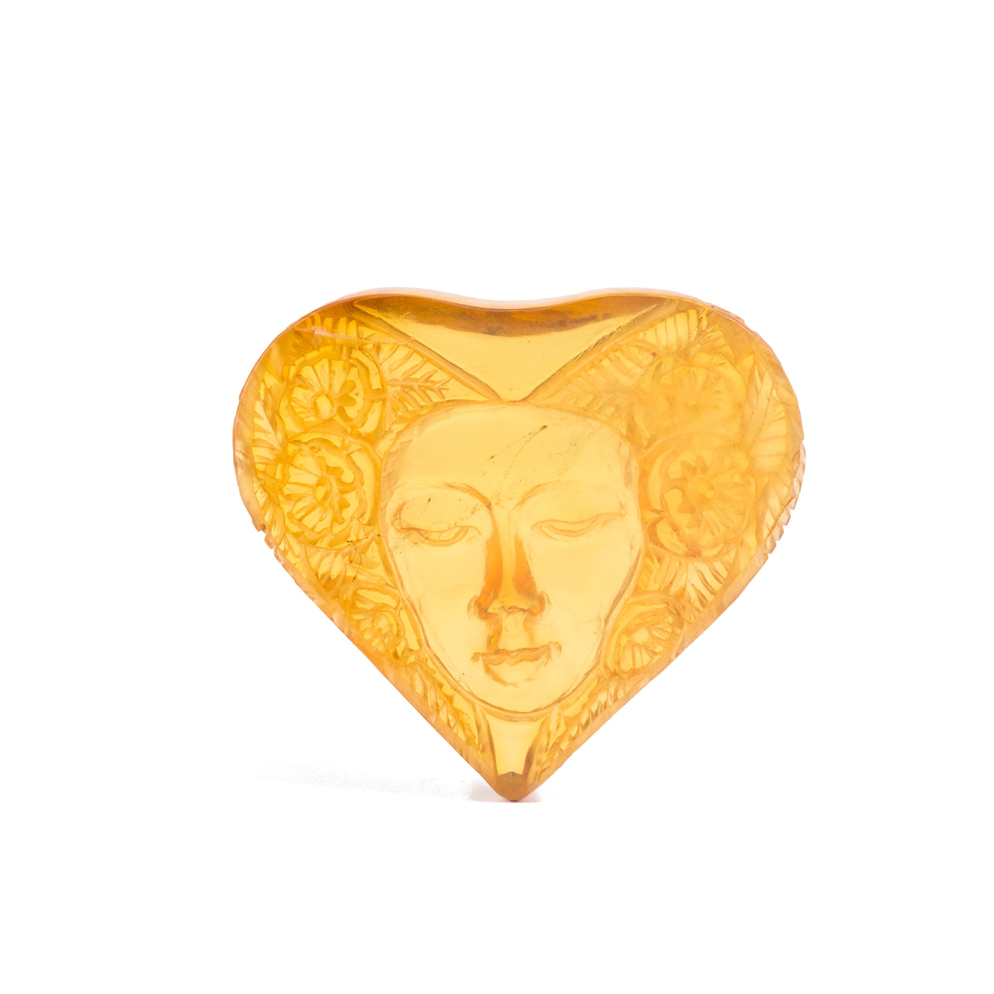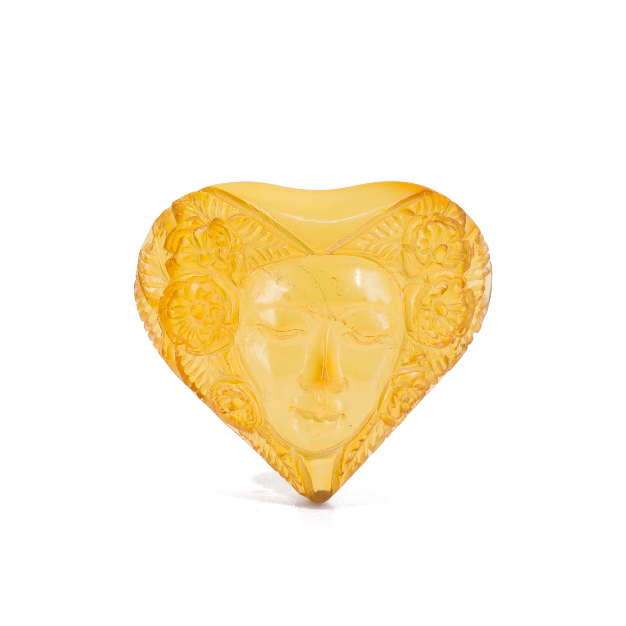 Amber Face in Floral Heart 14.08 Carat Natural Gemstone Carving