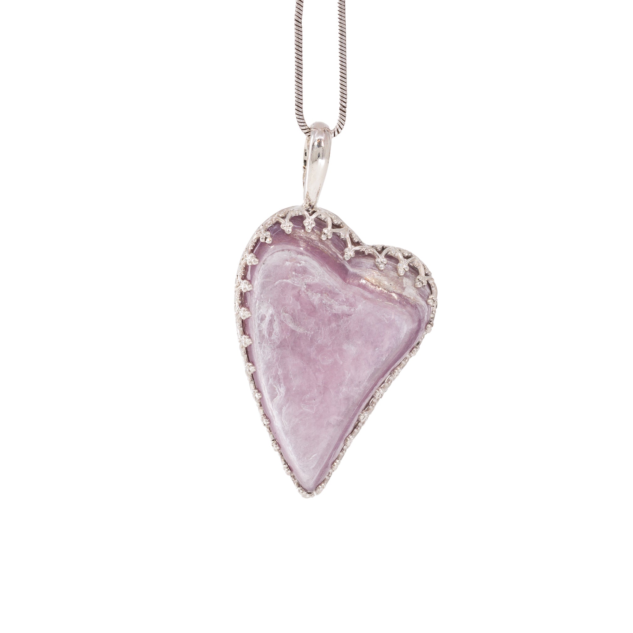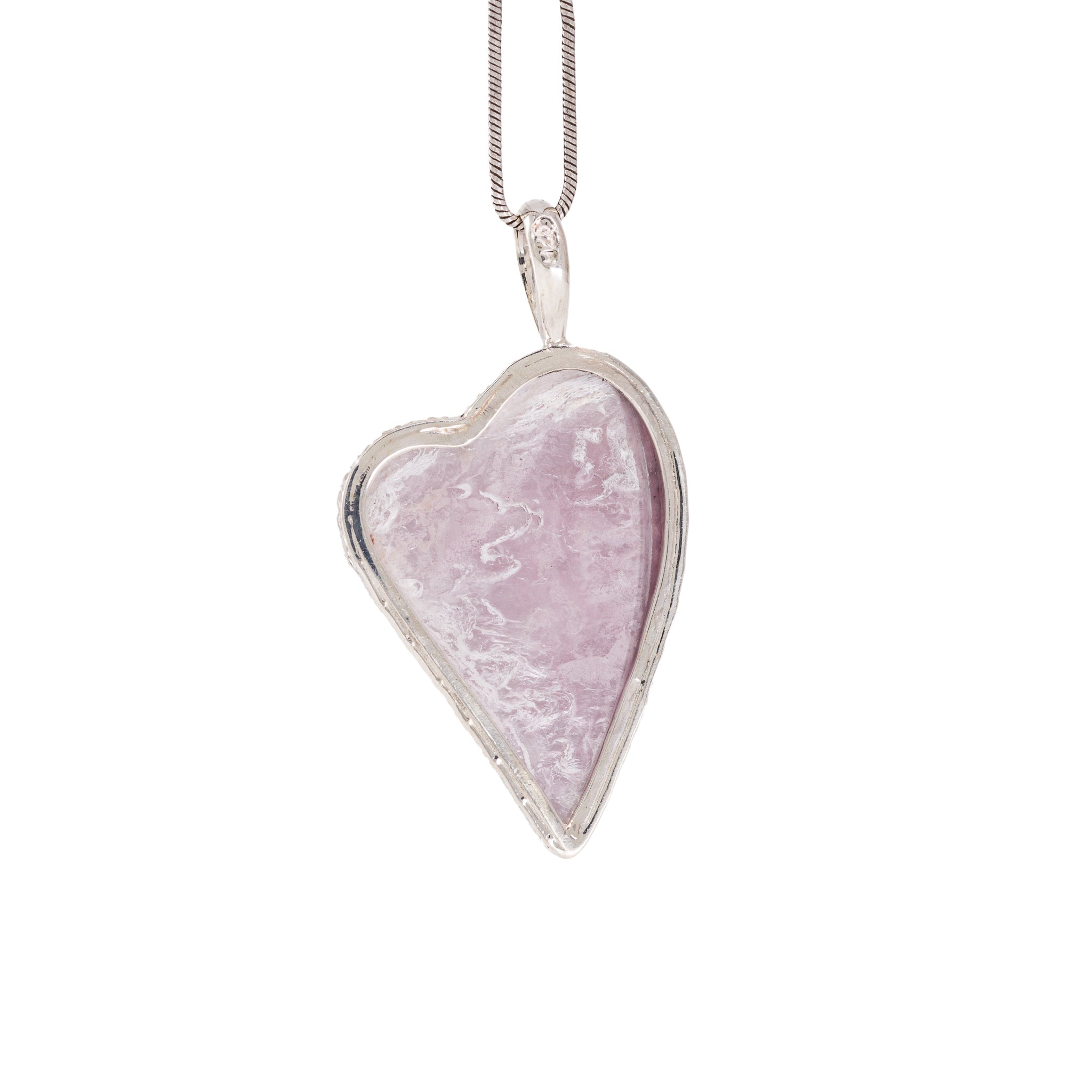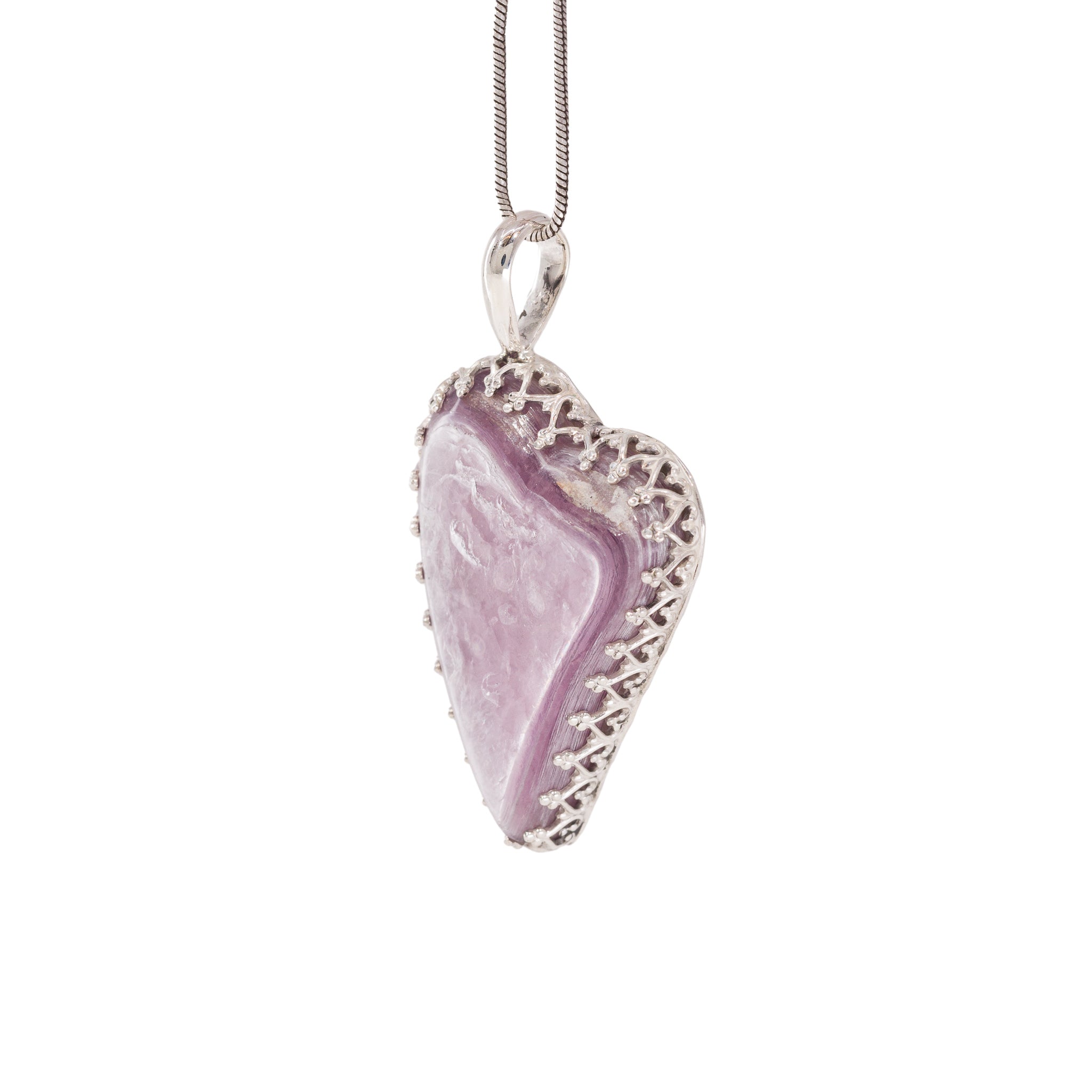 Lepidolite Heart 13.34 Carat Sterling Silver Handcrafted Gemstone Pendant