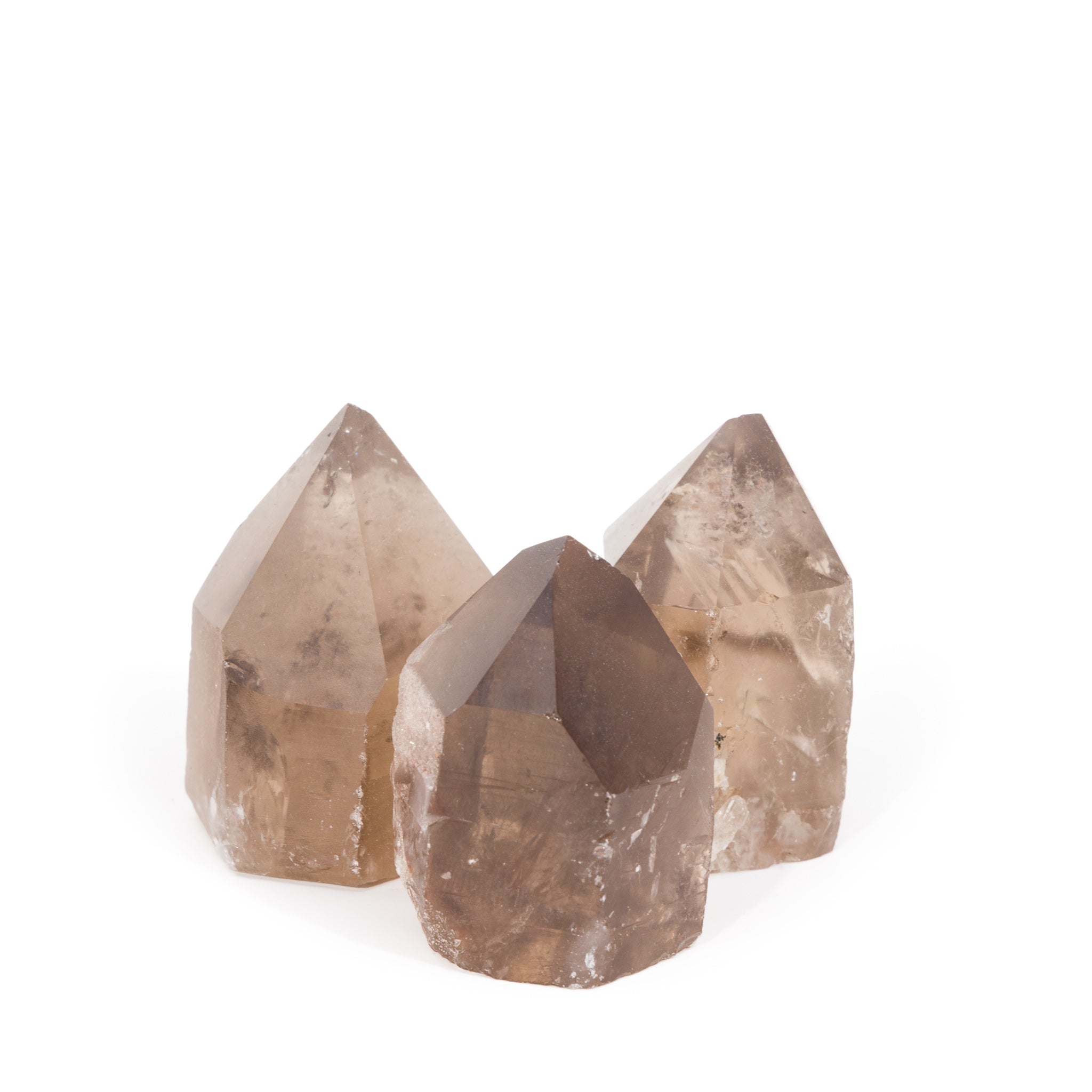 These natural smoky quartz crystals from Brazil have been partially polished to allow them to sit perfectly, and to reveal any shimmery rainbows just beneath the surface! An excellent addition to a crystal grid or little crystal display. ✨