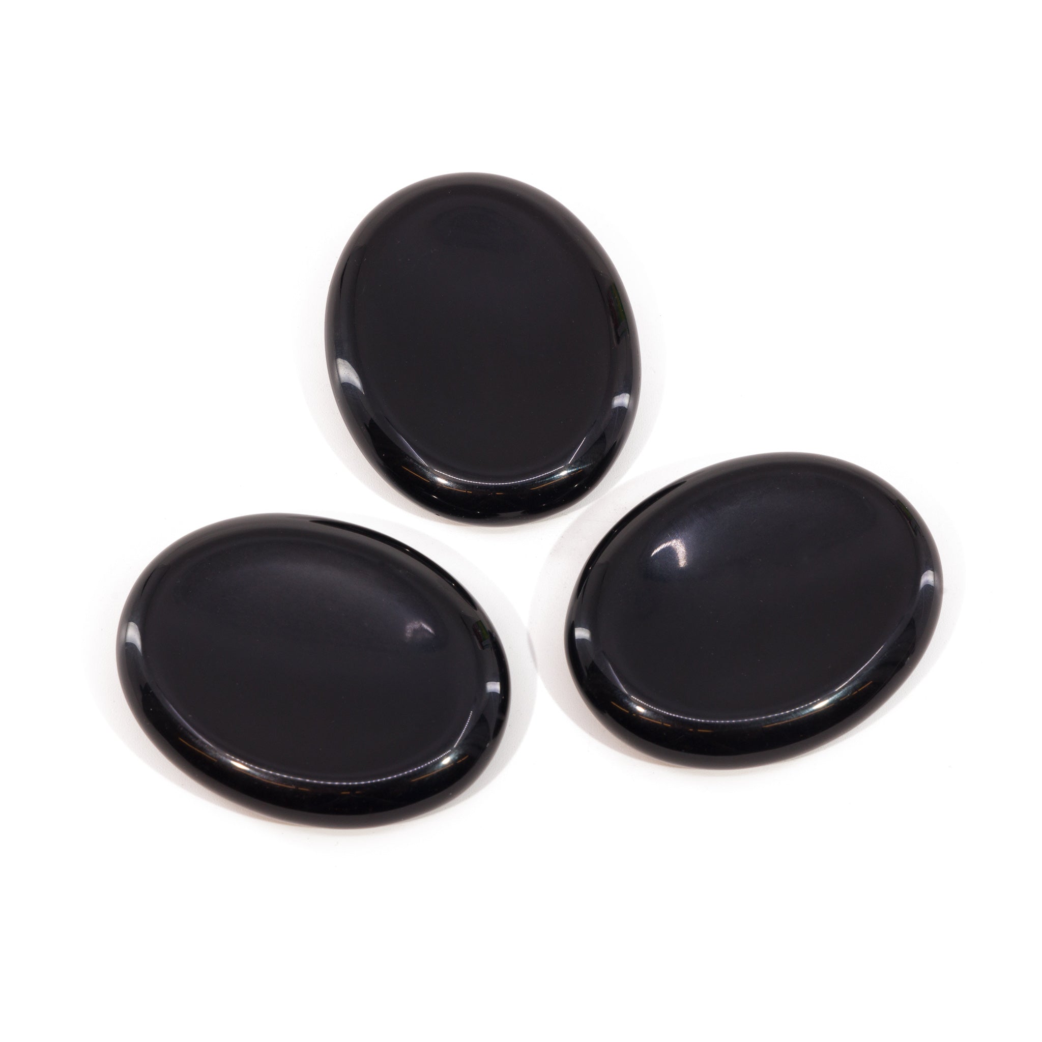 These lovely Obsidian worry stones are crafted from natural volcanic glass, featuring a sleek black surface and a recessed thumb groove - your crystal fidget! Known for its grounding and protective properties, obsidian is often associated with fostering clarity and emotional balance, making it both beautiful and functional.