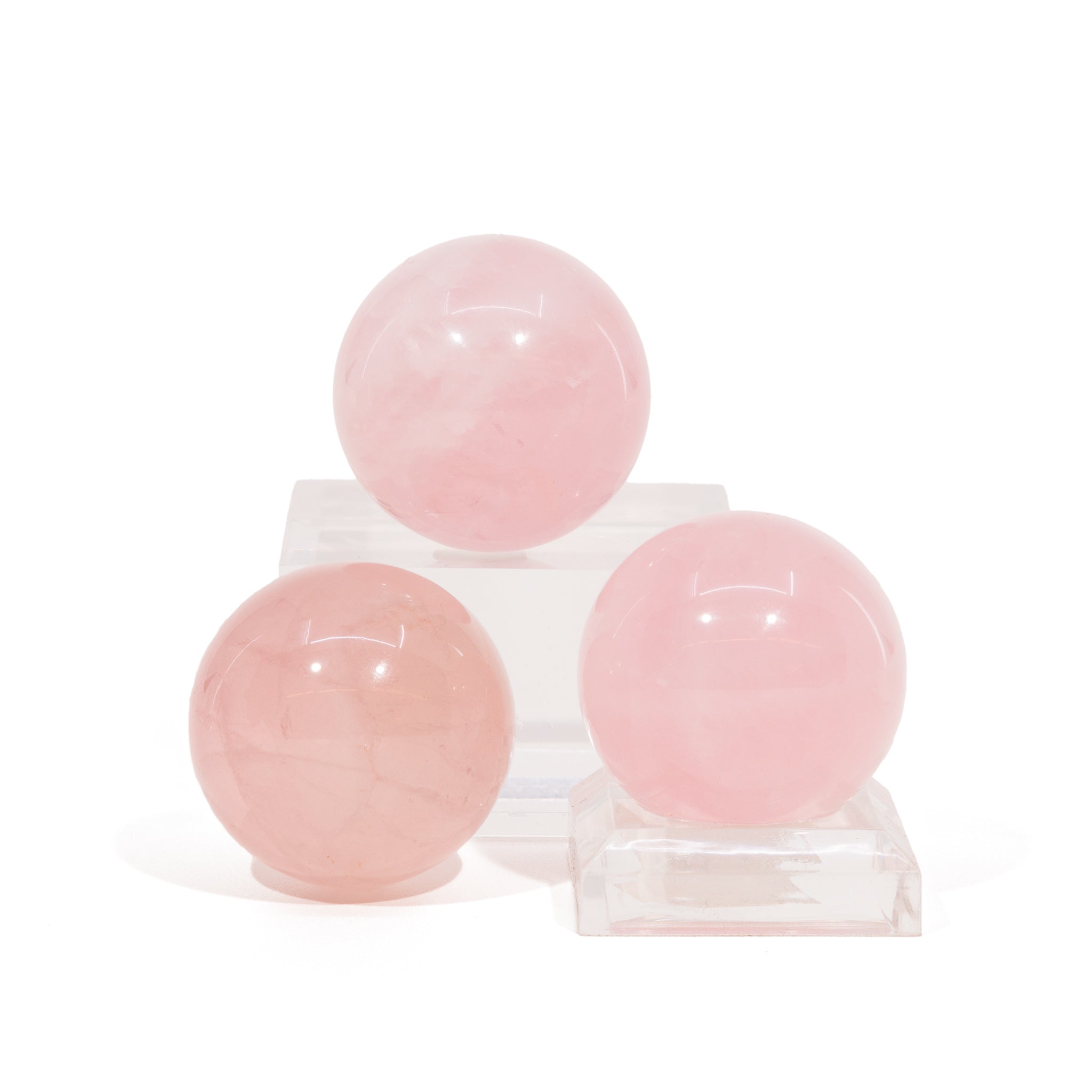 These darling little marble-sized spheres are just bursting with all that juicy rose quartz love and glamour! Each one has it's own personality, and we choose each one by hand as we're packing them up to send to their new homes. ✨