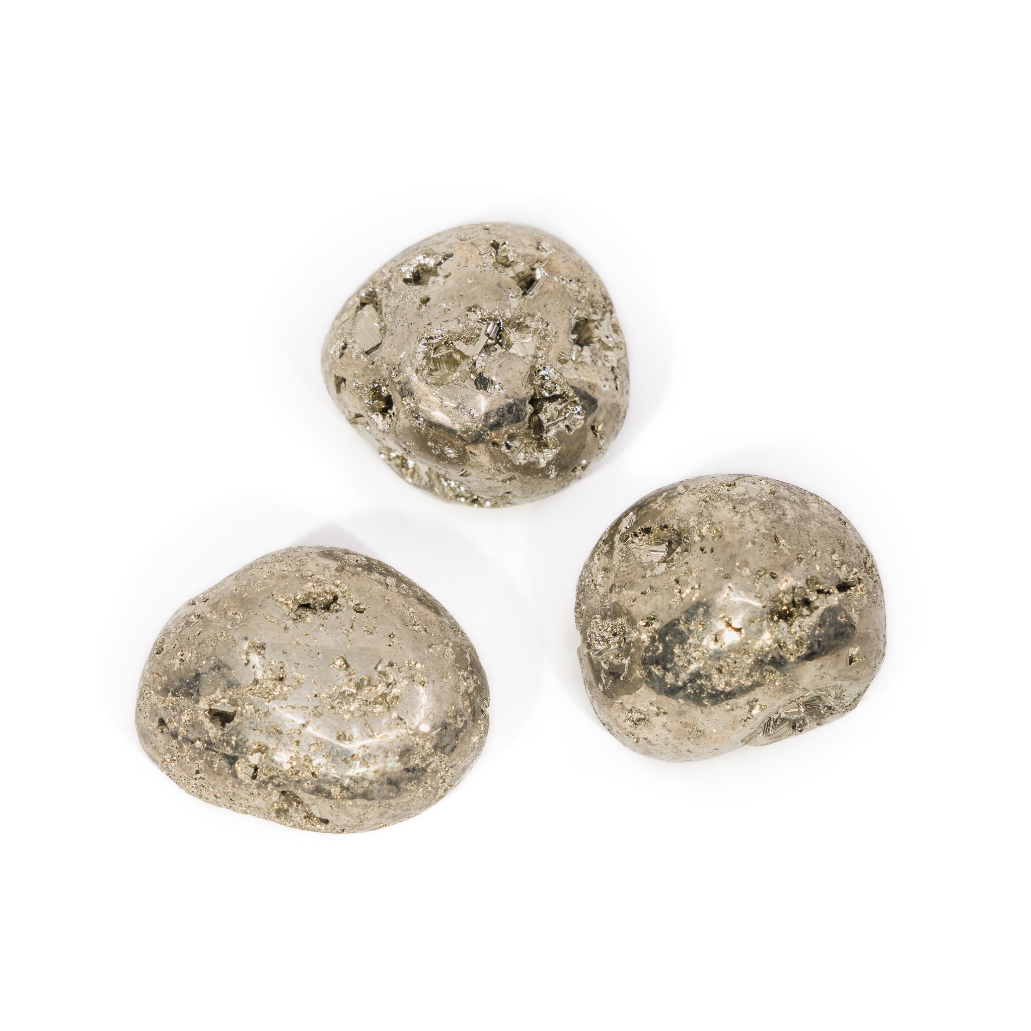 When you tumble pyrite you end up with a beautiful combination of a rounded polished shape with little pockets of natural crystal structure, making them both comfy to hold and super gold and sparkly! This iron sulfide based mineral is a beautiful stone that's believed to aid in manifesting abundance, boosting confidence, protect against negative energies. ✨