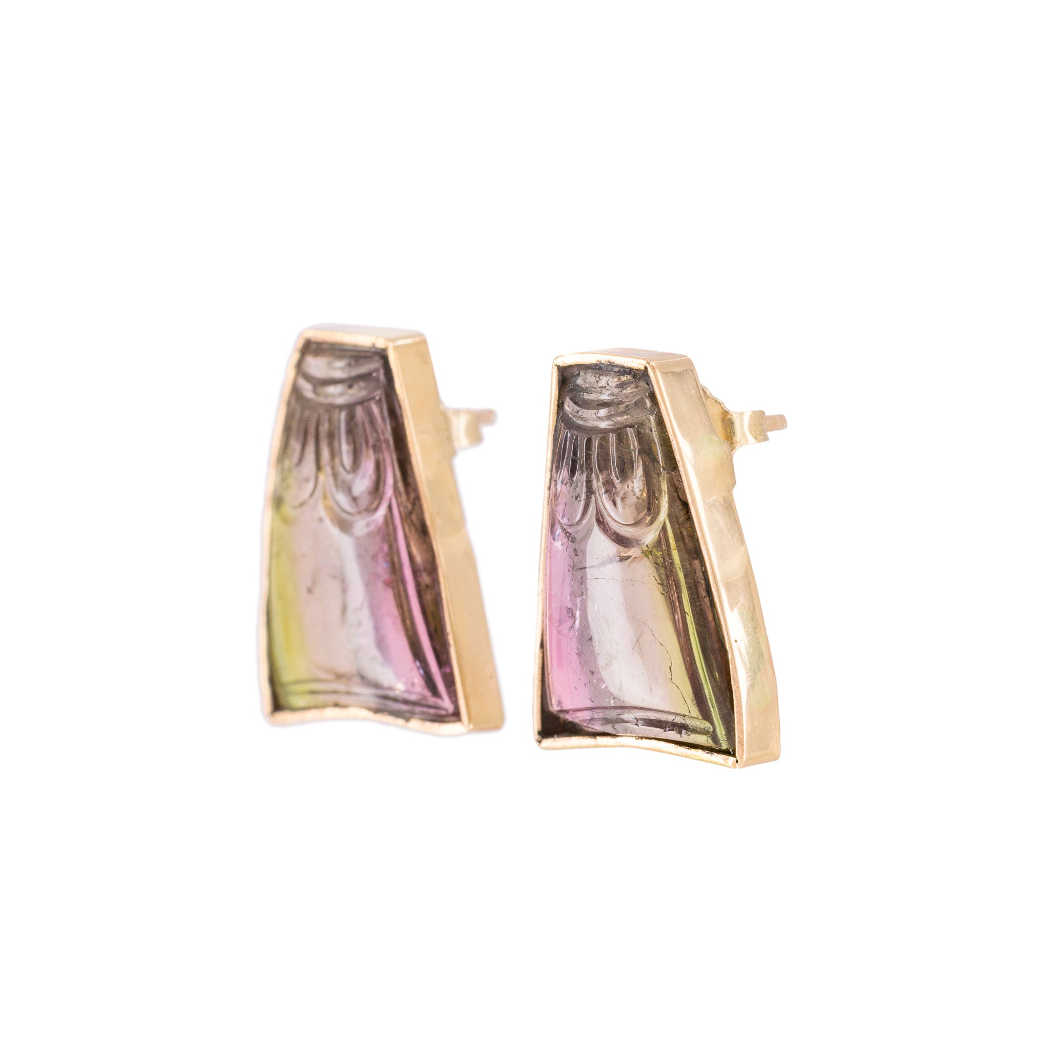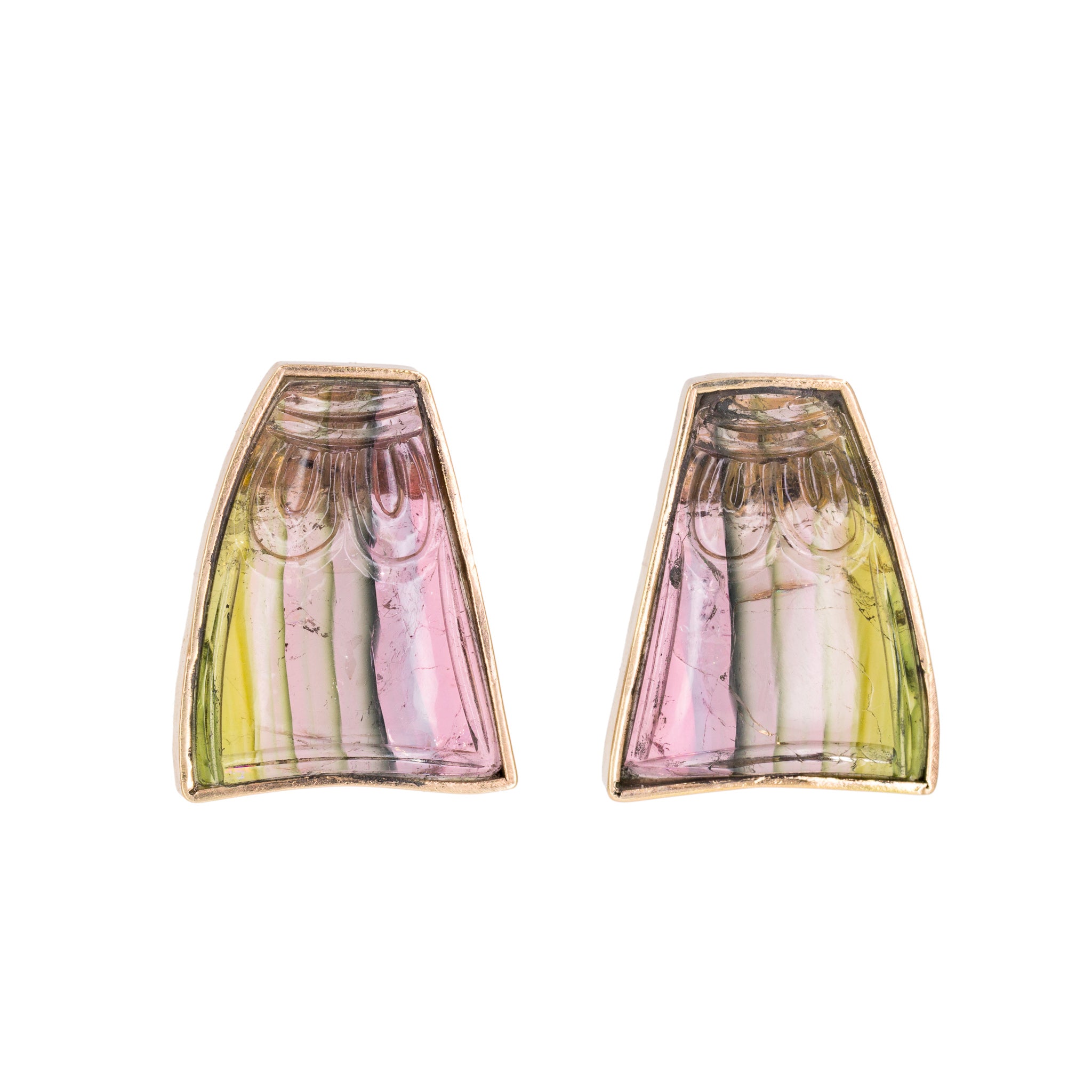 Bicolor Tourmaline 20.77 Carat 14k Handcrafted Carved Gemstone Earrings