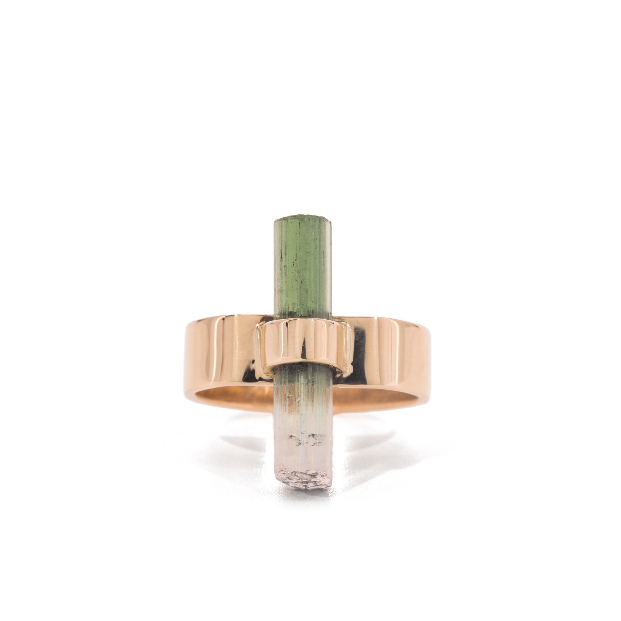 Bicolor Tourmaline 4.89 Carat 14k Handcrafted Natural Crystal Ring