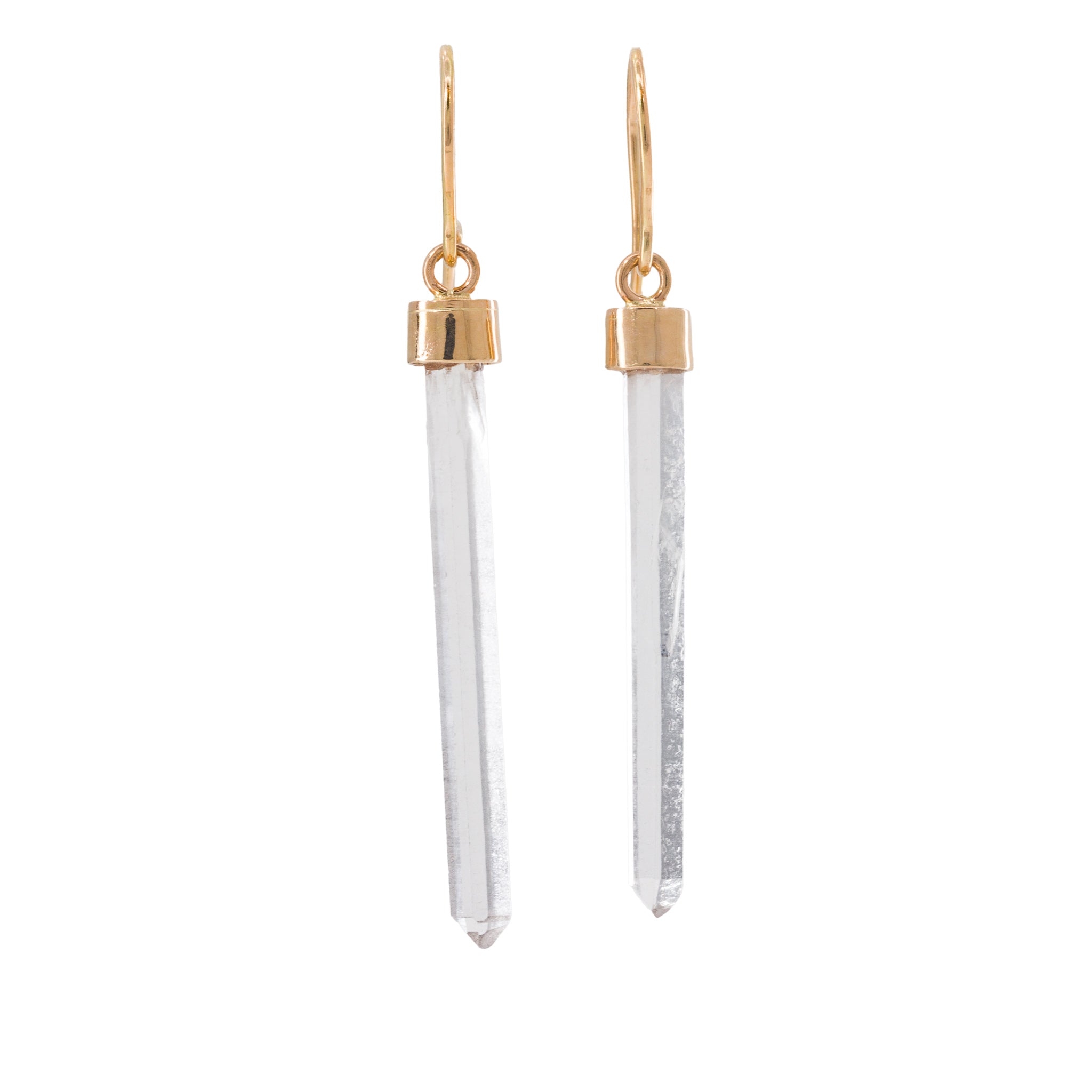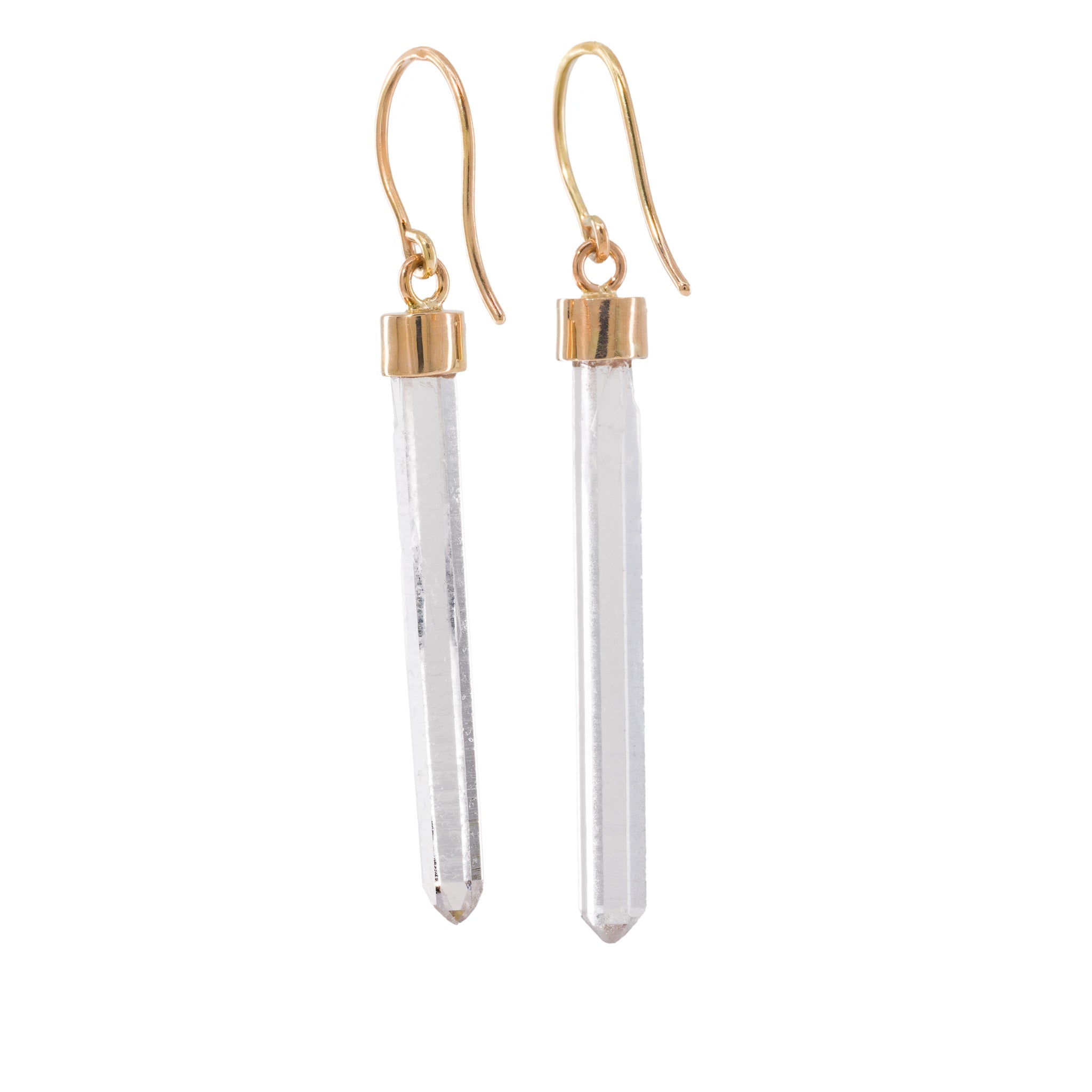Colombian Quartz 9.73 Carat 14K Handcrafted Natural Crystal Earrings