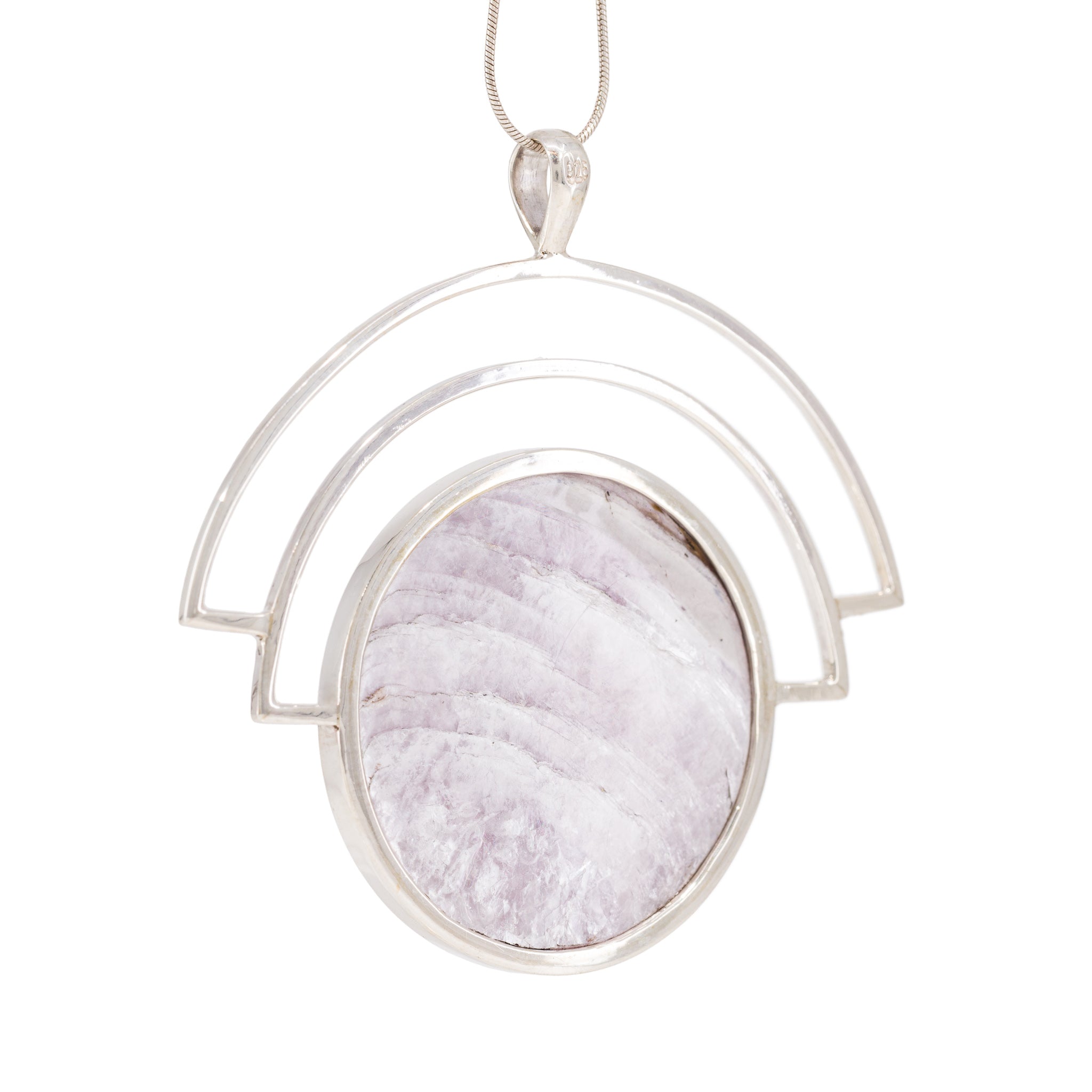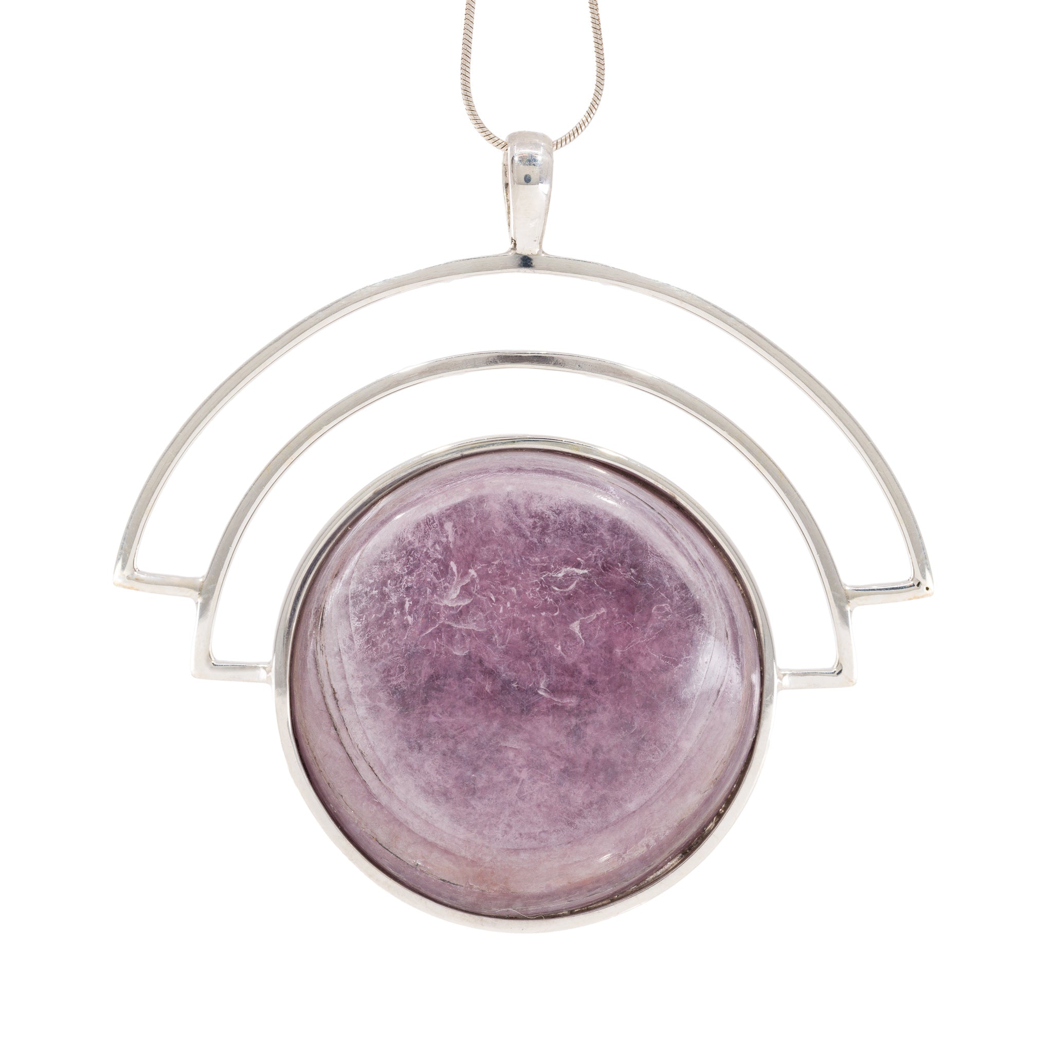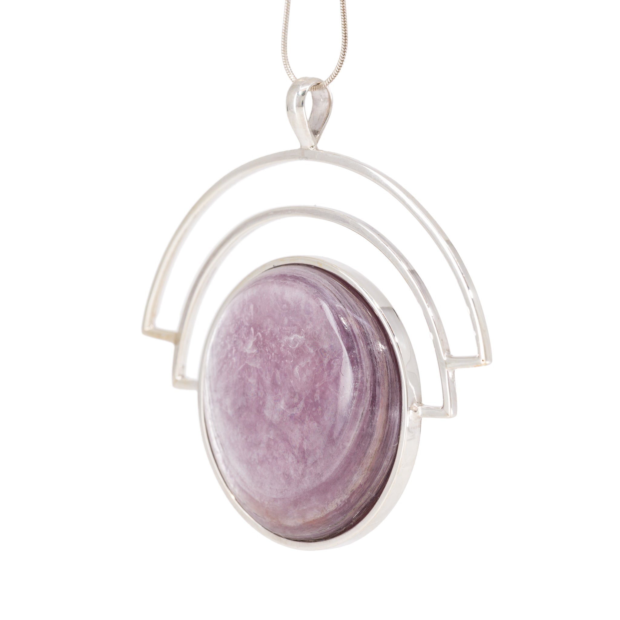 Lepidolite 64.42 Carat Sterling Silver Handcrafted Gemstone Pendant