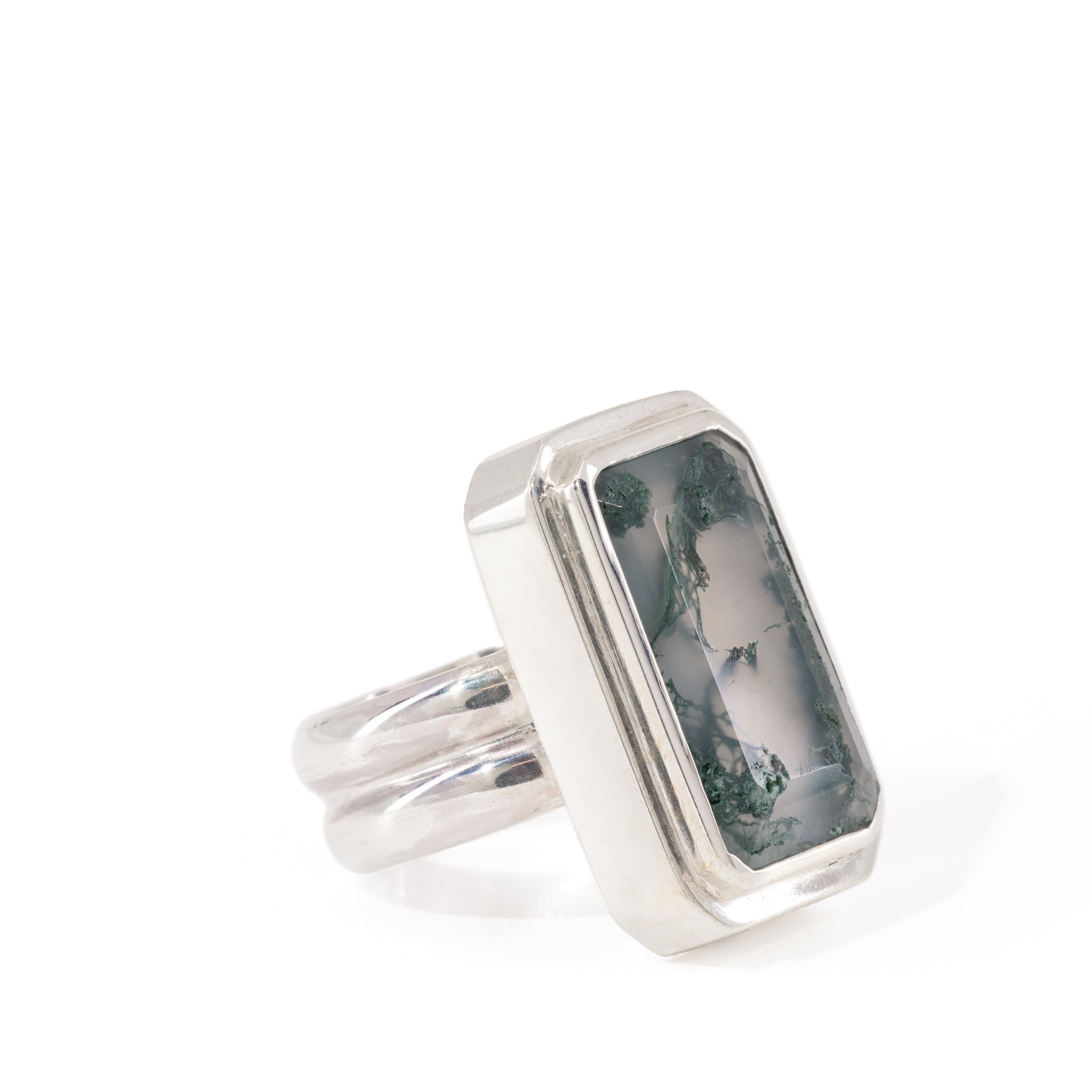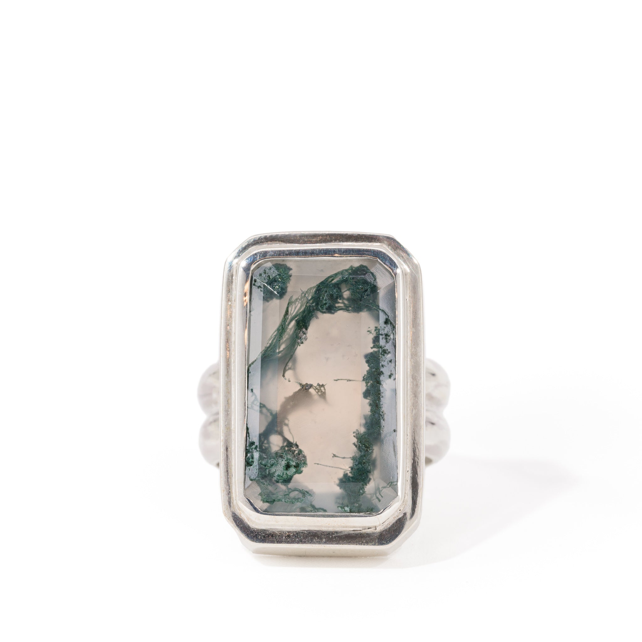 Moss Agate 9.57 Carat Sterling Silver Handcrafted Gemstone Ring