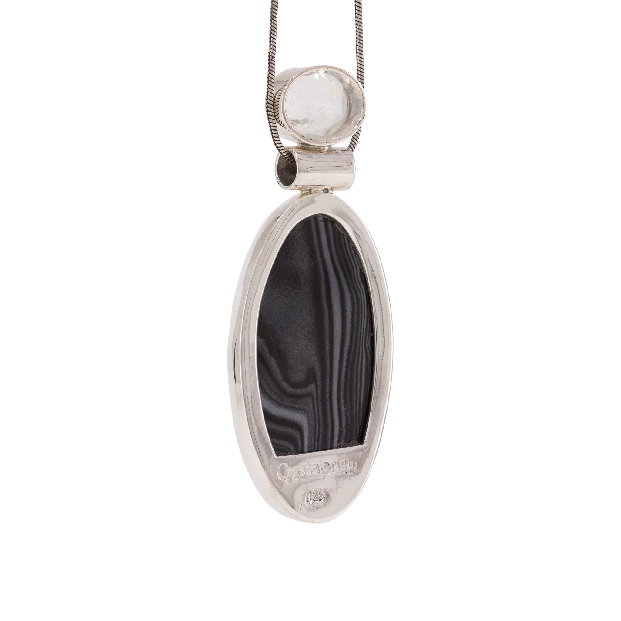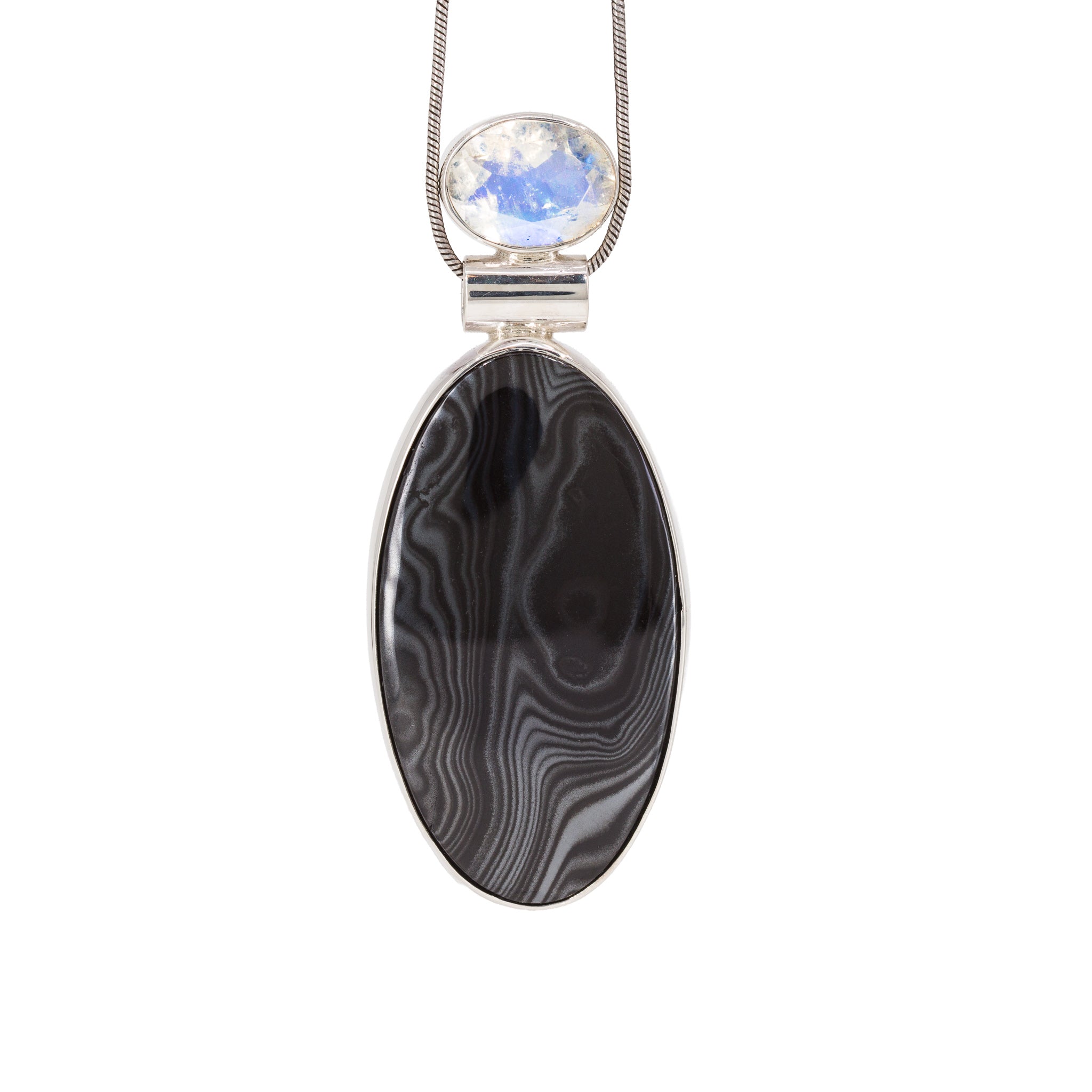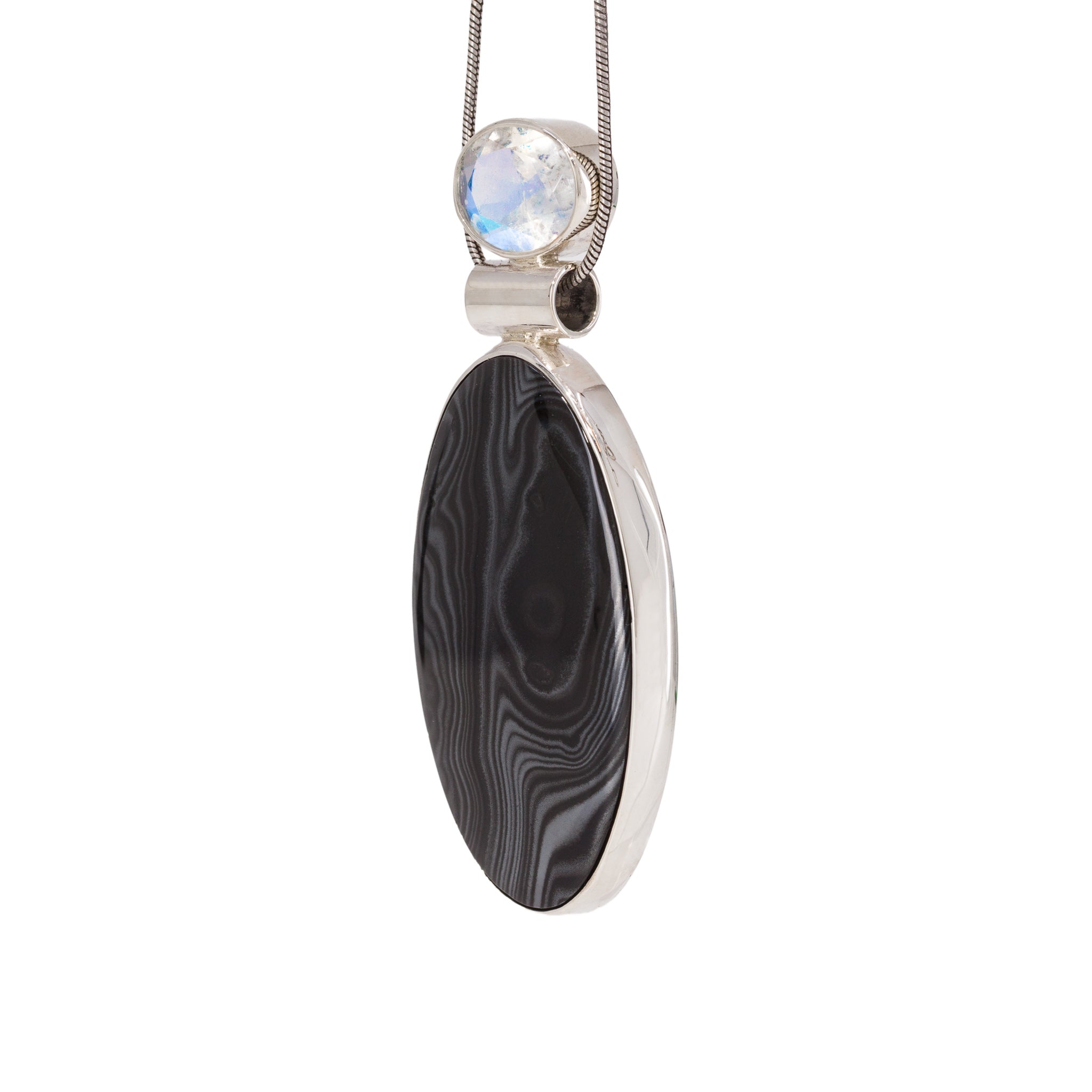 Psilomelane & Moonstone Sterling Silver Handcrafted Gemstone Pendant