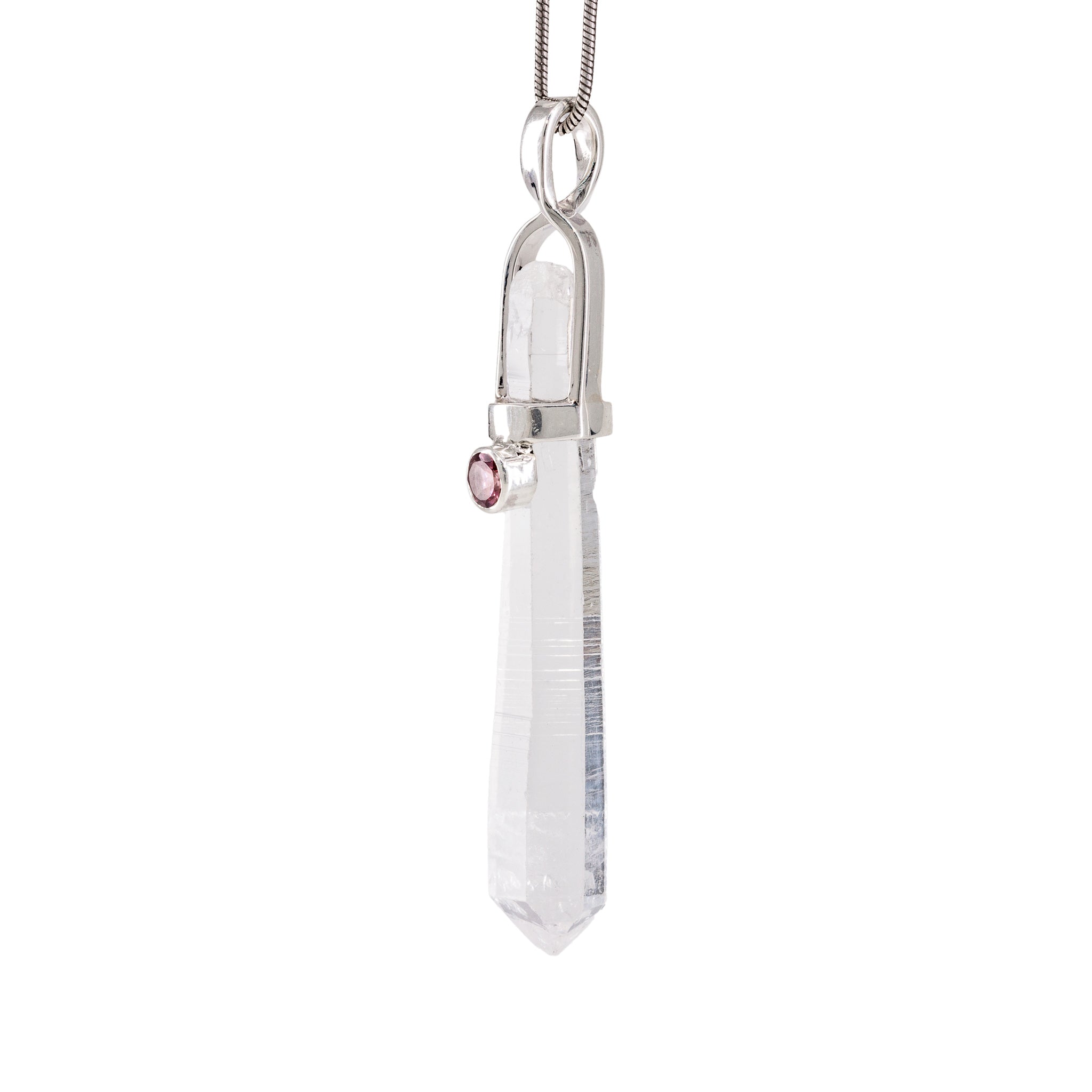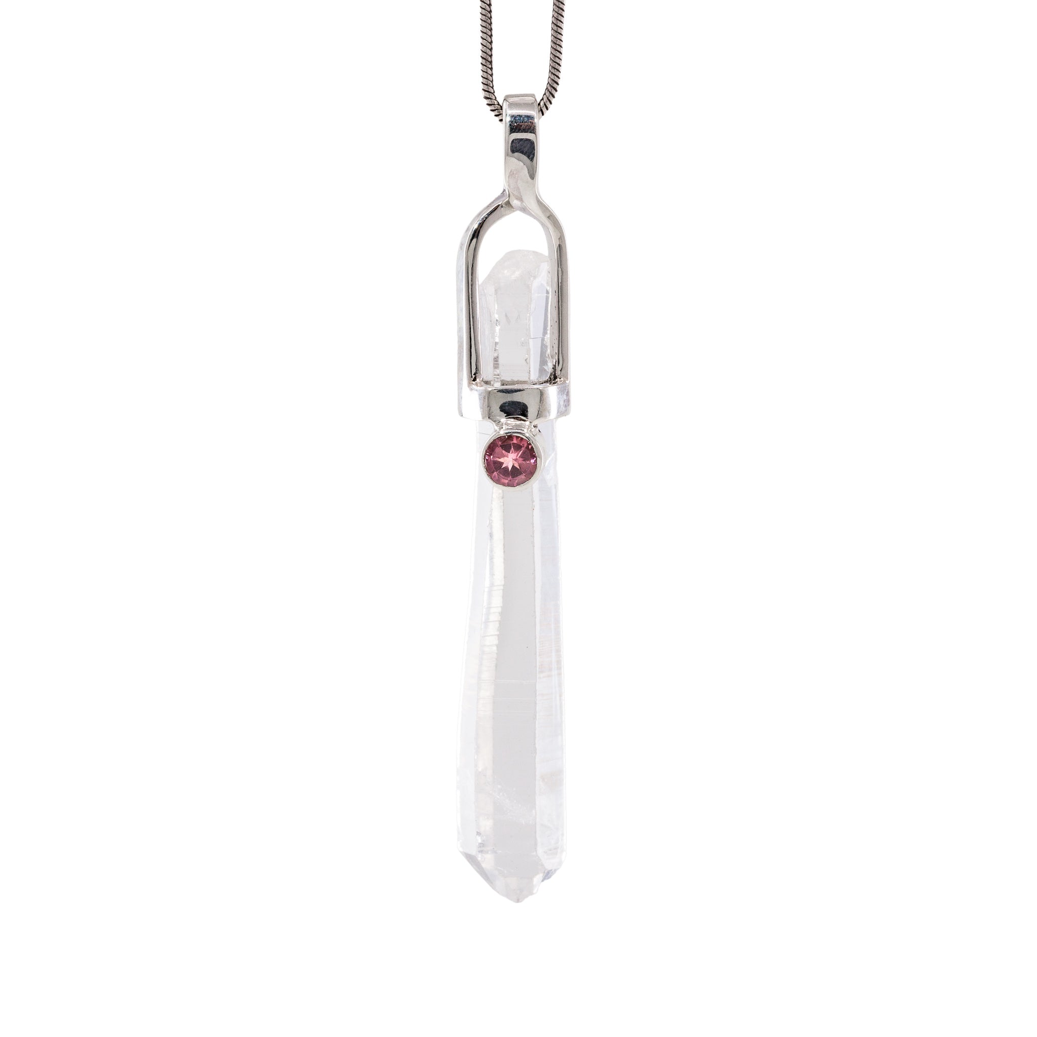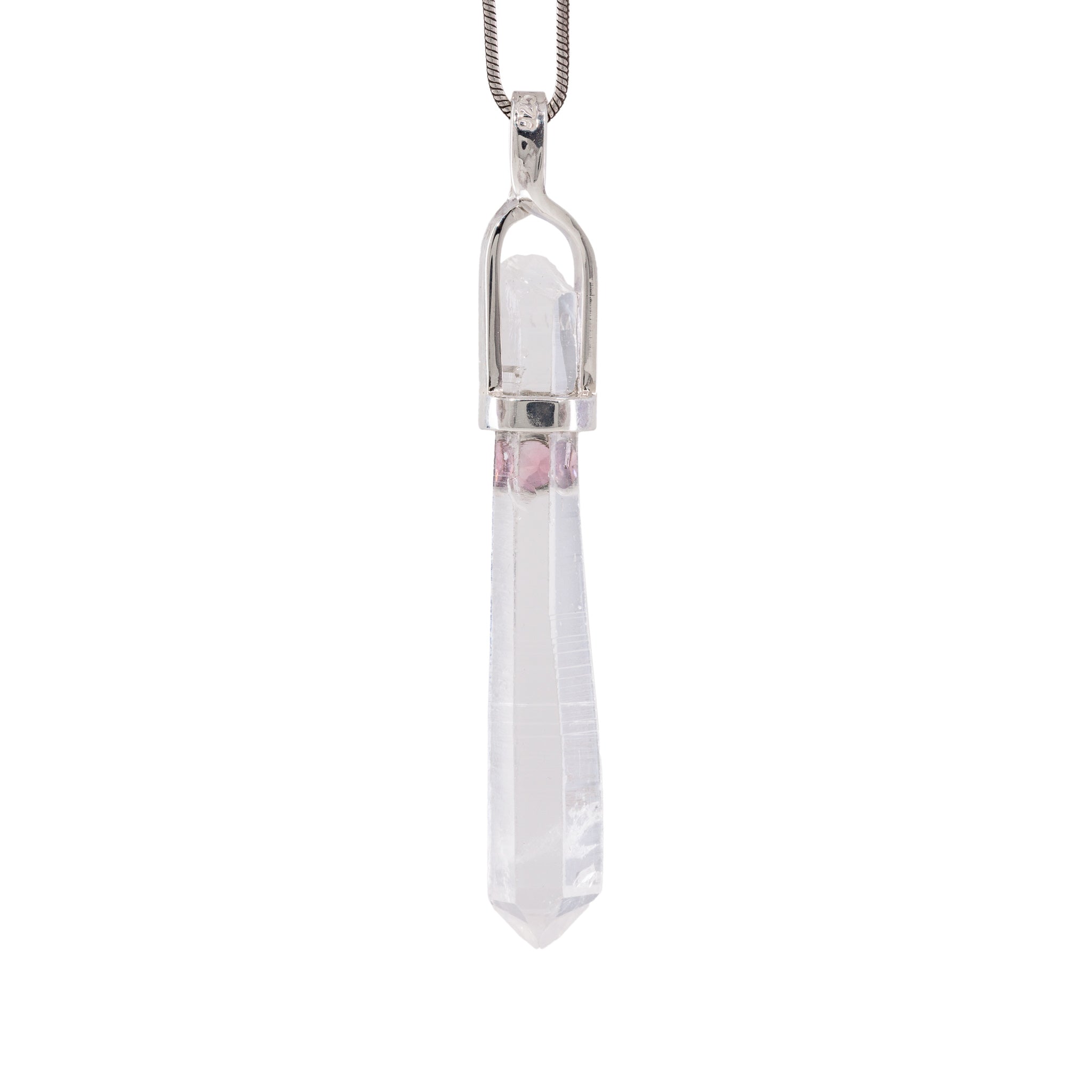 Quartz & Pink Tourmaline Sterling Silver Handcrafted Gemstone & Natural Crystal Pendant