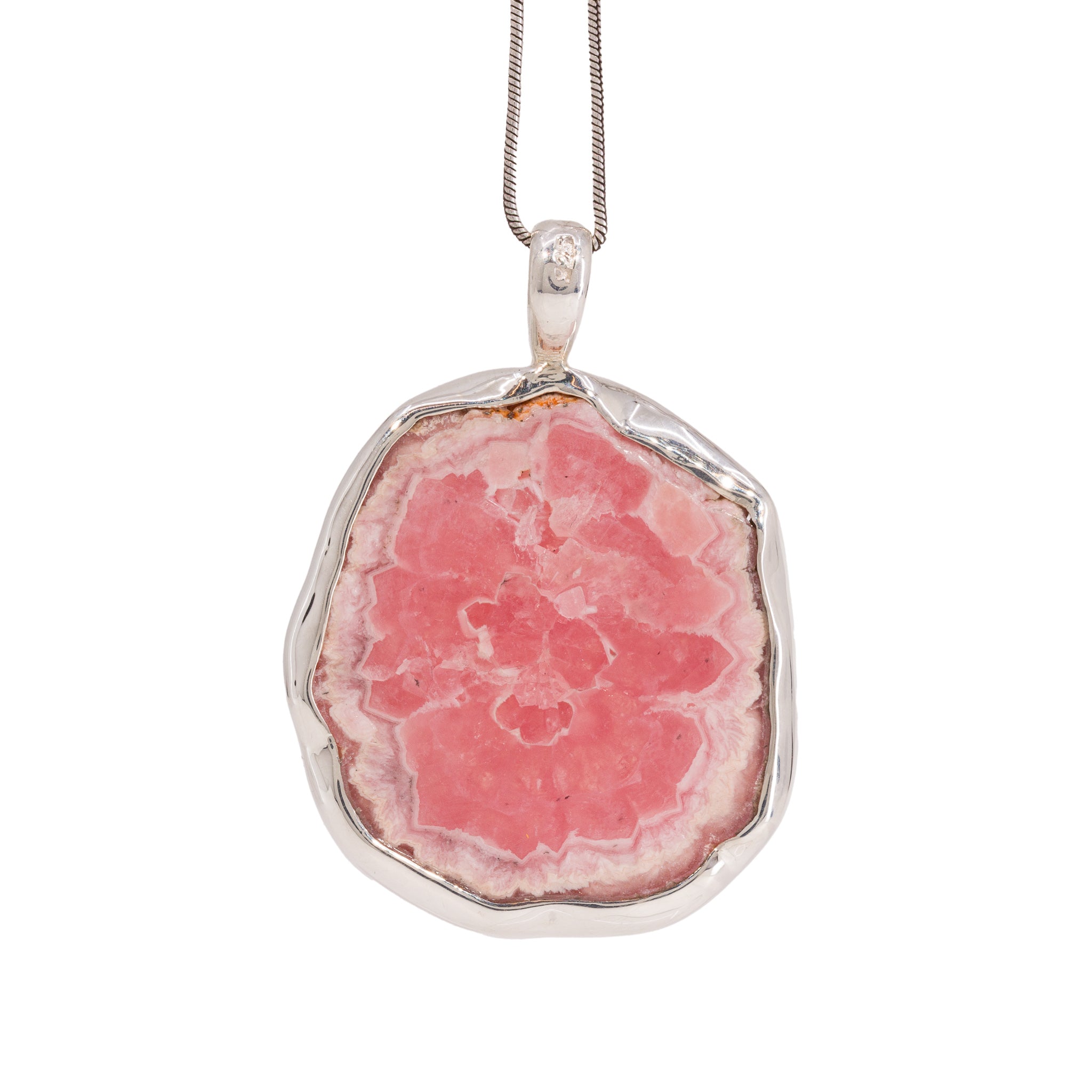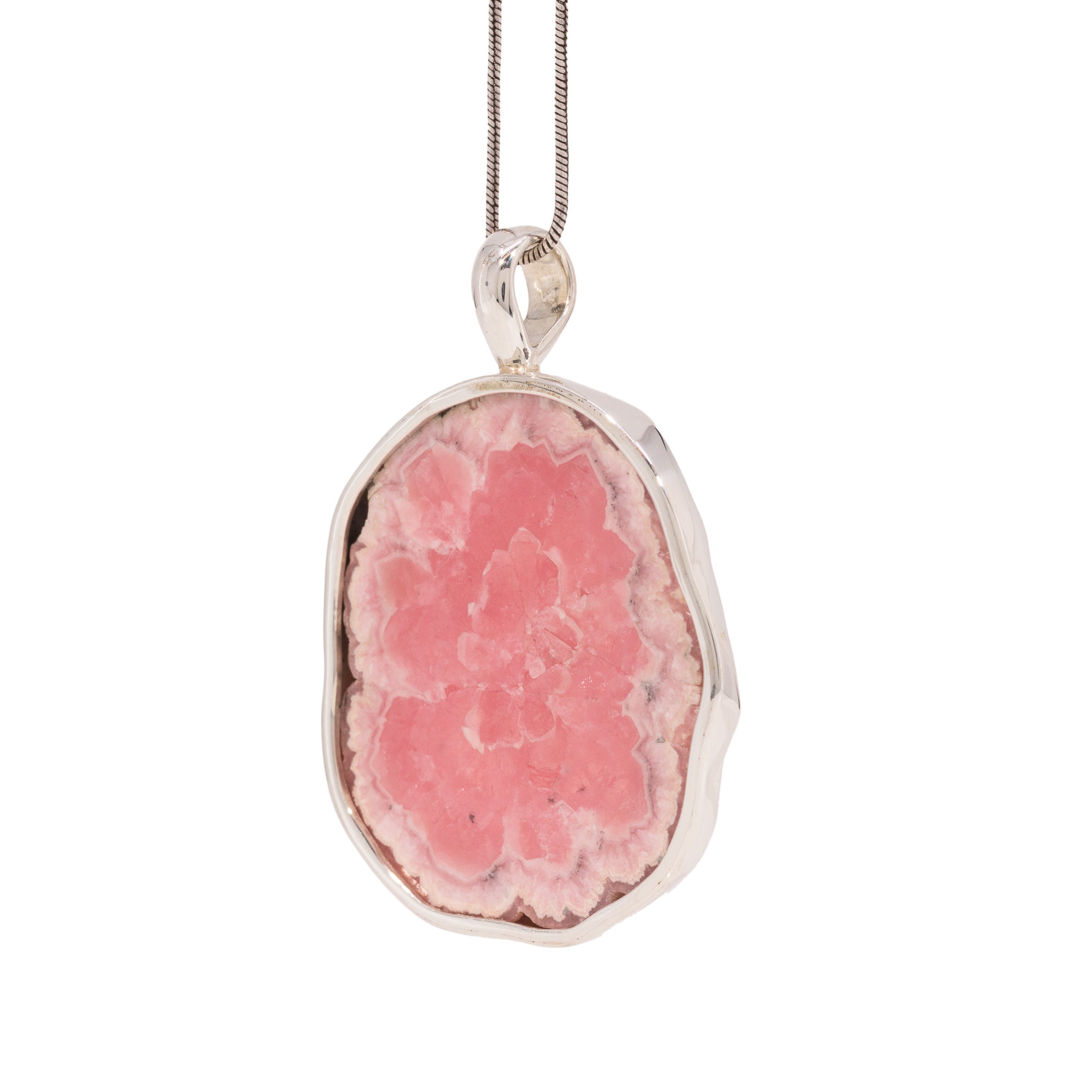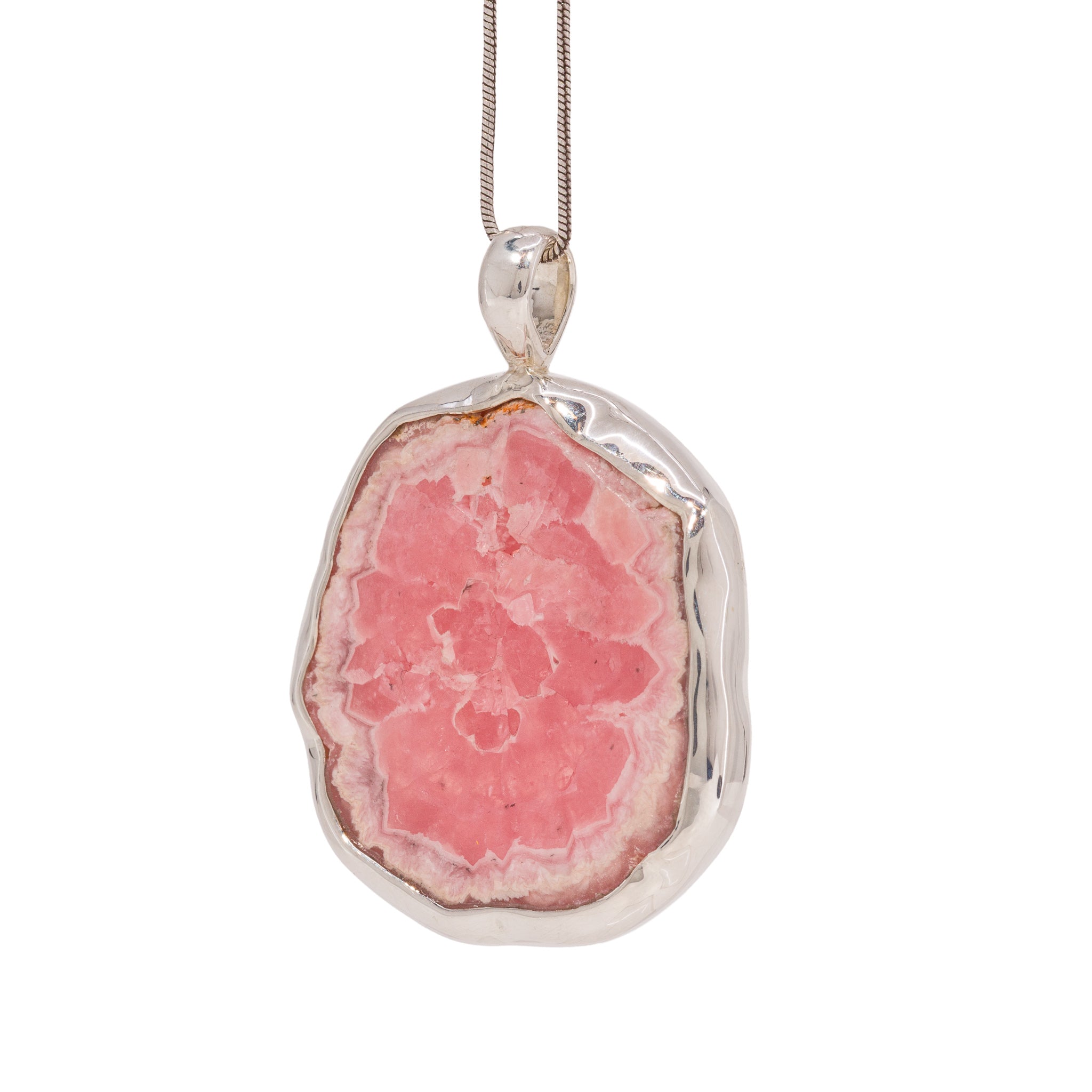 Rhodochrosite Stalactite 38.8 Carat Sterling Silver Handcrafted Crystal Slice Pendant