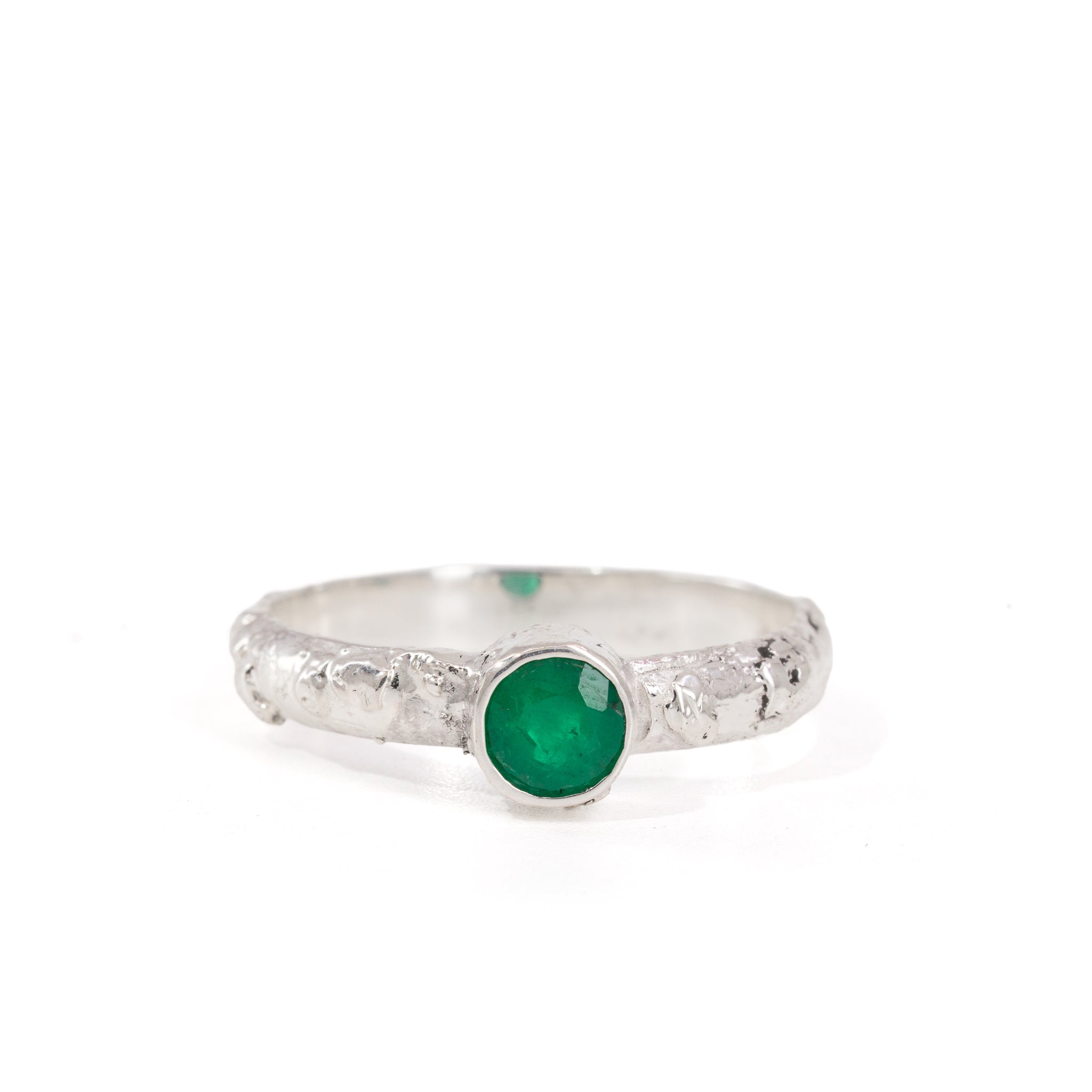 Emerald 0.44 Carat Sterling Silver Handcrafted Gemstone Stacker Ring