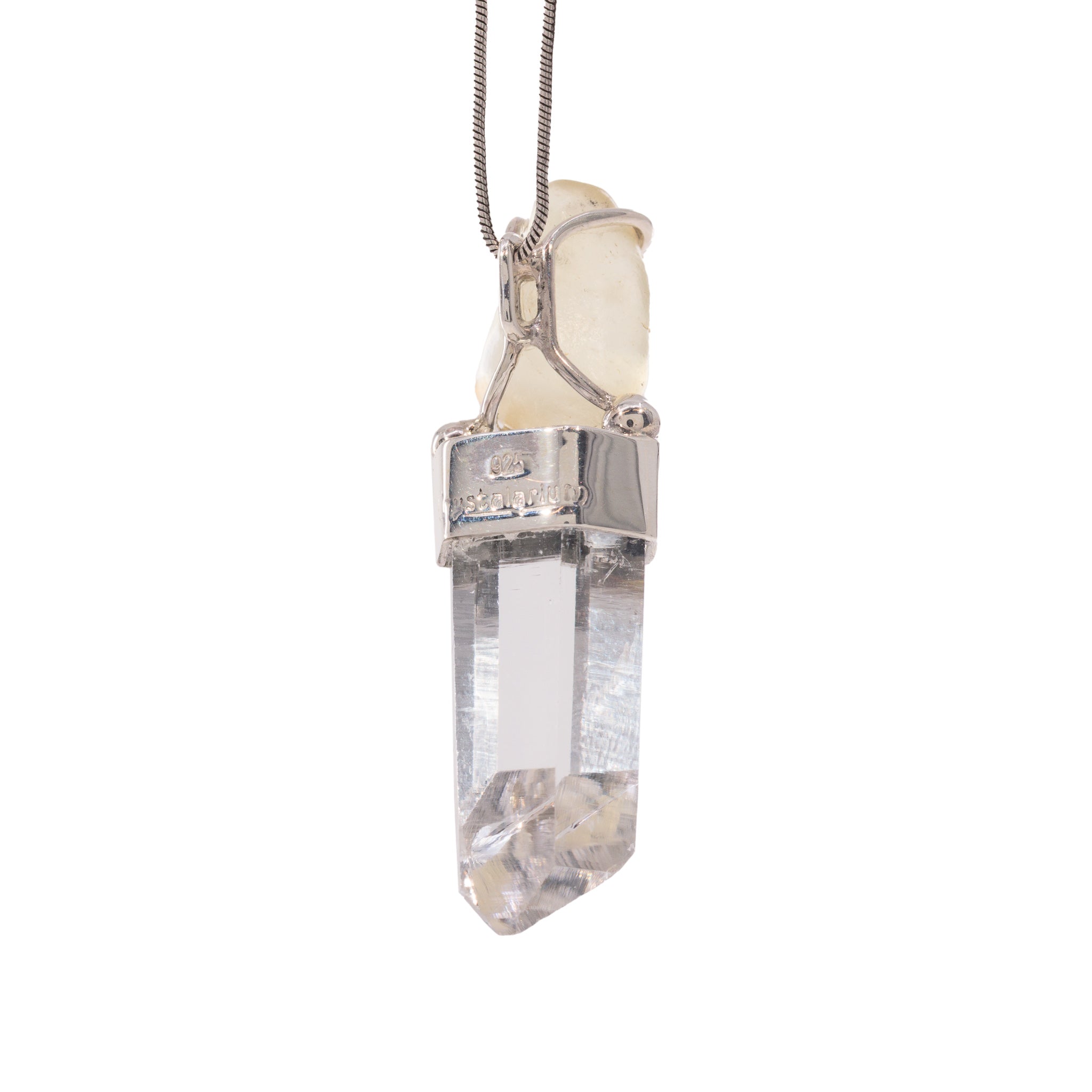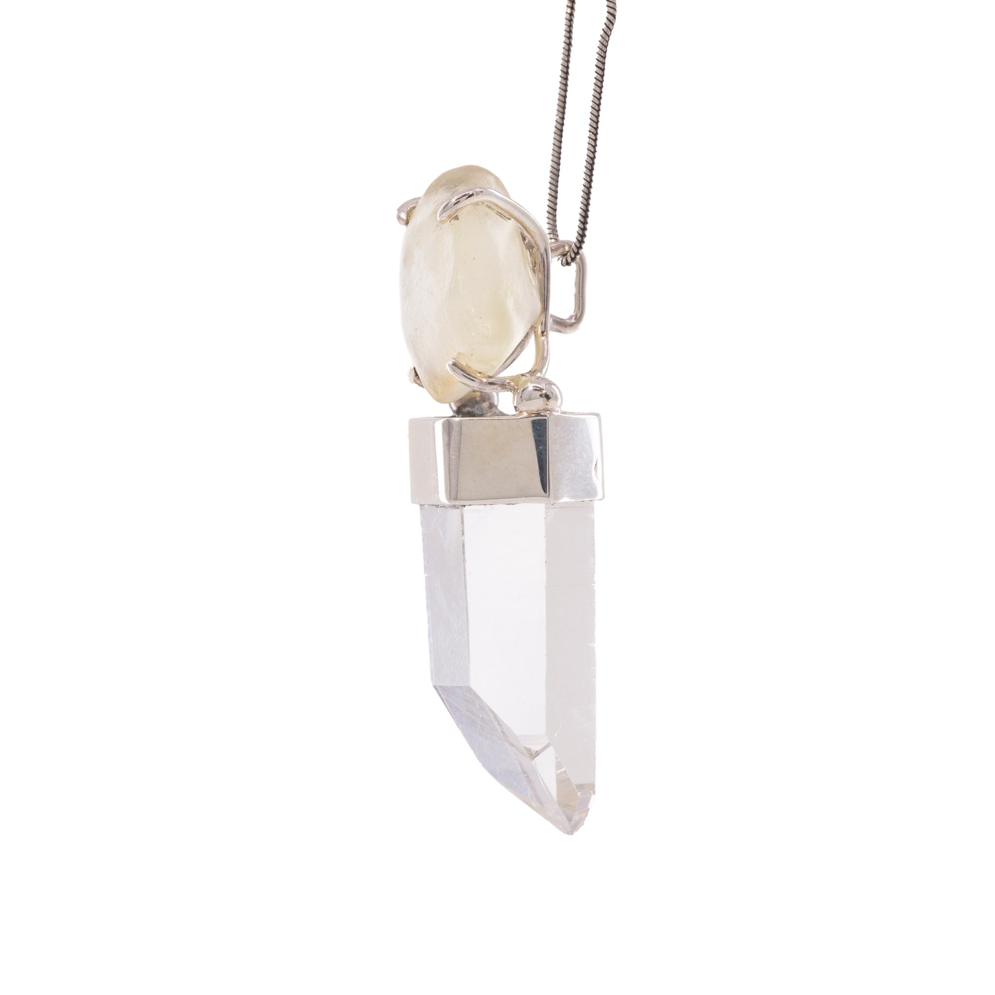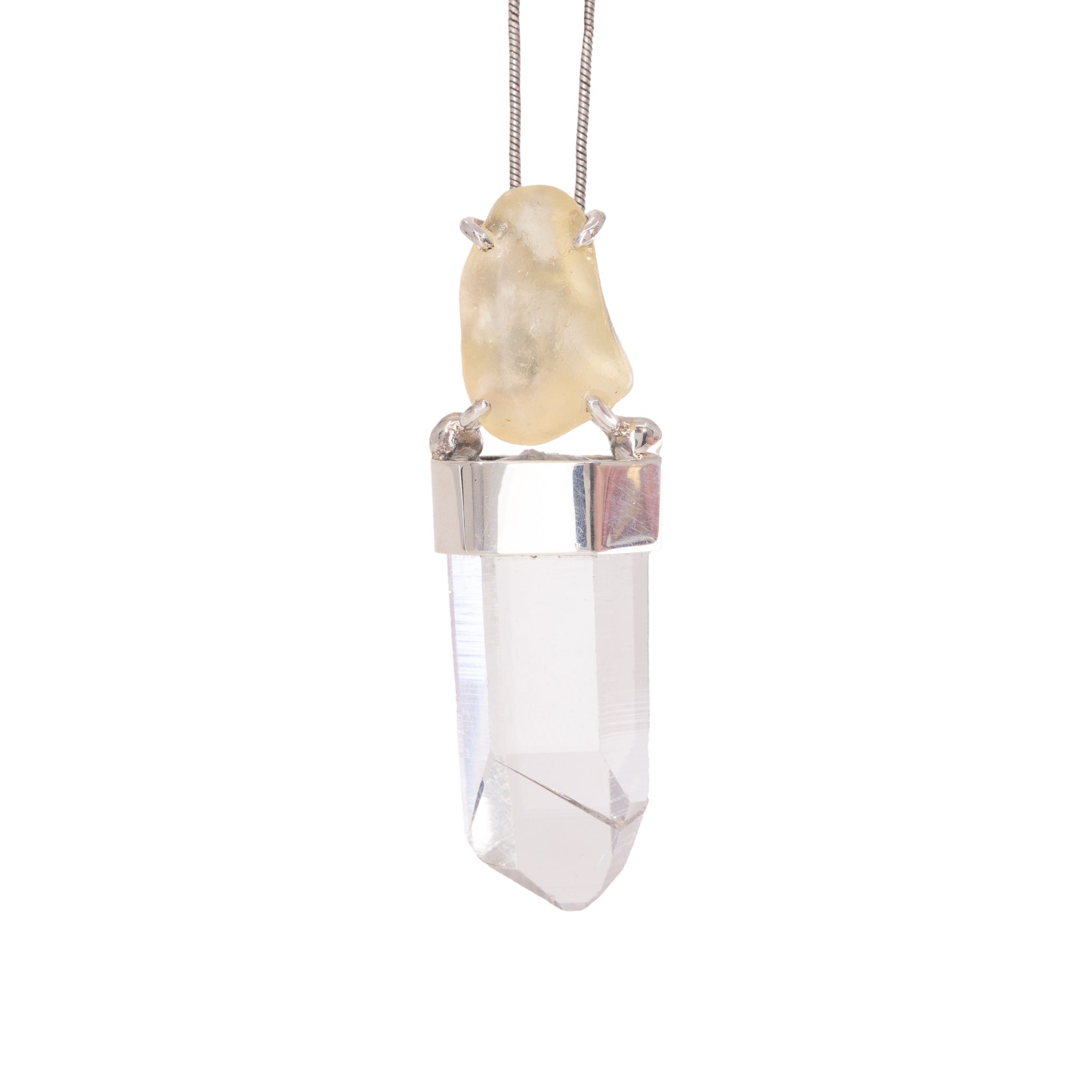 Libyan Desert Glass 7.37ct & Quartz Sterling Silver Handcrafted Natural Crystal Pendant