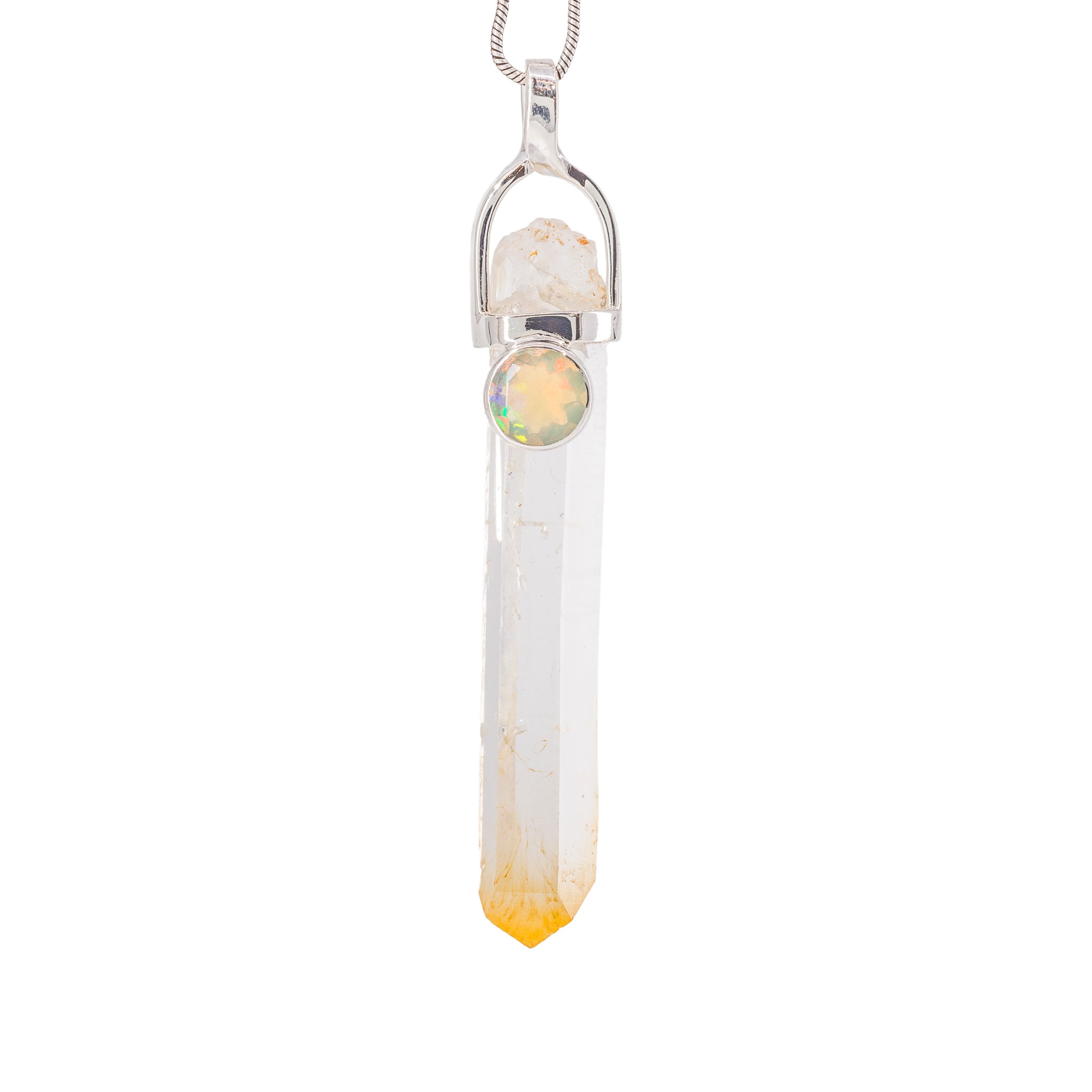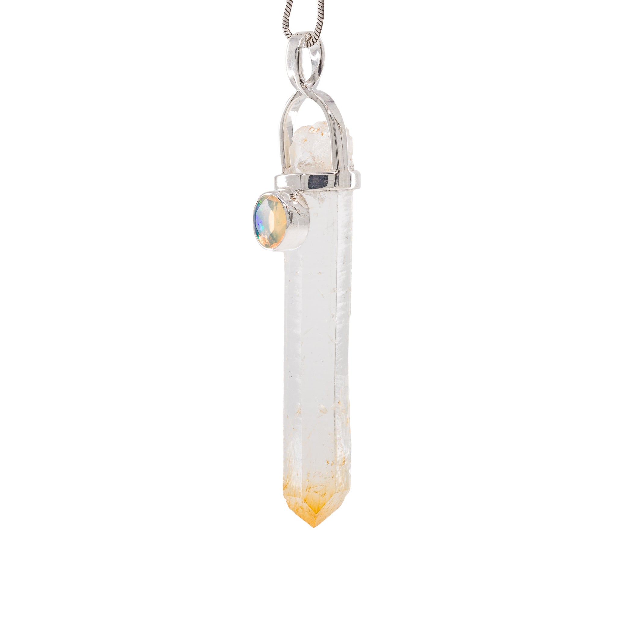 Mango Quartz & Opal Sterling Silver Handcrafted Gemstone & Natural Crystal Pendant