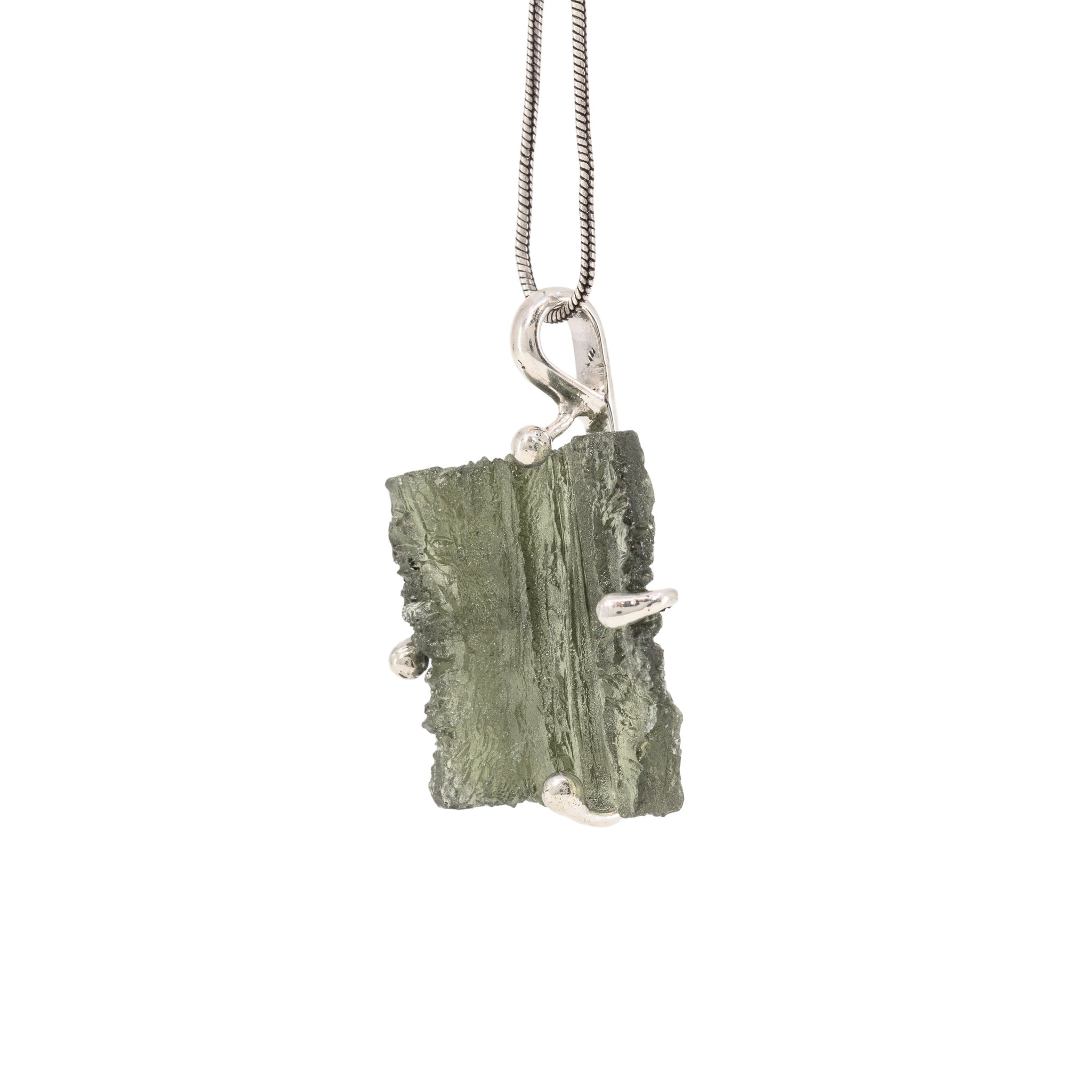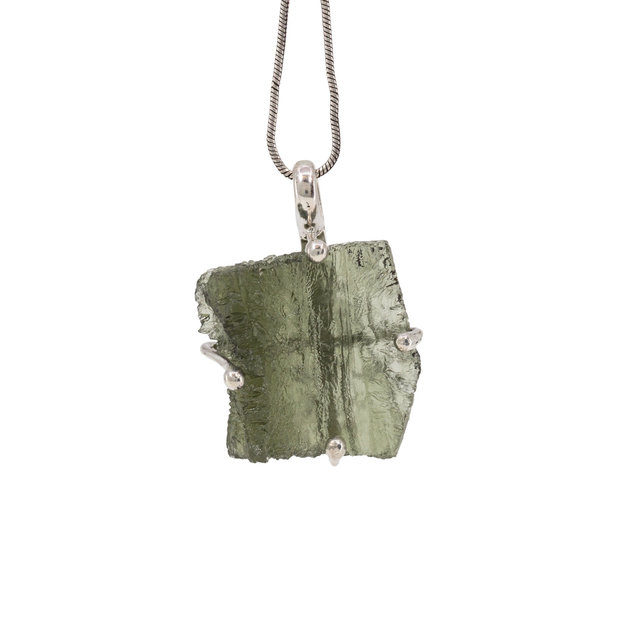 Moldavite 13.33 Carat Sterling Silver Handcrafted Natural Crystal Pendant