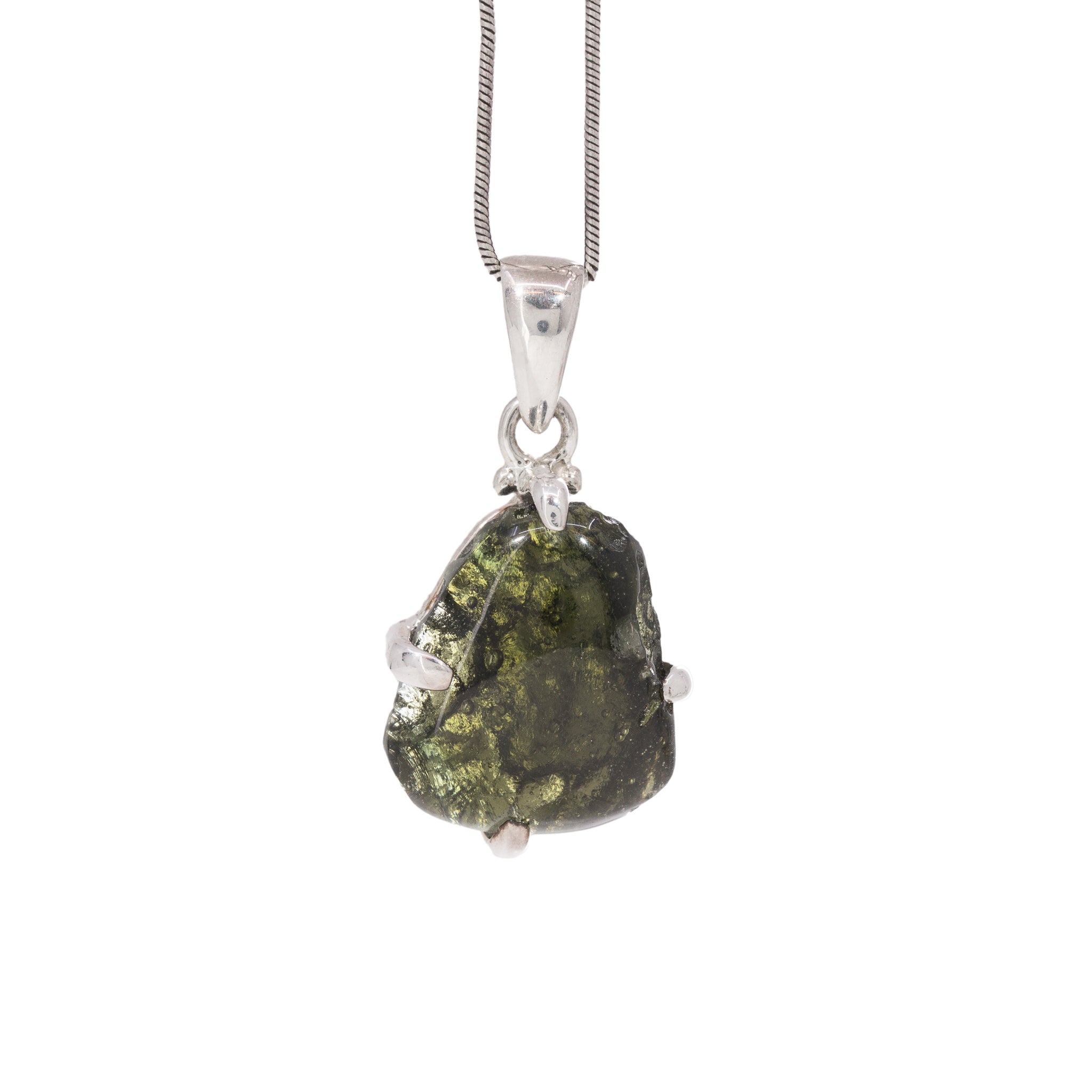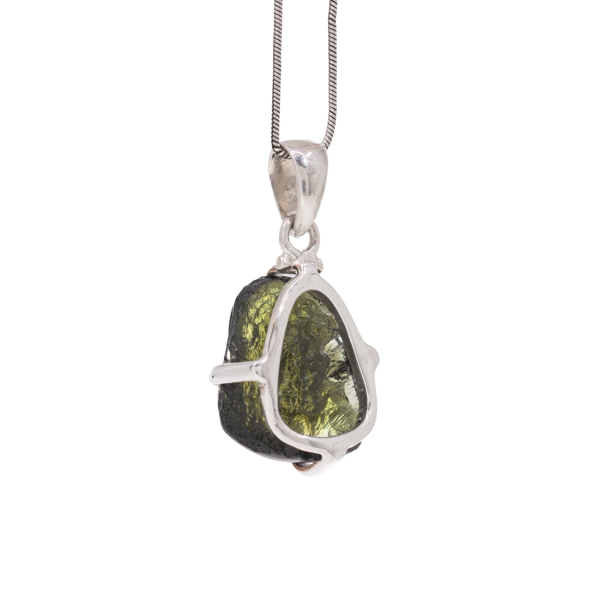 Moldavite 4.4 Gram Sterling Silver Handcrafted Tektite Pendant