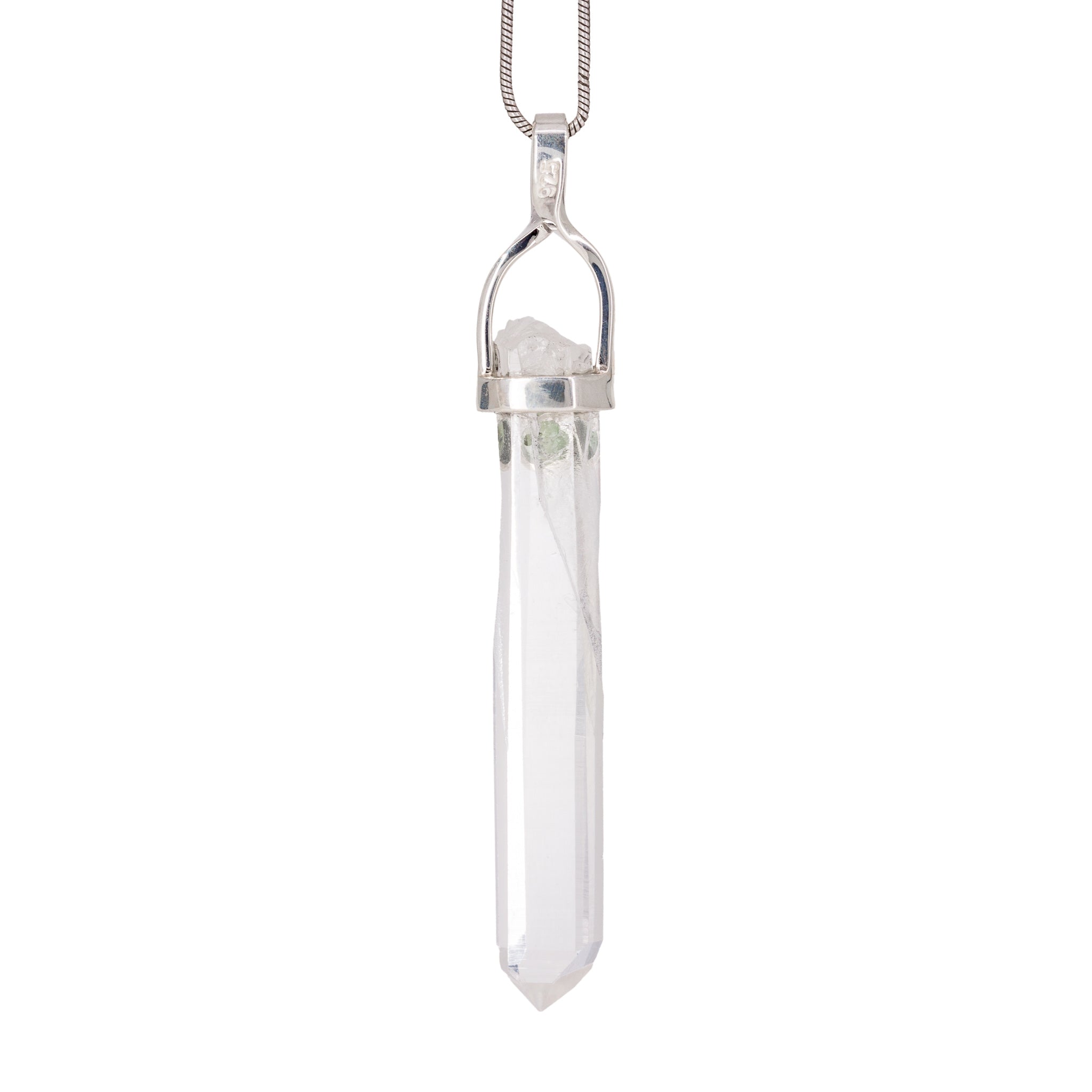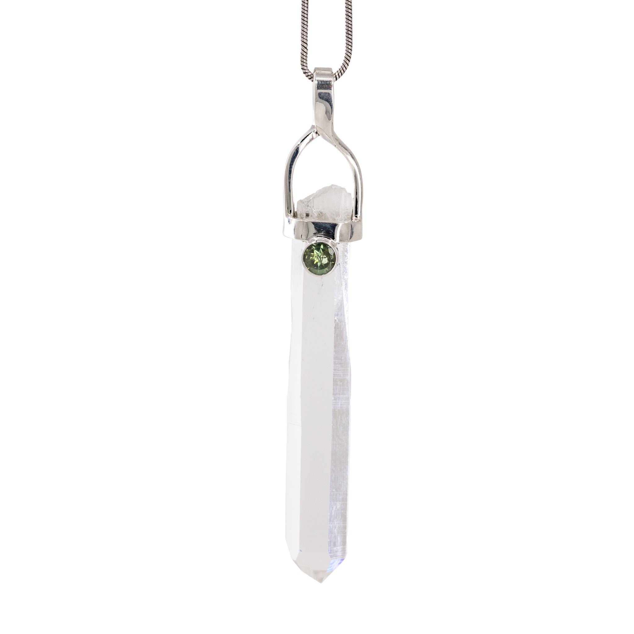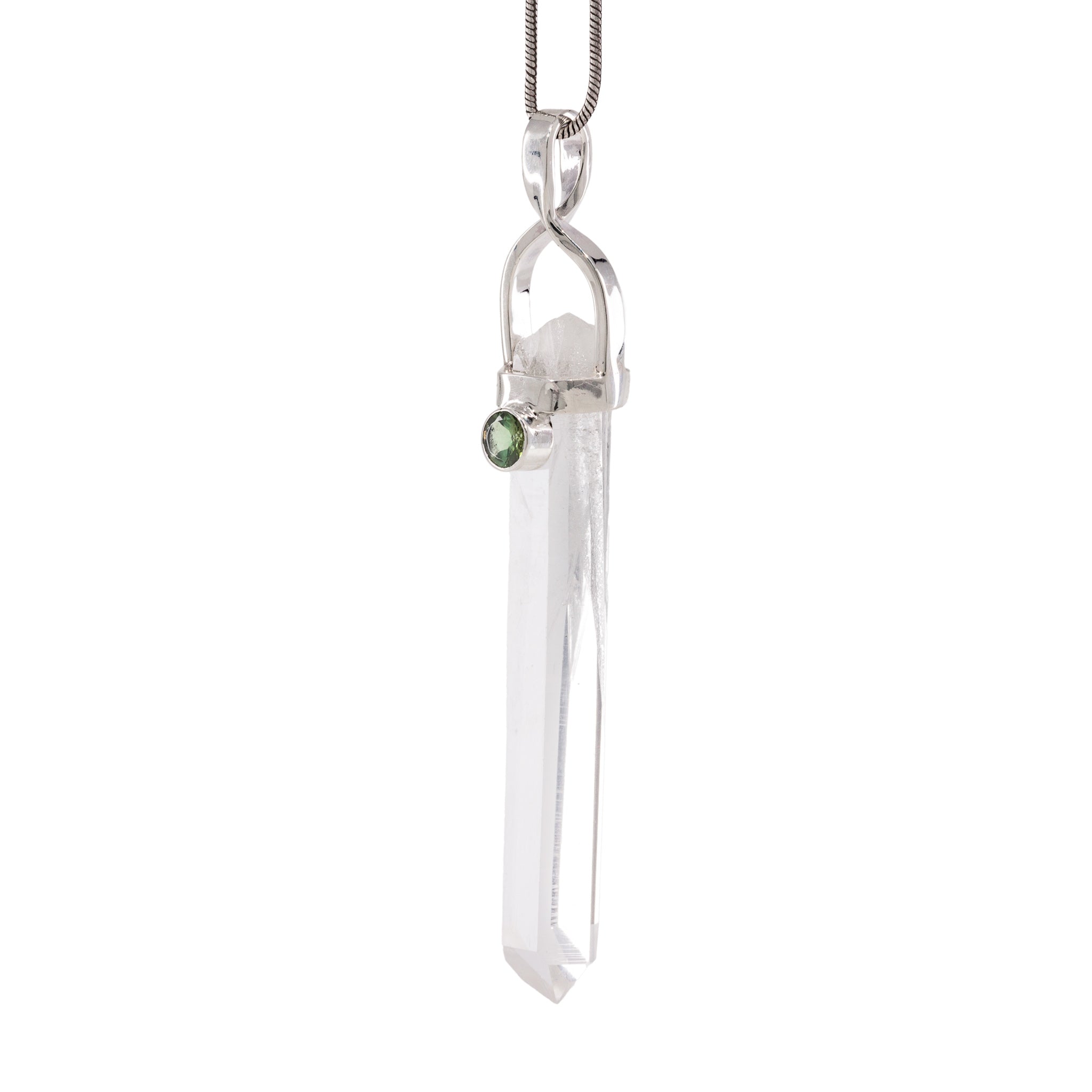 Quartz & Green Tourmaline Sterling Silver Handcrafted Gemstone & Natural Crystal Pendant
