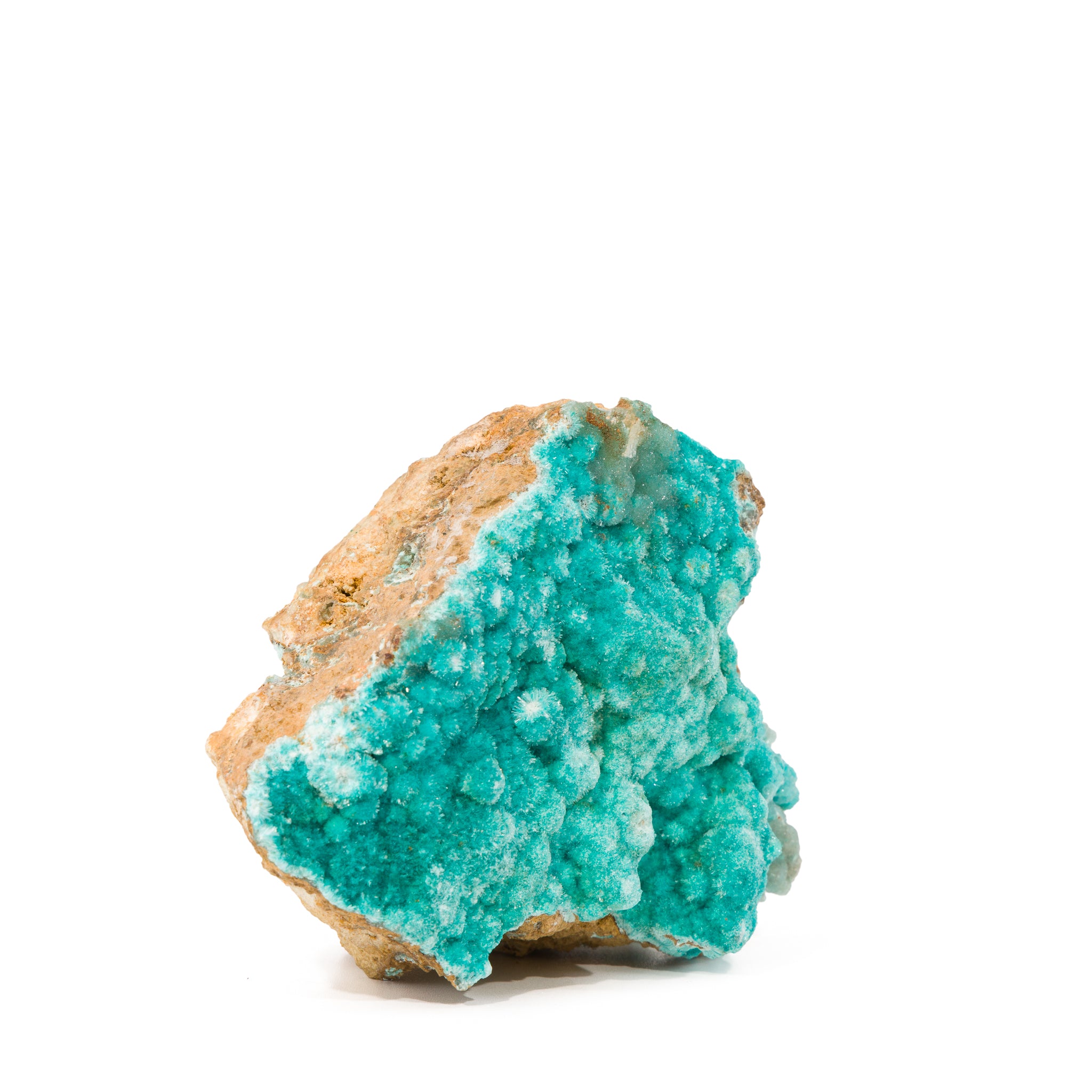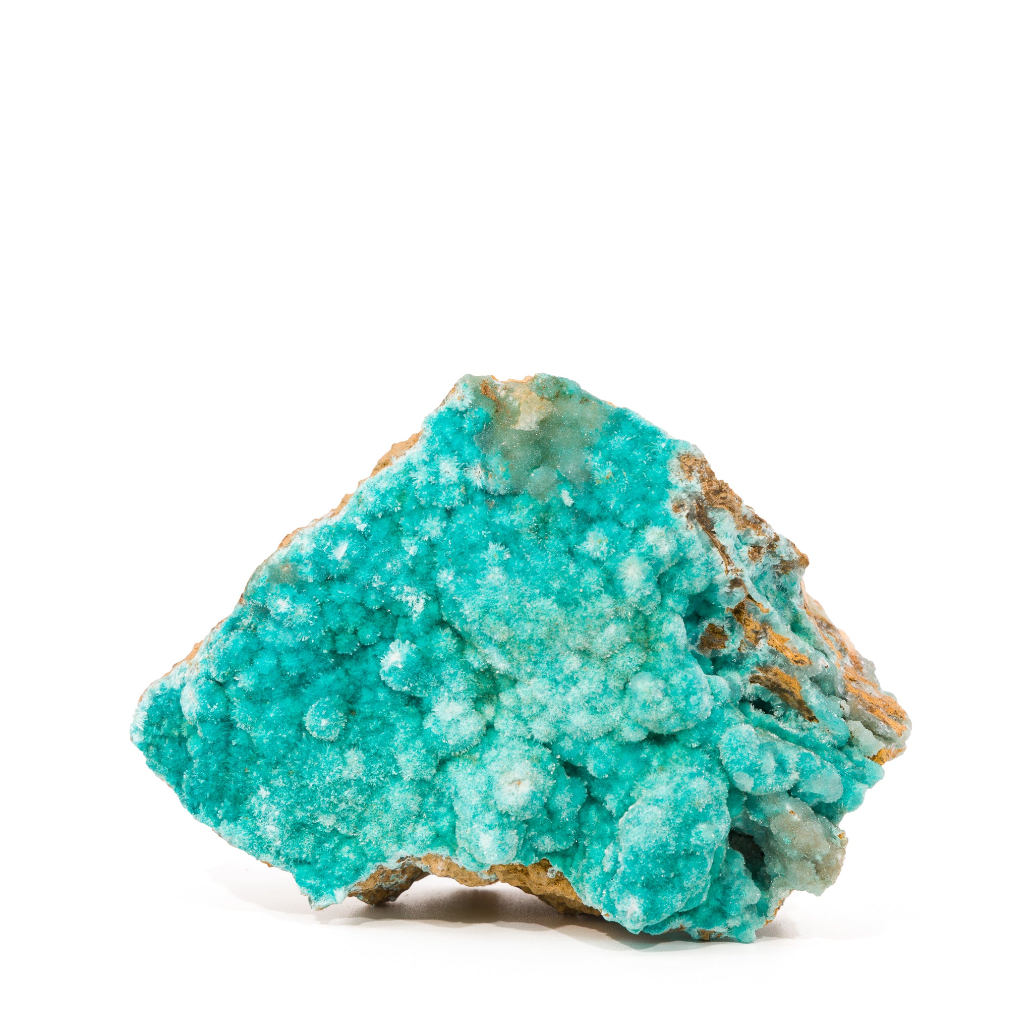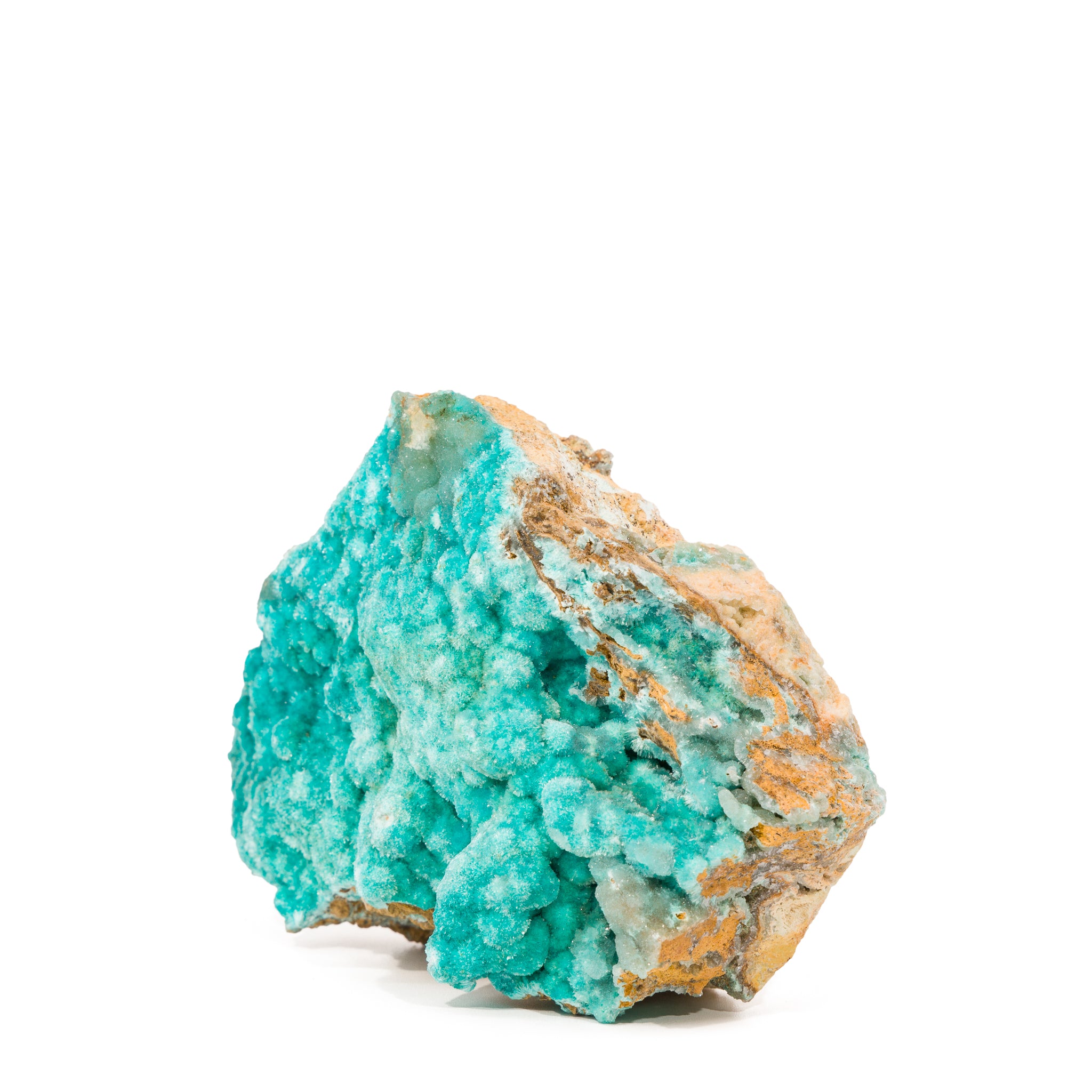 This glistening, vividly blue velour of Aurichalcite and Hemimorphite is comprised of countless miniscule crystals, carpeting a rugged and tawny rock matrix. A truly extraordinary specimen!