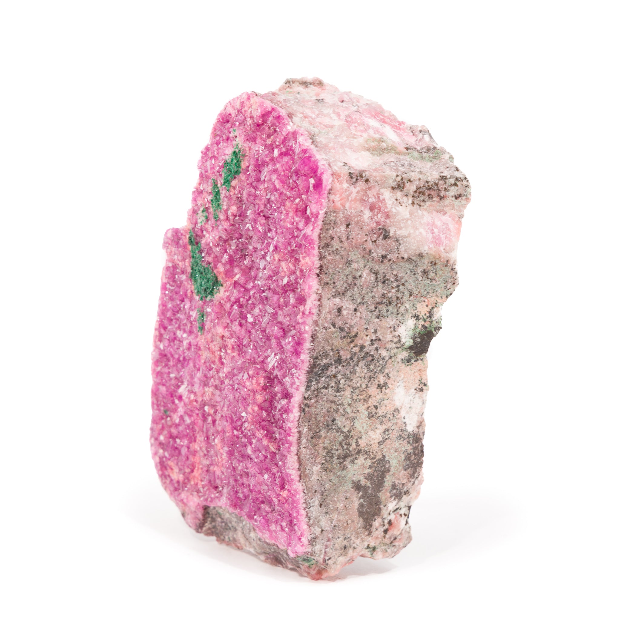 A beautiful natural juxtaposition of verdant green malachite against bright pink cobalt calcite crystals makes this a striking and unique crystal, sure to jazz up even the most impressive collections!