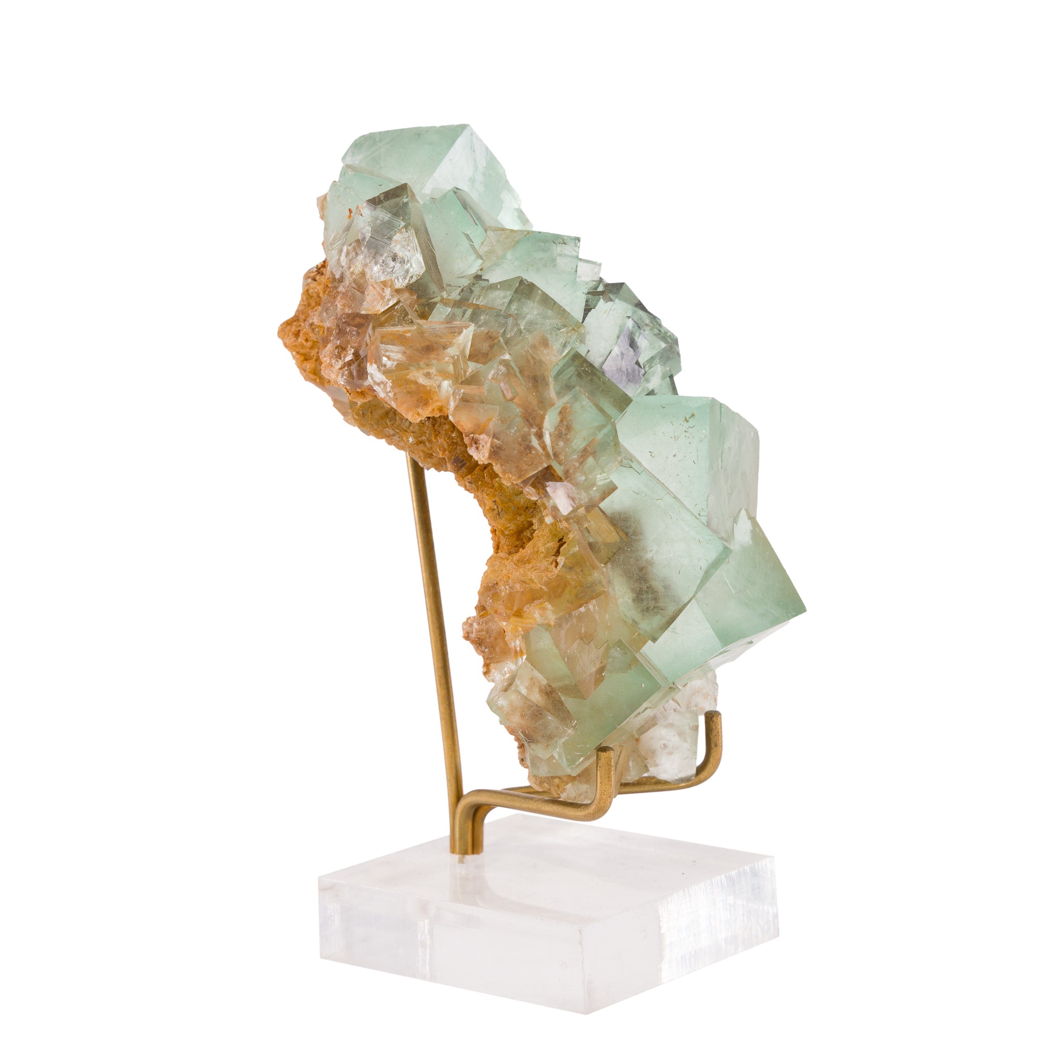 Translucent and incredibly gemmy olive-green cubic formations of Fluorite interlock into an interesting geometric pattern in this fascinating natural crystal specimen from China!