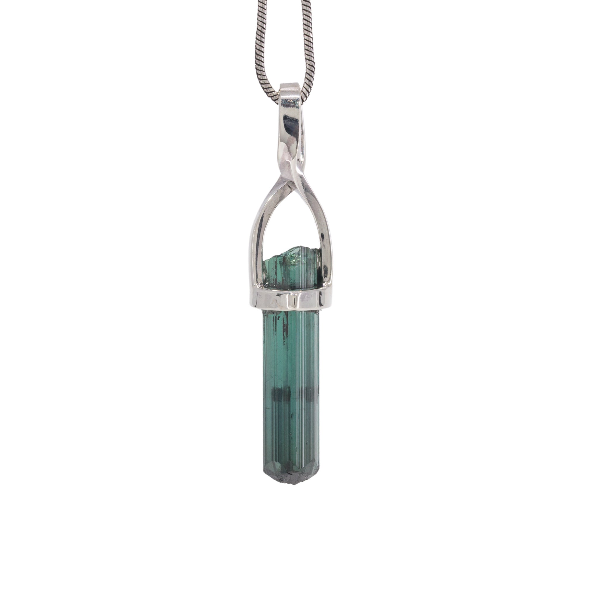 Blue Tourmaline 4.7 Carat Sterling Silver Handcrafted Natural Crystal Pendant