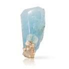 This museum-grade Aquamarine is a true showpiece, weighing over 10 pounds and rising nearly 10 inches tall. Its rich celestial blue body is crowned with striking terminations and secondary crystal growths, while elegant Mica fans cascade at its base, adding contrast and texture.